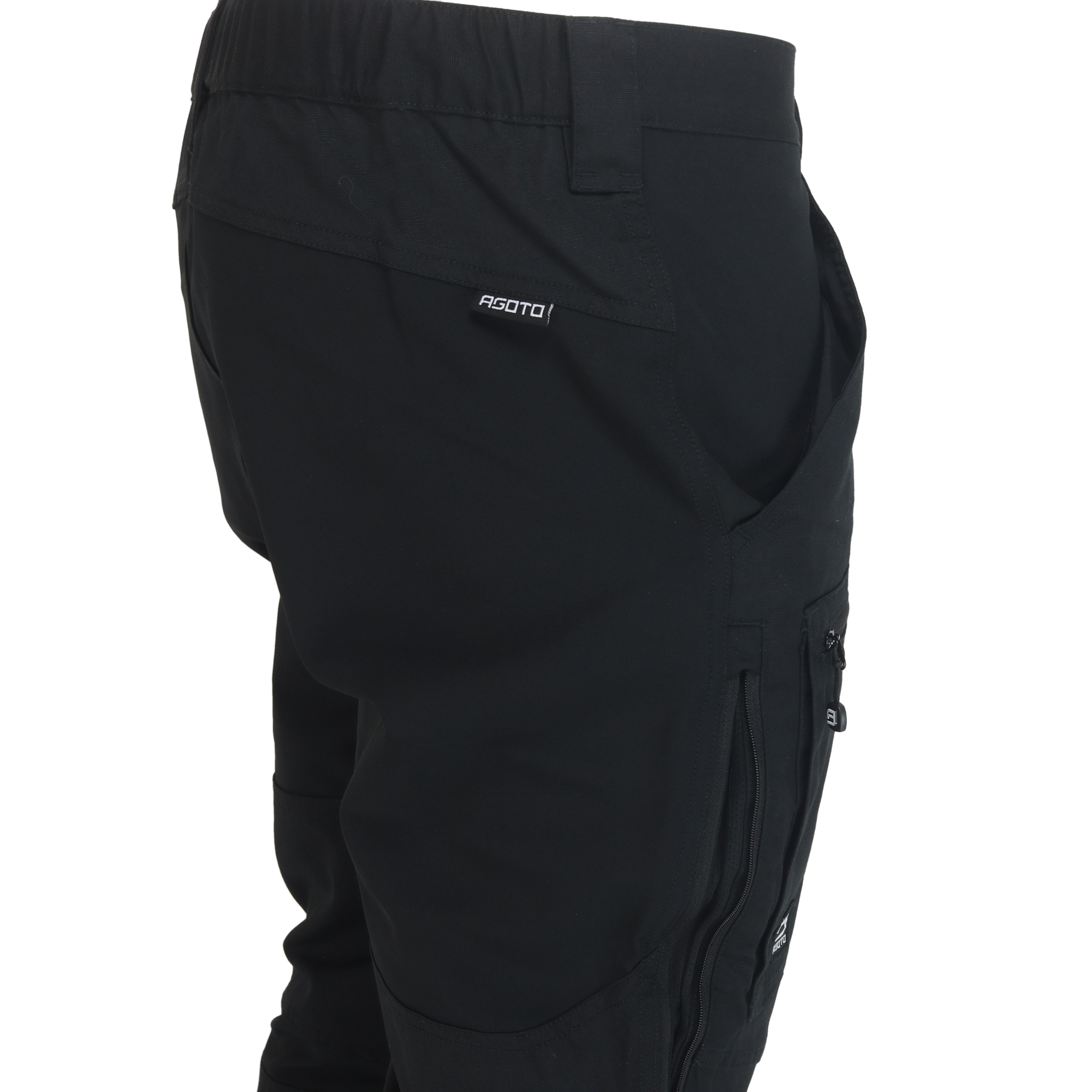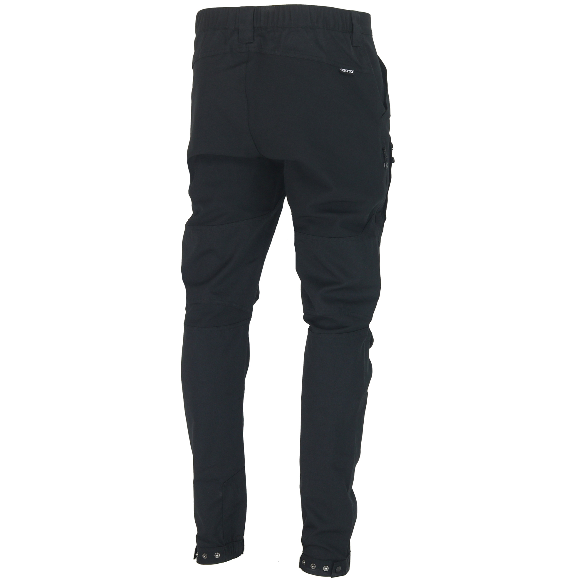 Az Asoto Northsky nadrág univerzális, rugalmas és strapabíró túranadrág mindazok számára, akik maximális funkcionalitást és kényelmet keresnek szabadtéri tevékenységekhez, fizikai munkához vagy hétköznapi viseléshez. Ideális választás egynapos túrákra, többnapos trekkingre, természetjárásra vagy akár városi közlekedéshez és kutyasétáltatáshoz. A négyirányú rugalmas betétek az ülepnél, térdnél és a csípőnél teljes mozgásszabadságot biztosítanak gyalogláshoz, mászáshoz vagy terepen végzett munkához. Az erősített poli-pamut vászonpanelek a combokon és a nadrágszárak alsó részén növelik az anyag kopásállóságát és szakadással szembeni ellenállását. A vízlepergető felületkezelés védelmet nyújt nedvesség és enyhe eső ellen, így változékony időjárásban is megbízható viselet. A combokon elhelyezett szellőző cipzárak hatékony légáramlást biztosítanak, segítve a test komfortos klímájának fenntartását fokozott fizikai igénybevétel esetén is. Az öttáskás kialakítás biztonságos tárolást tesz lehetővé, az állítható szárvégek és a beépített cipőkampók megakadályozzák a szennyeződések bejutását, és biztosítják a nadrágszárak stabil helyzetét. Az Asoto Northsky nadrágok tökéletes egyensúlyt kínálnak rugalmasság, légáteresztés, vízállóság és mechanikai ellenállás között, így kiválóan teljesítenek extrém kültéri körülmények között, terepen vagy városban egyaránt, hosszú élettartammal. A képen látható modell 182 cm magas, 88 kg súlyú, L-es méretet visel. Az L méretű nadrág teljes súlya mindössze 586 gramm.