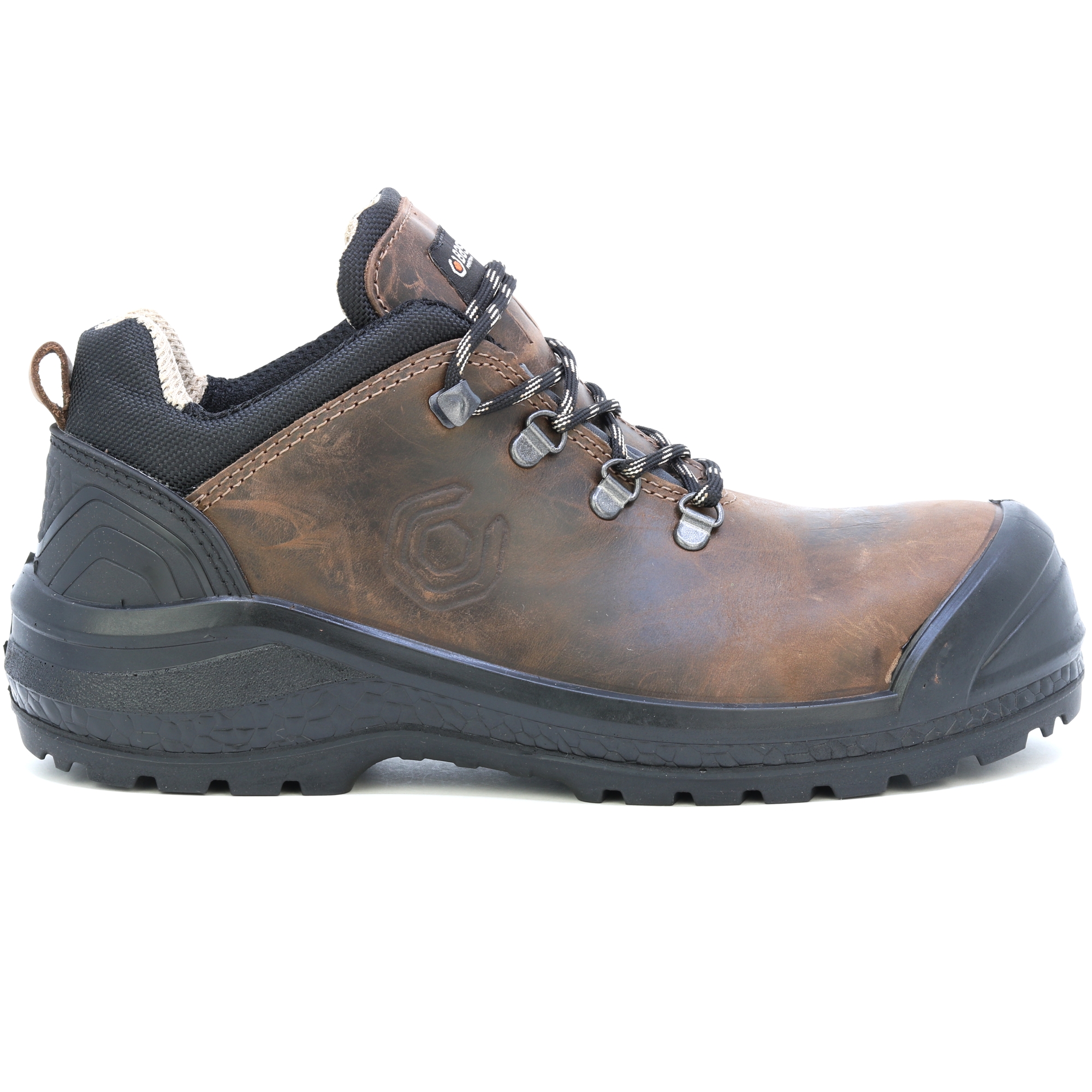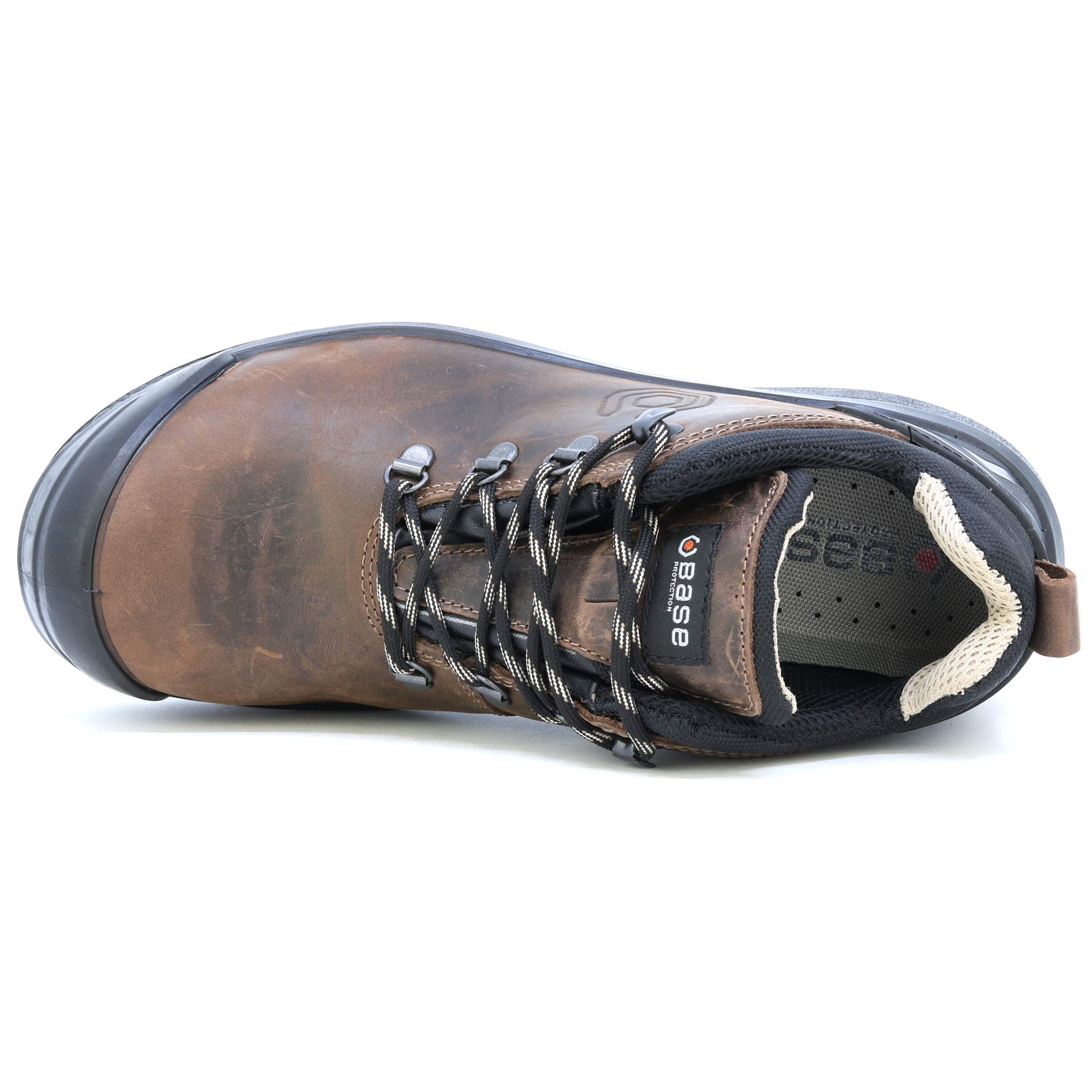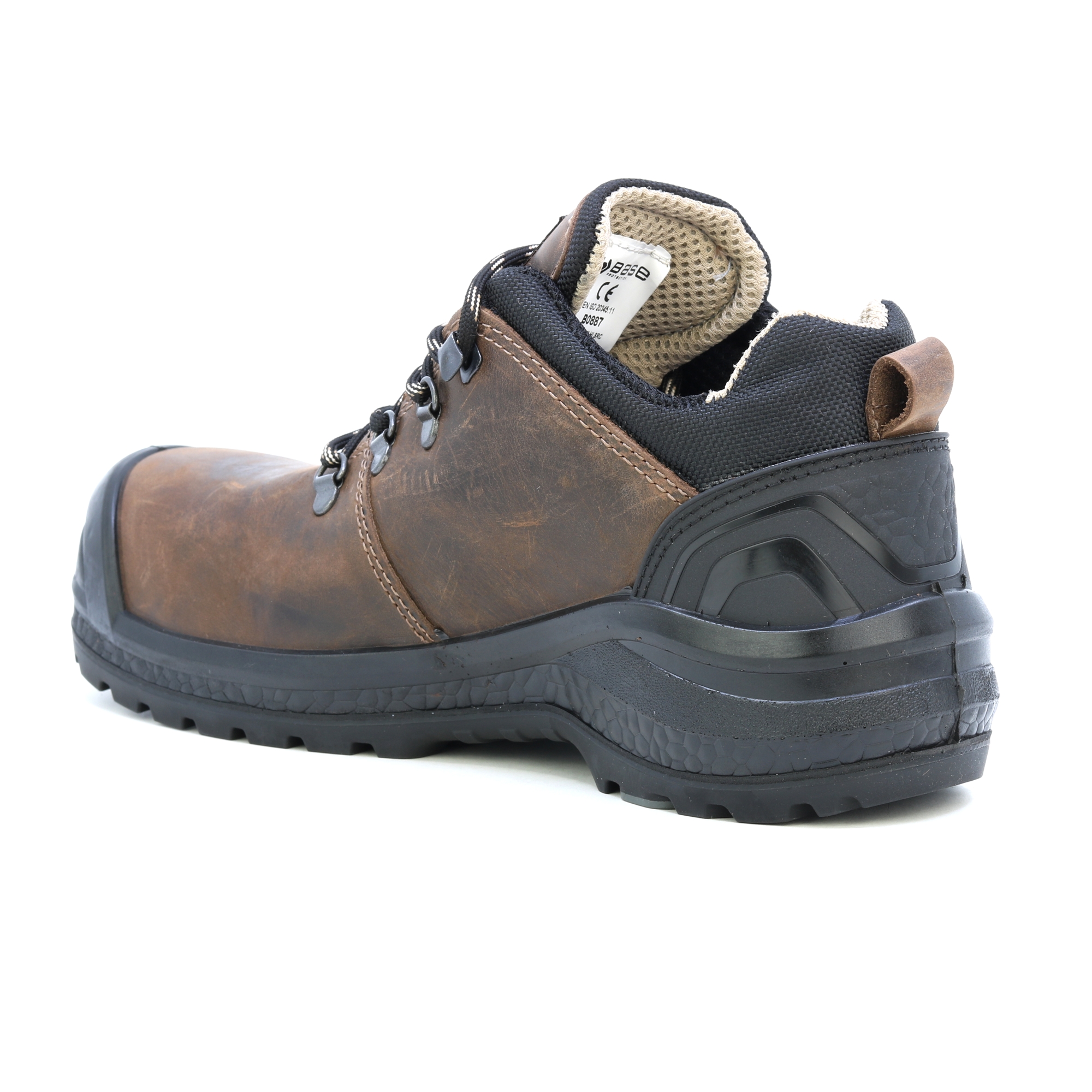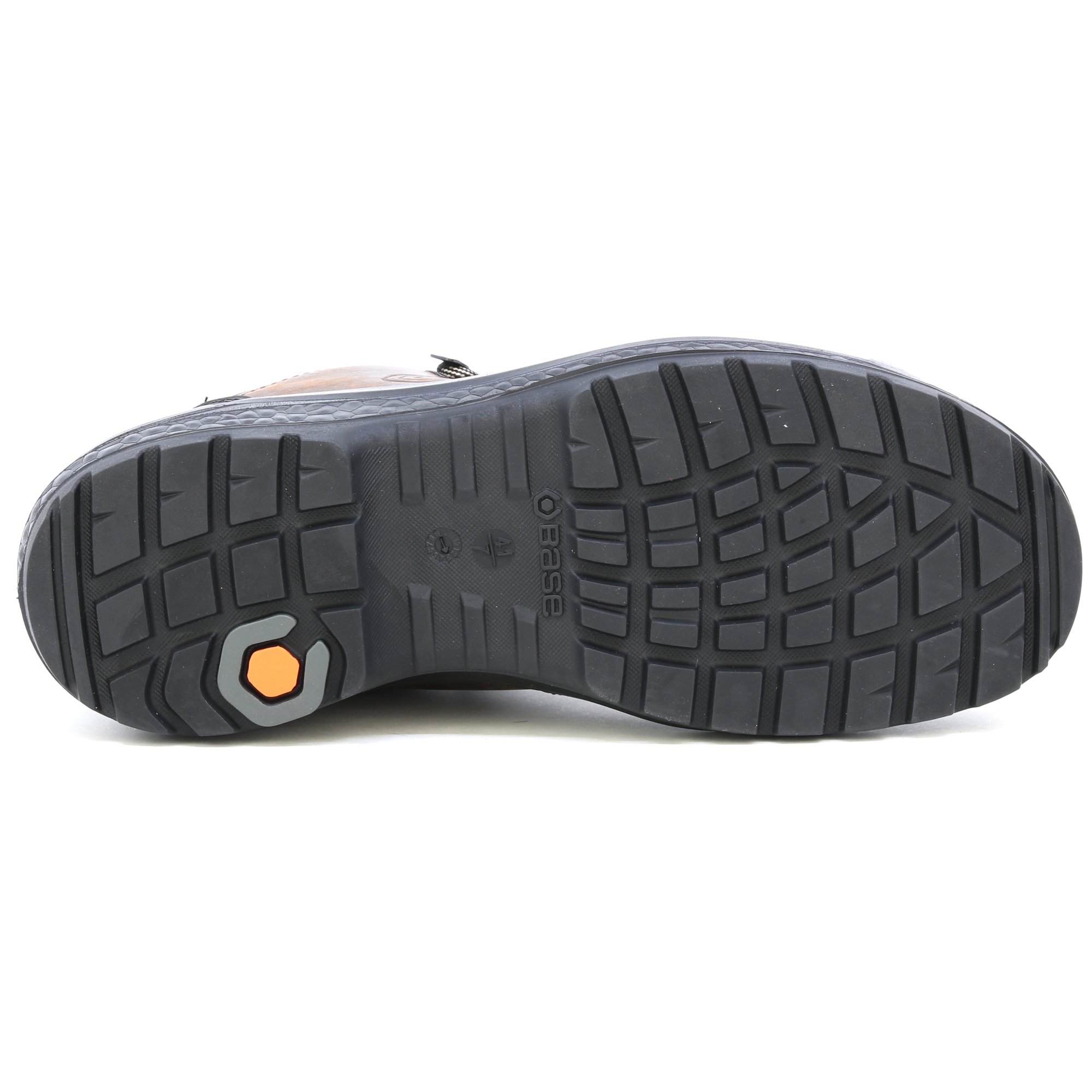 Kožené pracovní boty italské značky BASE se stupněm ochrany S3 jsou navrženy tak, aby vyhověly nejpřísnějším požadavkům kladeným na pracovní obuv. Špička obuvi obsahuje kompozitovou tužinku s kevlarovou stélkou pro účinnou ochranu proti mechanickému nárazu. Výhodou kompozitové tužinky je vlastnost, která zabraňuje přehřívání v letních měsících a zároveň vede k udržení tepelného komfortu při chladných dnech. Svršek boty je vyroben z kvalitní lícové usně. Vnitřek obuvi je opatřen prodyšnou textilií, která umožňuje noze volně dýchat při vysoké pracovní zátěži. HRO podrážka je vyrobena z antistatického a olejivzdorného materiálu a je odolná kontaktnímu teplu. Pracovní obuv BASE udělá radost zákazníkům hledajícím u obuvi zejména kvalitu a pohodlí. EN ISO 20345 - BEZPEČNOSTNÍ OBUV