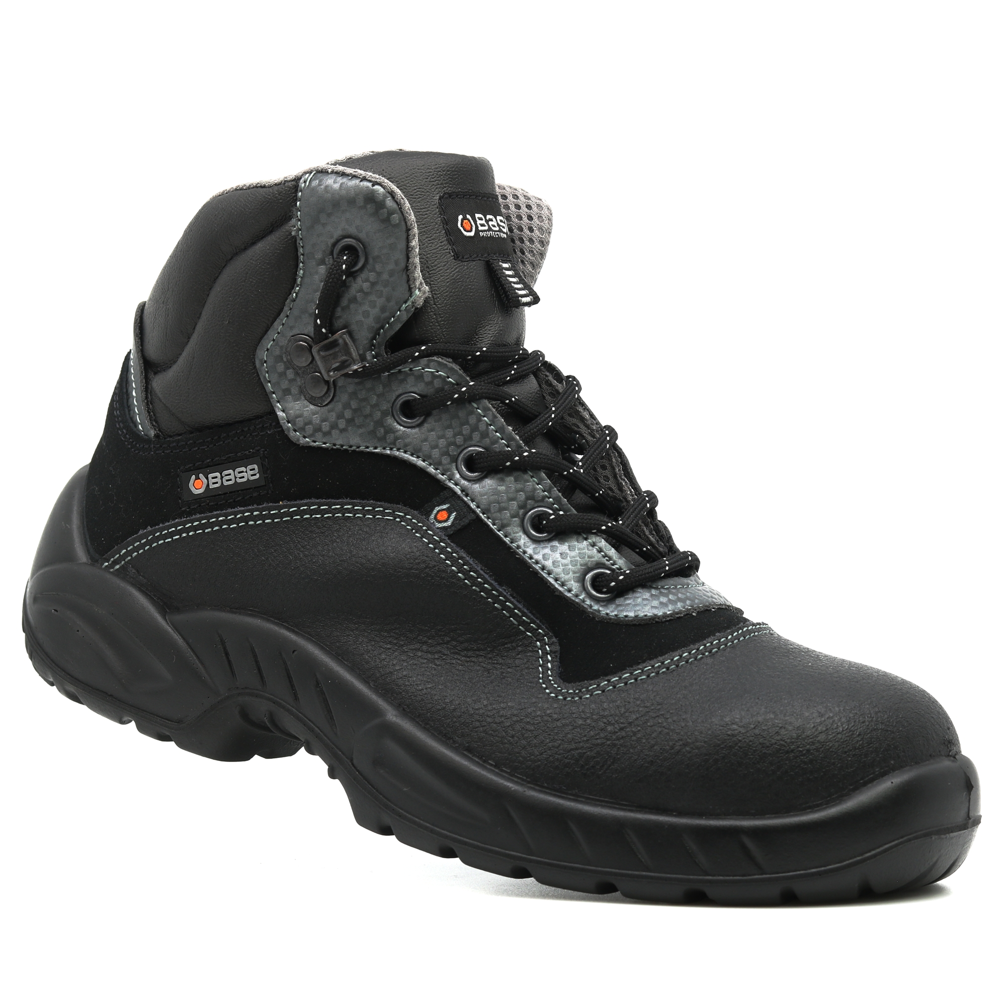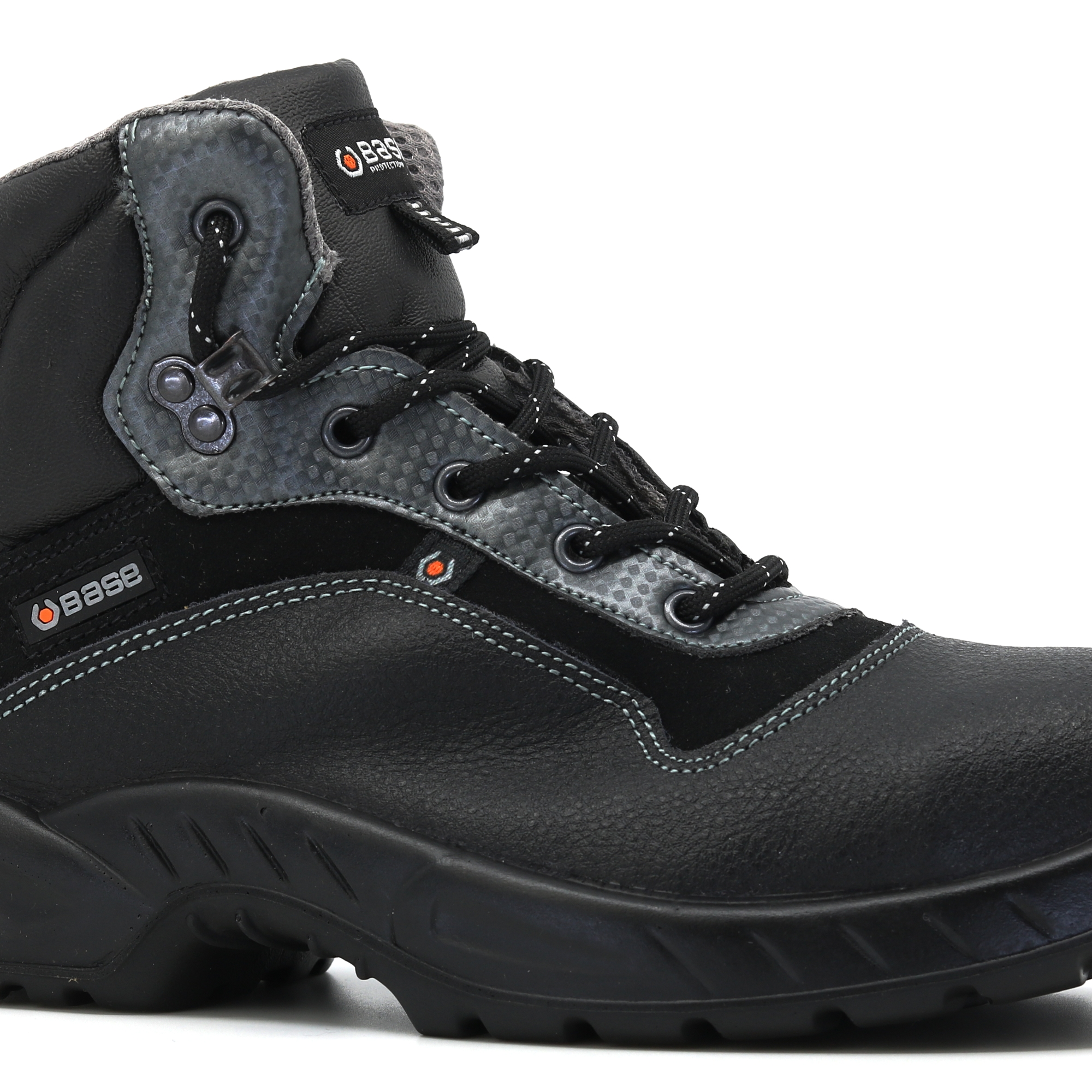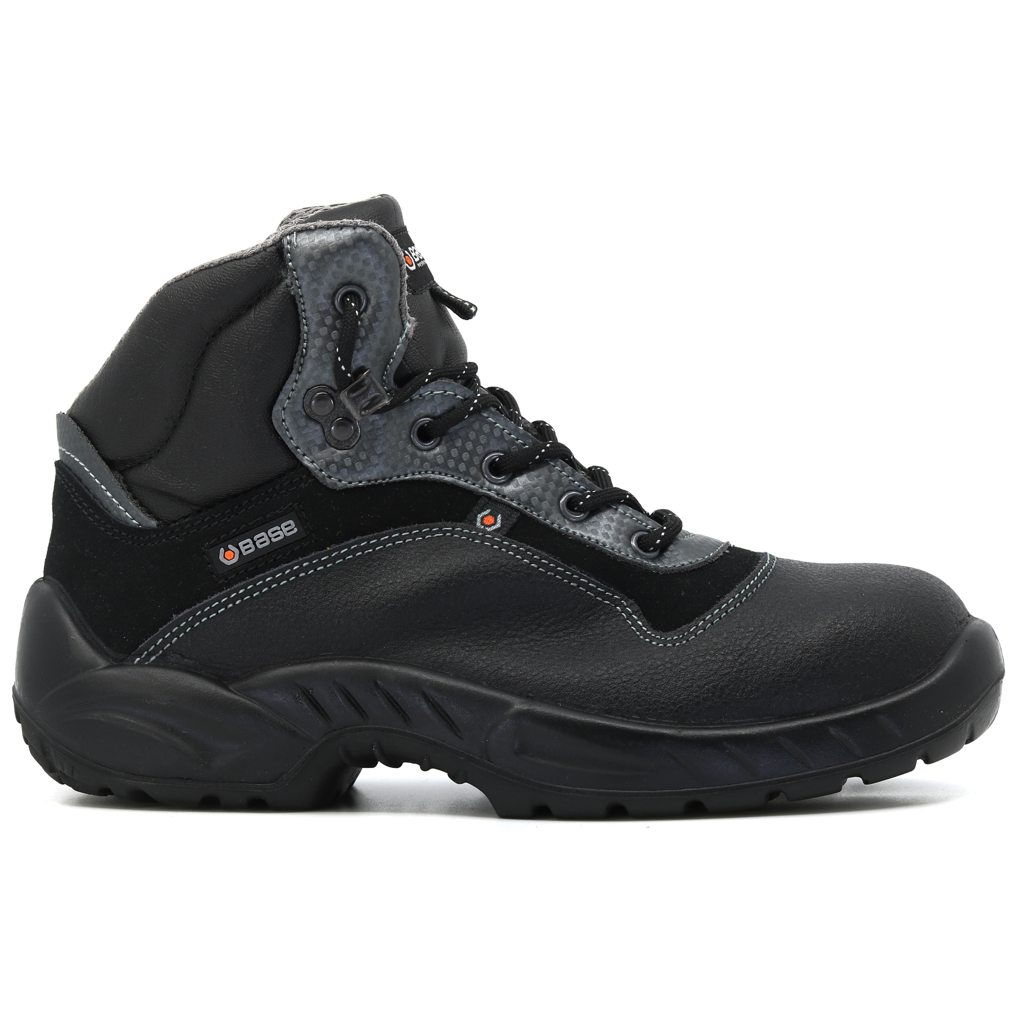 Kožené pracovní boty italské značky BASE se stupněm ochrany S3 jsou navrženy tak, aby vyhověly nejpřísnějším požadavkům kladeným na pracovní obuv. Špička obuvi obsahuje kompozitovou tužinku s kevlarovou stélkou pro účinnou ochranu proti mechanickému nárazu. Výhodou kompozitové tužinky je vlastnost, která zabraňuje přehřívání v letních měsících a zároveň vede k udržení tepelného komfortu při chladných dnech. Svršek boty je vyroben z kvalitní hovězinové usně. Vnitřek obuvi je opatřen prodyšnou textilií, která umožňuje noze volně dýchat při vysoké pracovní zátěži. Podrážka je vyrobena z antistatického a olejivzdorného materiálu. Pracovní obuv BASE udělá radost zákazníkům hledajícím u obuvi zejména kvalitu a pohodlí. EN ISO 20345 - BEZPEČNOSTNÍ OBUV