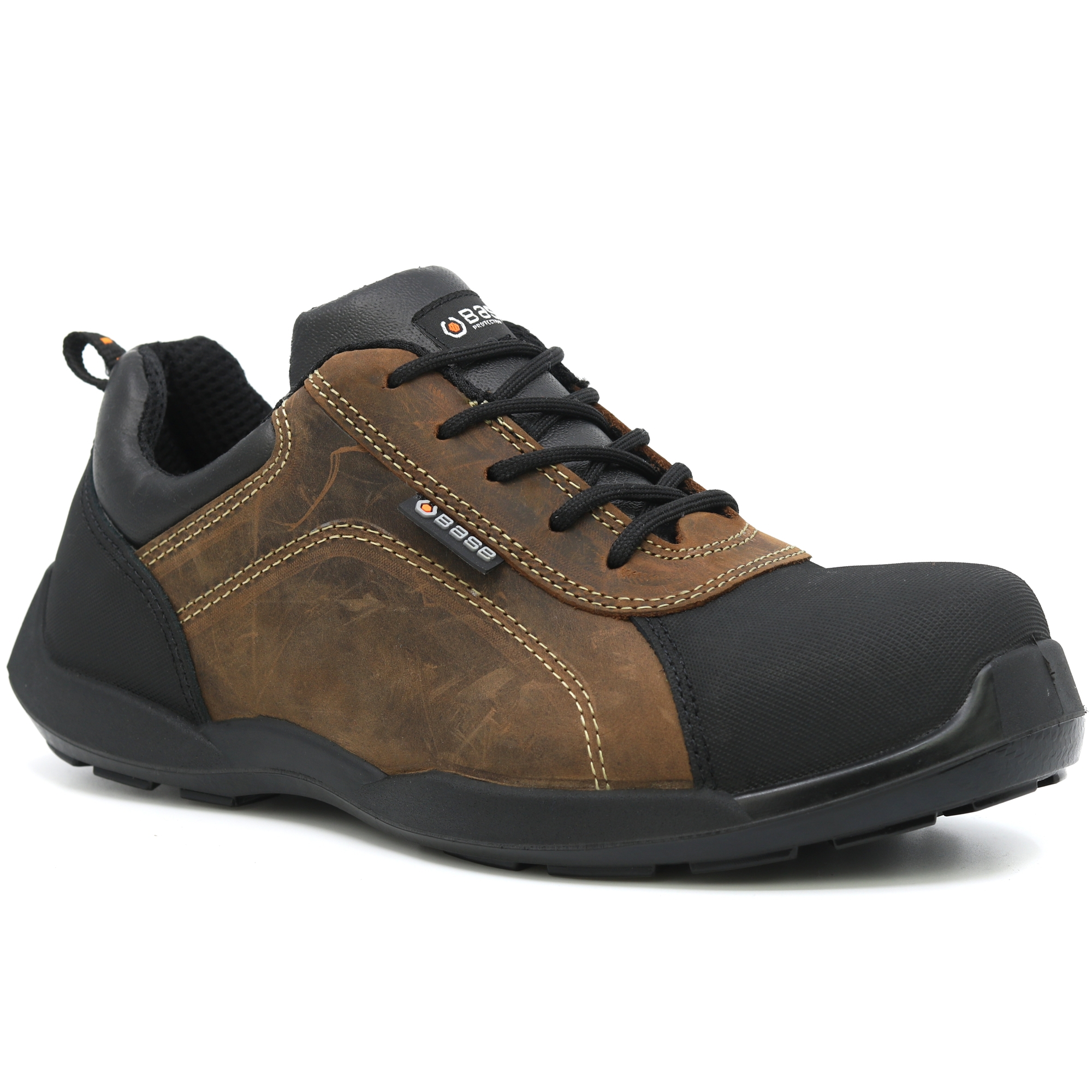 Kožené pracovní boty italské značky BASE se stupněm ochrany S3 jsou navrženy tak, aby vyhověly nejpřísnějším požadavkům kladeným na pracovní obuv. Špička obuvi obsahuje kompozitovou tužinku s kevlarovou stélkou pro účinnou ochranu proti mechanickému nárazu. Výhodou kompozitové tužinky je vlastnost, která zabraňuje přehřívání v letních měsících a zároveň vede k udržení tepelného komfortu při chladných dnech. Svršek boty je vyroben z kvalitní lícové usně. Vnitřek obuvi je opatřen prodyšnou textilií, která umožňuje noze volně dýchat při vysoké pracovní zátěži. Podrážka je vyrobena z antistatického a olejivzdorného materiálu. Pracovní obuv BASE udělá radost zákazníkům hledajícím u obuvi zejména kvalitu a pohodlí. EN ISO 20345 - BEZPEČNOSTNÍ OBUV