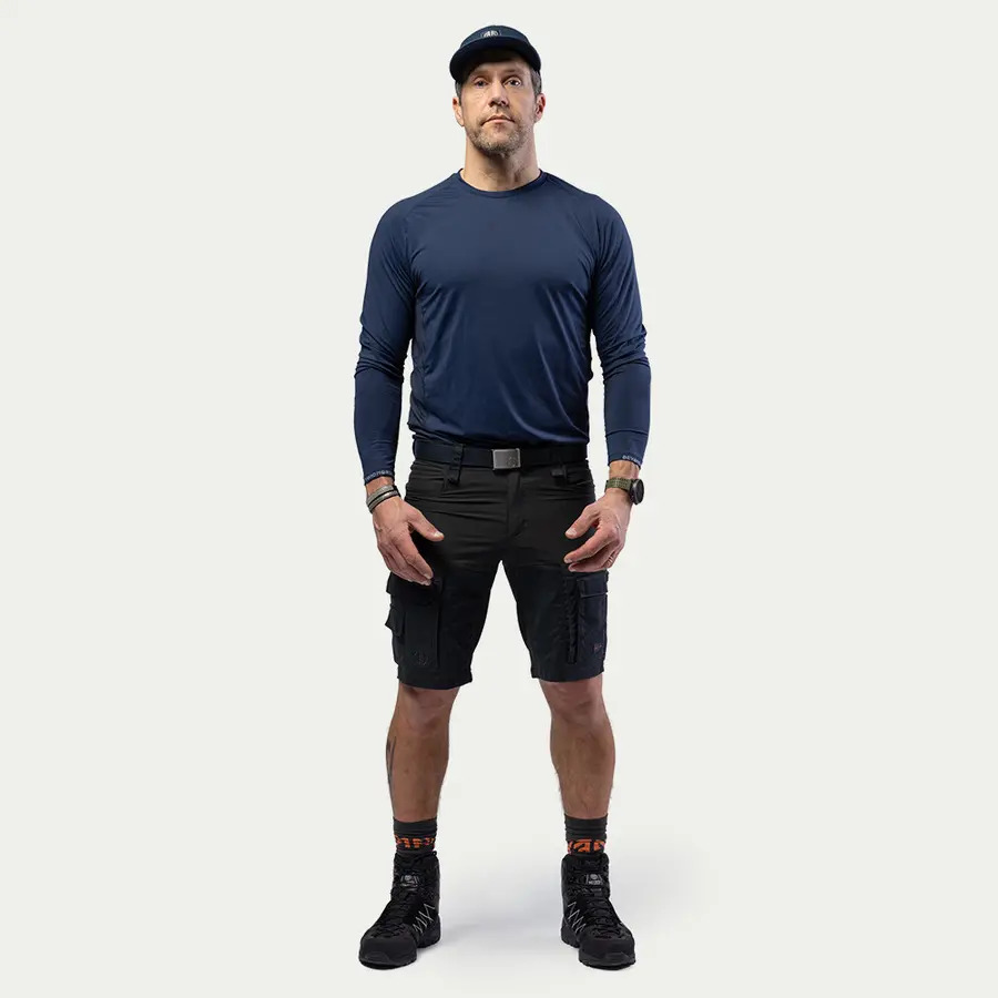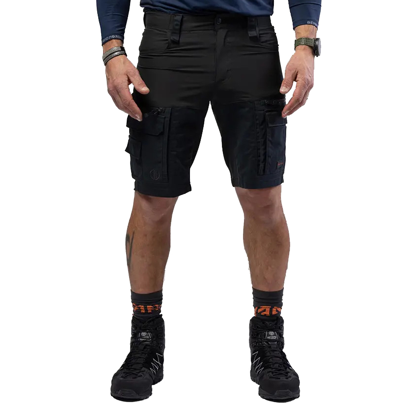 A BN010 férfi outdoor rövidnadrágot azoknak a kalandvágyó felhasználóknak tervezték, akik értékelik a tartósság, a funkcionalitás és a kényelem tökéletes egyensúlyát, akár természetjárásról, akár kültéri munkavégzésről van szó. A környezetbarát, újrahasznosított TERRAFLEX™ anyagból készült, finoman csiszolt felületű rövidnadrág halk mozgást és kivételes komfortérzetet biztosít. Hét praktikus zsebbel, combon elhelyezett szellőző cipzárral és masszív szerszámtartóval rendelkezik, így mozgásszabadságot nyújt a legkeményebb helyzetekben is. A lépésköznél megerősített, háromszoros varrás extra strapabírást ad még a legdurvább terepen is, míg a Teflon EcoElite® vízlepergető bevonat védelmet nyújt az eső és a nedvesség ellen. A nadrág könnyű, de rendkívül erős, négyirányú rugalmas derékrésszel a maximális mozgékonyság érdekében, dupla megerősítésű övbújtatókkal a nehezebb szerszámok hordozásához, valamint többfunkciós hurkokkal, amelyek alkalmasak balták, karabinerek vagy egyéb kiegészítők rögzítésére. Legyen szó túráról, munkáról vagy extrém kalandról, a BN010 rövidnadrág minden kihívásra készen áll.