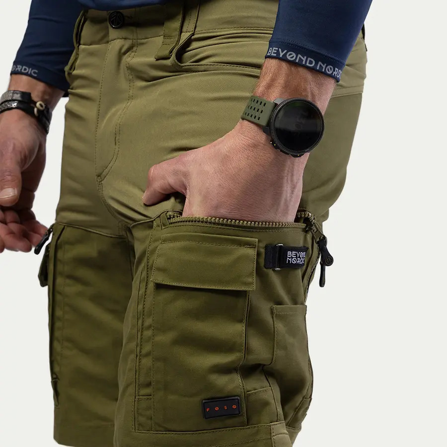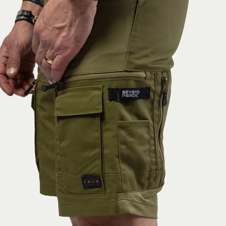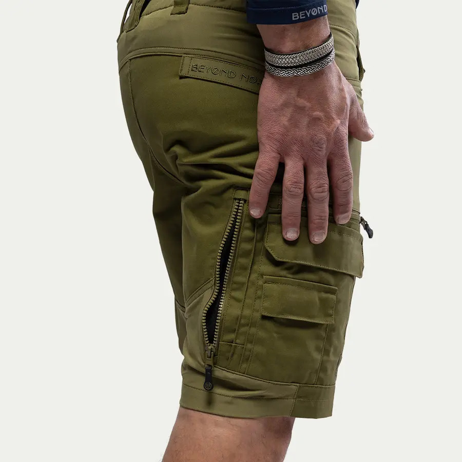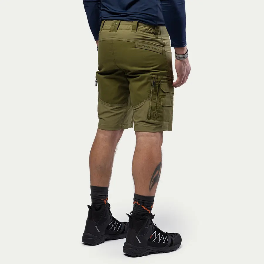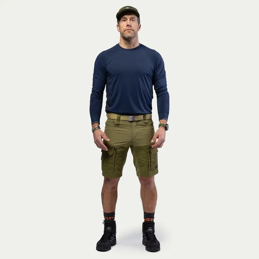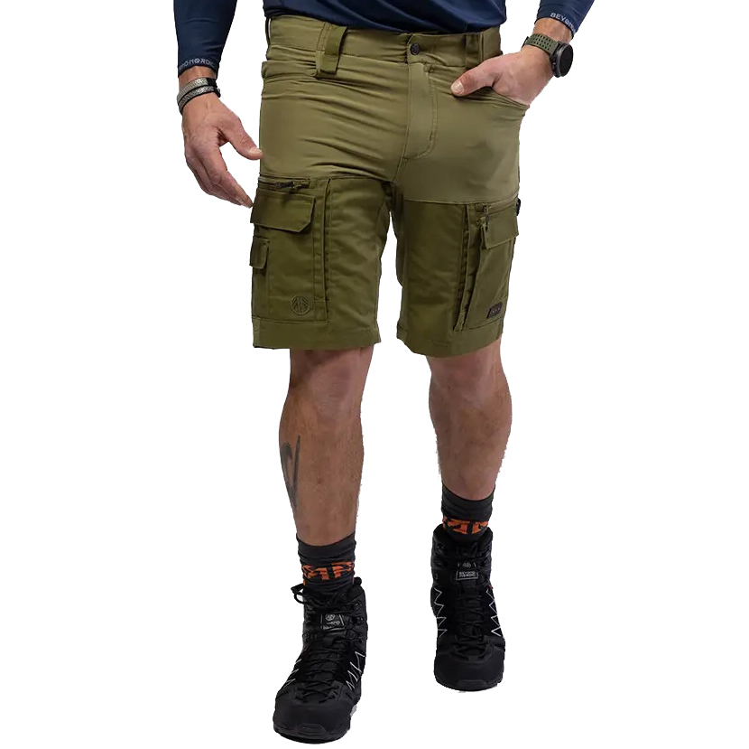 A BN010 férfi outdoor rövidnadrágot azoknak a kalandvágyó felhasználóknak tervezték, akik értékelik a tartósság, a funkcionalitás és a kényelem tökéletes egyensúlyát, akár természetjárásról, akár kültéri munkavégzésről van szó. A környezetbarát, újrahasznosított TERRAFLEX™ anyagból készült, finoman csiszolt felületű rövidnadrág halk mozgást és kivételes komfortérzetet biztosít. Hét praktikus zsebbel, combon elhelyezett szellőző cipzárral és masszív szerszámtartóval rendelkezik, így mozgásszabadságot nyújt a legkeményebb helyzetekben is. A lépésköznél megerősített, háromszoros varrás extra strapabírást ad még a legdurvább terepen is, míg a Teflon EcoElite® vízlepergető bevonat védelmet nyújt az eső és a nedvesség ellen. A nadrág könnyű, de rendkívül erős, négyirányú rugalmas derékrésszel a maximális mozgékonyság érdekében, dupla megerősítésű övbújtatókkal a nehezebb szerszámok hordozásához, valamint többfunkciós hurkokkal, amelyek alkalmasak balták, karabinerek vagy egyéb kiegészítők rögzítésére. Legyen szó túráról, munkáról vagy extrém kalandról, a BN010 rövidnadrág minden kihívásra készen áll.