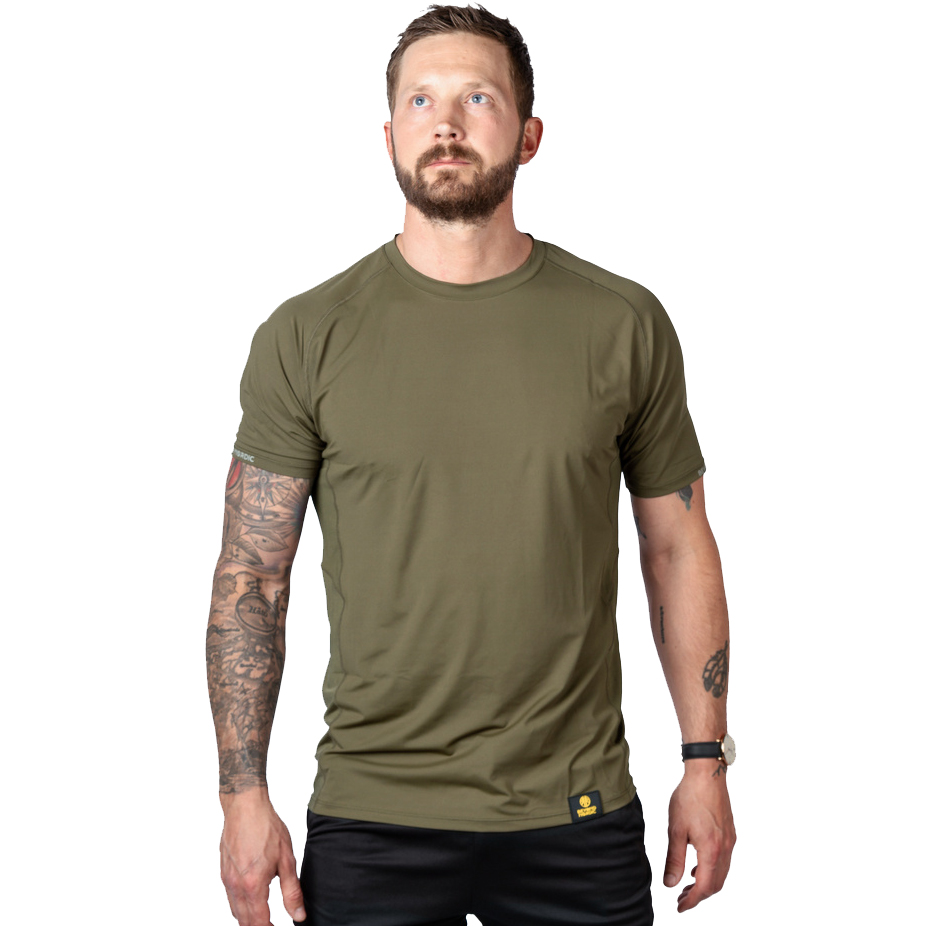 A BN205 Performance férfi póló alkalmas forró nyári napokra és fizikailag megterhelő kalandokra. Puha, rugalmas full stretch anyagból készült, mindkét oldalán hálós panelekkel az extra szellőzés érdekében. A funkcionális pólók gyorsan száradó anyaga hatékonyan vezeti el a nedvességet a testből minden típusú fizikai tevékenység során. Egy fényvisszaverő Beyond Nordic logó a vállak hátulján és egy logófolt az elején teszi teljessé ezt az egyszerű, de lenyűgöző dizájnt. A BN205 Performance póló 180 g/m2 (84%) poliészterből és spandexből (16%) készül.