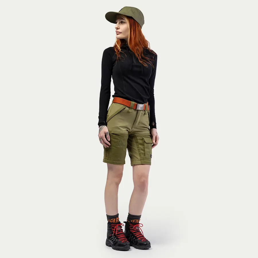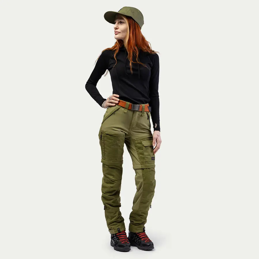 A B002 Zip-Off női túranadrág levehető szárral rendelkezik, és a legkeresettebb, sokoldalú női túranadrág. Tartós kültéri nadrág modern szabással túrázáshoz, túrázáshoz, horgászathoz, vadászathoz és egyéb szabadtéri tevékenységekhez, mint például kertészkedés, kutyasétáltatás vagy játék a családdal a kertben. Termékeink anyagának kiválasztásakor számos tényező fontos szerepet játszik. A fő hangsúlyt a kényelemre, a tartósságra, a légáteresztő képességre és a különféle időjárási körülmények között való viselkedésre helyezik. A BN002 túranadrág kiváló légáteresztő képességű, szellőző anyagból készült, 65% poliészter / 35% pamut, amely vízlepergető Teflon EcoElite® (fluorkarbon nélküli DWR impregnálás) anyaggal van felszerelve. Szellőzőnyílások a combok külső oldalán. Vízlepergető és szellőző anyag. Összesen 6 zseb, ebből 5 cipzáras. Állítható lábvégek 4 pozícióban. Zseb meghosszabbított kampóval a szárak rögzítéséhez, hogy a nadrágot a cipőhöz rögzítse. Megerősített combrész a rendkívüli tartósság érdekében. Több hurok a szerszámok felakasztására. RECCO rendszer az Ön biztonsága érdekében. A természetben való tartózkodás biztonsága rendkívül fontos, ezért használjuk a RECCO technológiát. Ebbe a ruhadarabba egy RECCO fényvisszaverő chipet ültettek be, amely lehetővé teszi a professzionális mentőcsapatok számára a világ minden tájáról, hogy légi vagy szárazföldi úton kutassanak, ha baleset történik, vagy ha eltéved a vadonban. A RECCO reflektorok könnyűek, működésükhöz nincs szükség sem áramra, sem aktiválásra. Úgy tervezték, hogy egy életen át kitartsanak, és ne öregedjenek vagy kopjanak.