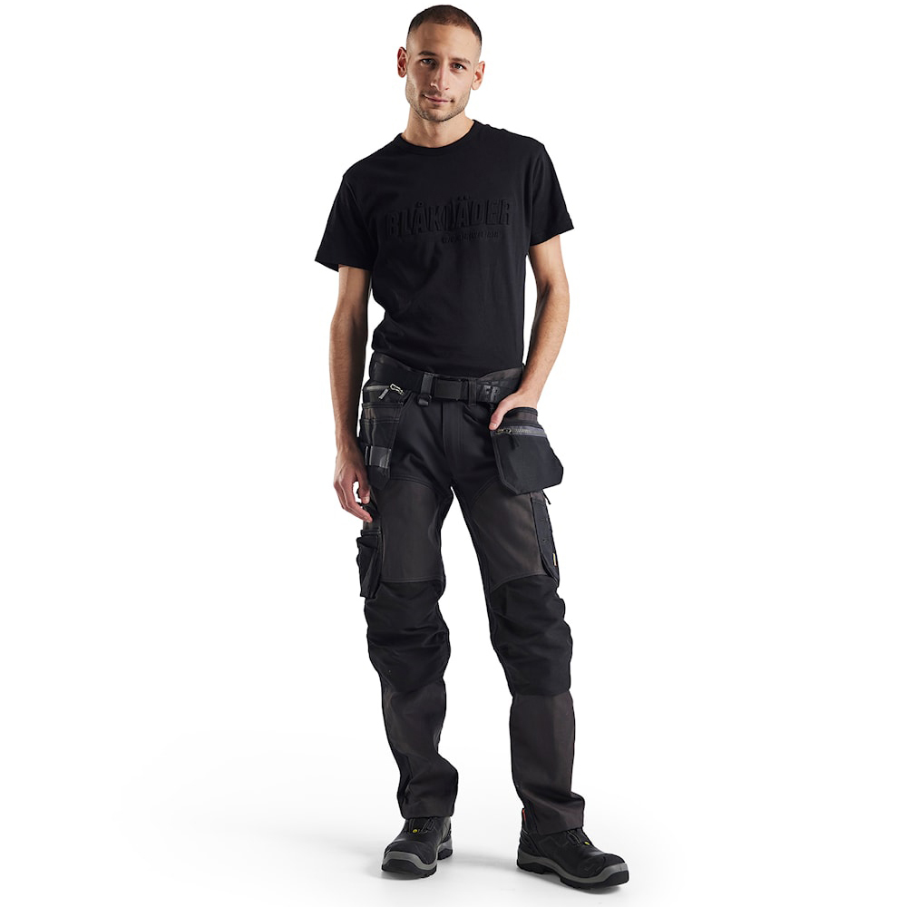 Ez a stílusos pamut póló feltűnő 3D „Blakläder” felirattal a mellrészen tökéletes választás munkába és mindennapi viseletre egyaránt. A lazább szabás maximális kényelmet és szabad mozgást biztosít, míg a kiváló minőségű anyag (100% pamut, egyszerű kötött szövet, 150 g/m2) légáteresztő és kellemes tapintású. A póló bordázott kerek nyakkivágással, megerősített váll- és nyakvarrásokkal rendelkezik a nagyobb tartósság érdekében. Az egyedi 3D „Blakläder” nyomat kiemeli az Ön kifinomult ízlését a munkaruházat terén, és modern megjelenést kölcsönöz a pólónak.