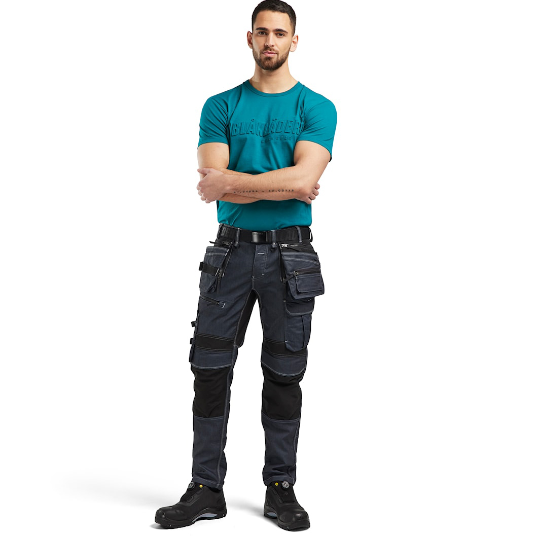 Ez a stílusos pamut póló feltűnő 3D „Blakläder” felirattal a mellrészen tökéletes választás munkába és mindennapi viseletre egyaránt. A lazább szabás maximális kényelmet és szabad mozgást biztosít, míg a kiváló minőségű anyag (100% pamut, egyszerű kötött szövet, 150 g/m2) légáteresztő és kellemes tapintású. A póló bordázott kerek nyakkivágással, megerősített váll- és nyakvarrásokkal rendelkezik a nagyobb tartósság érdekében. Az egyedi 3D „Blakläder” nyomat kiemeli az Ön kifinomult ízlését a munkaruházat terén, és modern megjelenést kölcsönöz a pólónak.