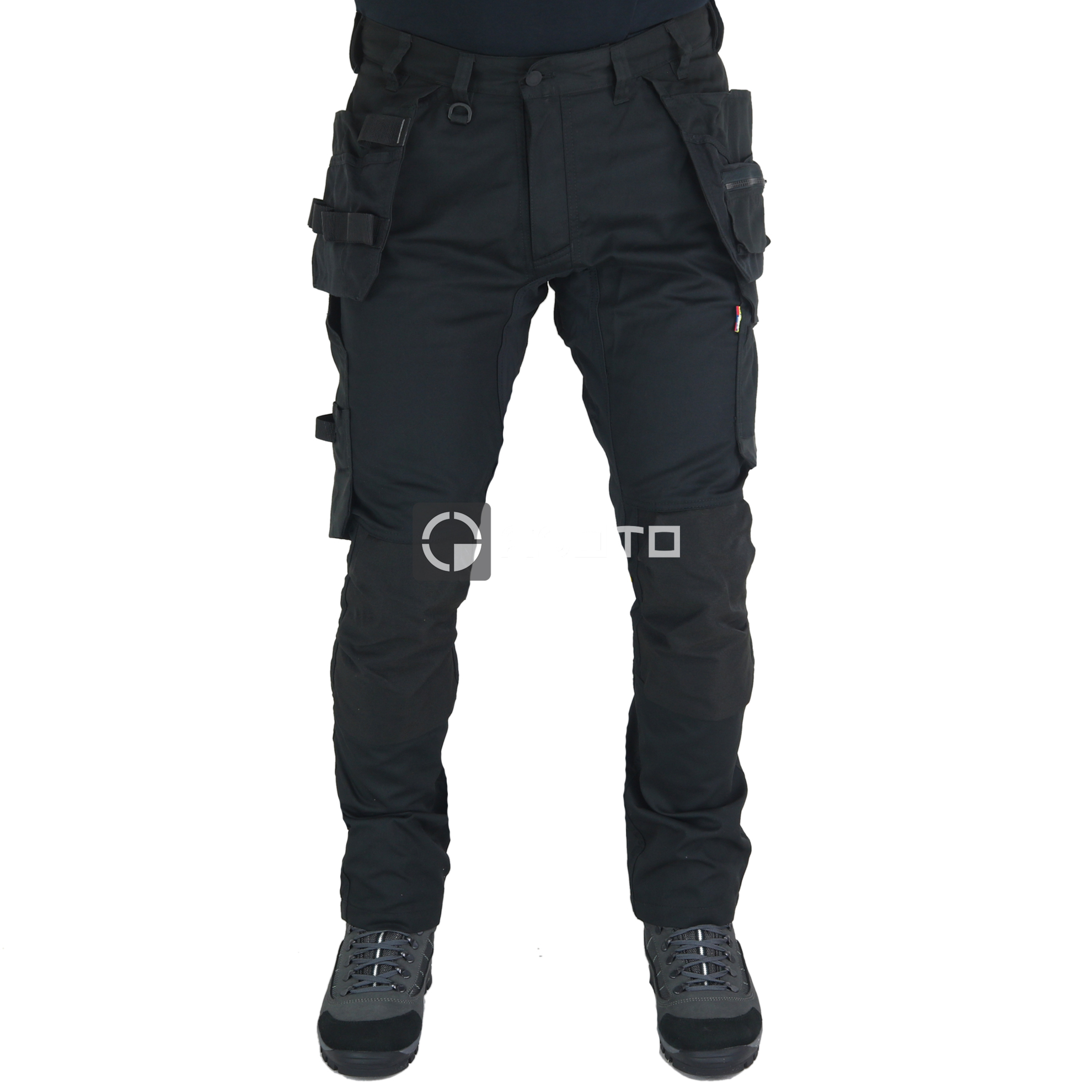 Élettartam garancia a varratokra! A Blakläder 175018329900 kézműves nadrág stretch anyaggal könnyű és rendkívül kényelmes munkanadrág, amely kétirányú rugalmas anyagot ötvöz négyirányú stretch panelekkel, hogy maximális mozgásszabadságot biztosítson ott, ahol a legnagyobb szükség van rá. Az ergonomikusan kialakított térdeknek és a lazább szabásnak köszönhetően egész napos viselés esetén is kiváló kényelmet nyújt. A nadrág tartós szögtartó zsebekkel, megerősített CORDURA® térdvédő zsebekkel, praktikus erősített zsebekkel, colstok zsebbel, elülső zsebekkel és mindkét oldalon kalapácstartó hurkokkal van ellátva, így ideális választás a professzionális kézművesek számára. A műanyag cipzár, a hátul széles övbújtató, a fémgombok, a derék részen található D-gyűrű és a levehető dokumentumzseb növelik a funkcionalitást és a tartósságot. Emellett a nadrág szárának alsó része megerősített a hosszabb élettartam érdekében, míg a fényvisszaverő elemek a jobb láthatóságot biztosítják. Az anyag 63% poliészterből, 33% pamutból és 4% elasztoléfinből áll, twill szövésben, 245 g/m2 súllyal – tartós, rugalmas és kényelmes viselet. A Blakläder ráadásul élettartam garanciát vállal a varratokra, ami igazolja ennek a kézműves nadrágnak a kiváló minőségét és hosszú élettartamát.