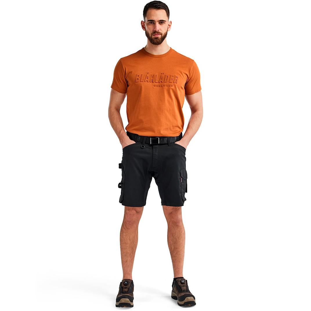 Könnyű és kényelmes mesterember rövidnadrág, amely a kétszálú rugalmas anyagot négyirányú stretch panelekkel kombinálja a maximális mozgásszabadság érdekében. A megerősített zsebek extra tartósságot biztosítanak, beleértve a colstok zsebet és a kalapácstartót mindkét oldalon. A fém gombok, műanyag cipzár és széles övbújtatók hosszú élettartamot és kényelmes viseletet garantálnak. A speciális varráskialakításnak köszönhetően – amelyre élettartam-garanciát vállalunk – nem kell aggódnia az idő előtti kopás miatt. A lábszáron található fényvisszaverő elemek növelik a láthatóságot. A poliészter, pamut és elasztolefin (245 g/m2) anyagkeverék optimális egyensúlyt biztosít a tartósság és a rugalmasság között.