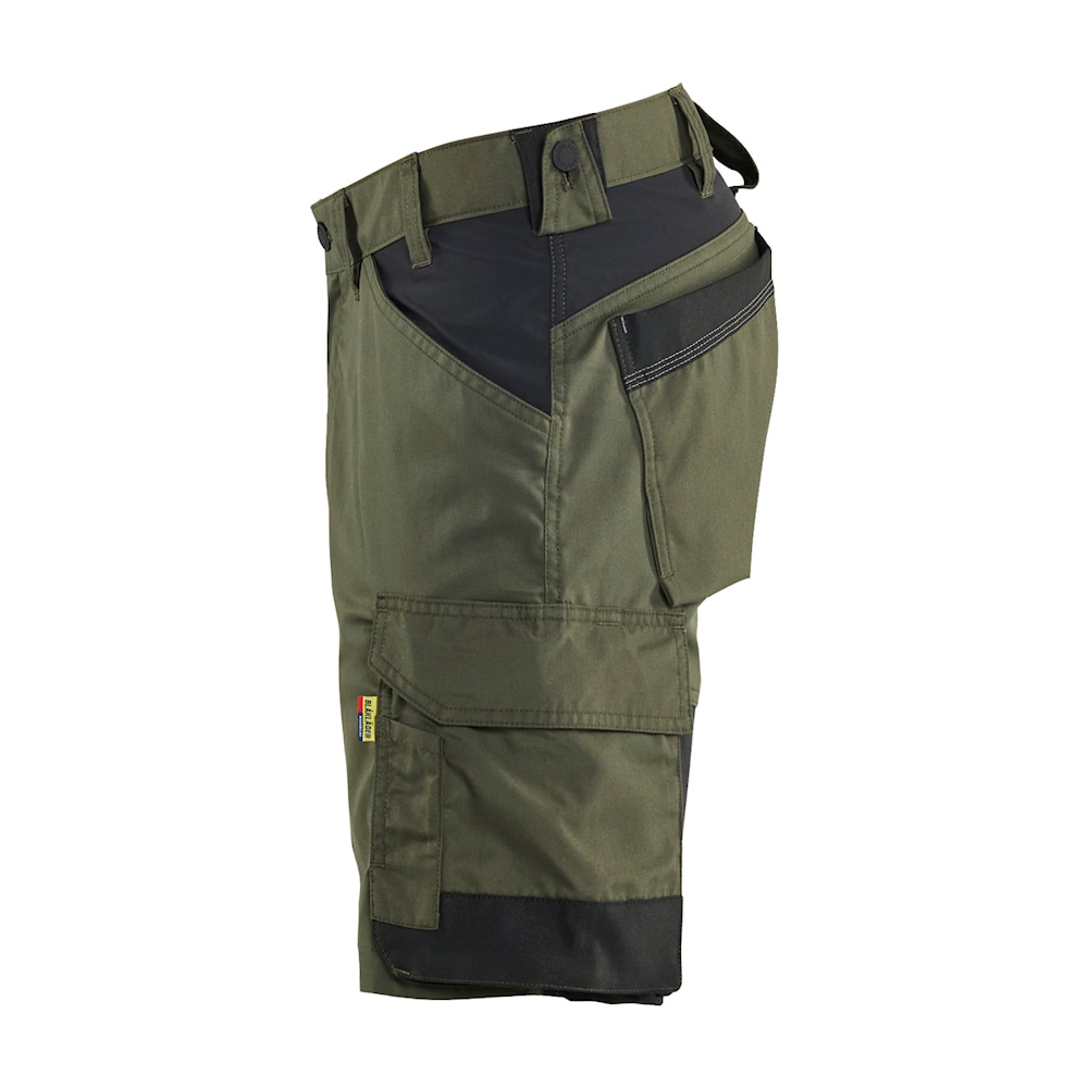 Könnyű és kényelmes mesterember rövidnadrág, amely a kétszálú rugalmas anyagot négyirányú stretch panelekkel kombinálja a maximális mozgásszabadság érdekében. A megerősített zsebek extra tartósságot biztosítanak, beleértve a colstok zsebet és a kalapácstartót mindkét oldalon. A fém gombok, műanyag cipzár és széles övbújtatók hosszú élettartamot és kényelmes viseletet garantálnak. A speciális varráskialakításnak köszönhetően – amelyre élettartam-garanciát vállalunk – nem kell aggódnia az idő előtti kopás miatt. A lábszáron található fényvisszaverő elemek növelik a láthatóságot. A poliészter, pamut és elasztolefin (245 g/m2) anyagkeverék optimális egyensúlyt biztosít a tartósság és a rugalmasság között.