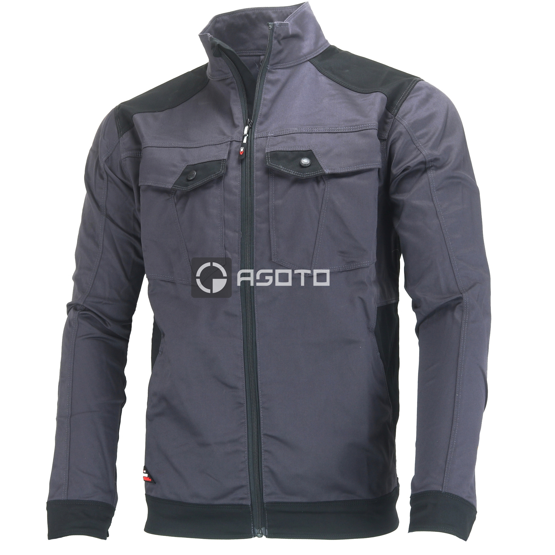 2 patentos elülső zseb, állítható mandzsetta, ergonomikus karkialakítás, mobiltelefon mellkasi zseb E-WARD szövettel és jelvénytartó hurokkal, patentos záródású, füles mellzseb, magasan sztreccs szövet, állkapu, elülső cipzár, széles belső zsebek .