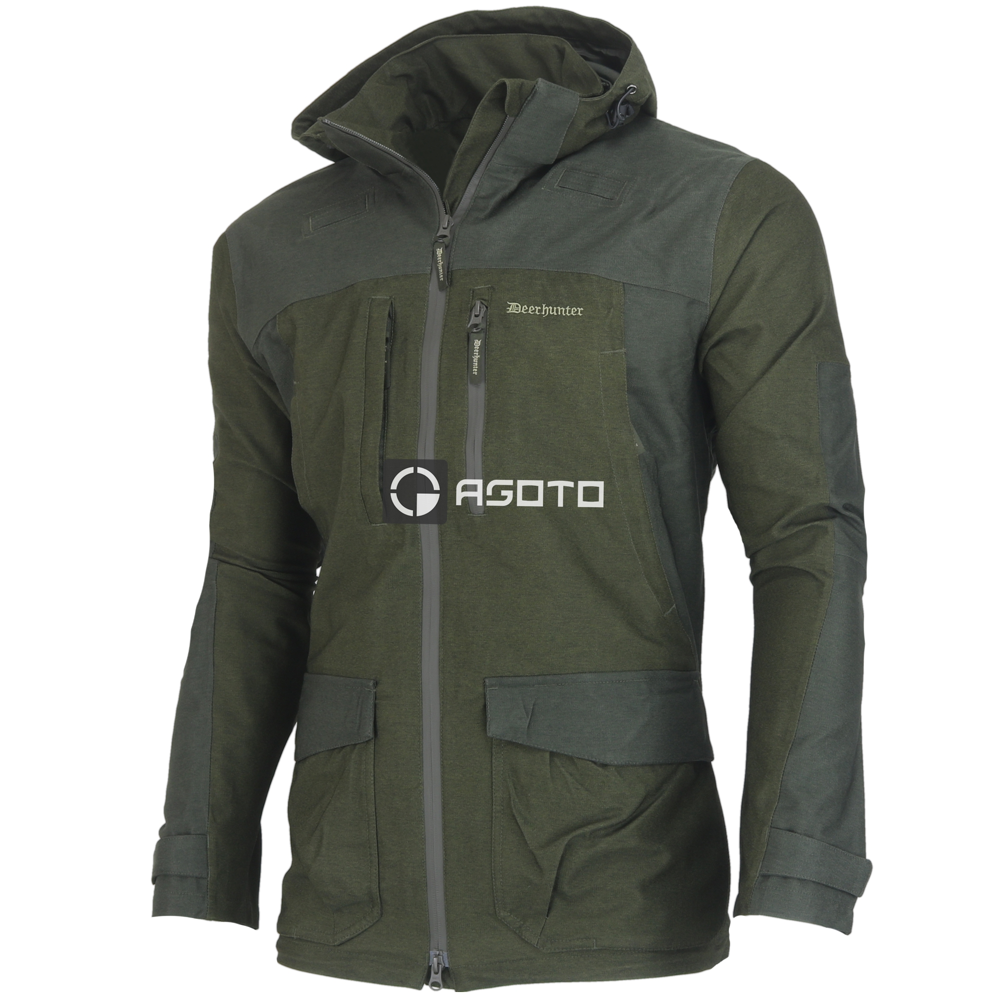 A Deerhunter Denmark Chasse olíva színű férfi kültéri és vadászkabát sokoldalú és funkcionális kialakításának köszönhetően ideális választás vadászatra és szabadtéri tevékenységekhez. A kabát könnyű, rugalmas és vízálló, 5000 mm-es vízoszloppal, így esőnek és szélnek is ellenáll. Az előre formált könyökök és a kétirányú központi cipzár biztosítja a mozgás szabadságát, míg a levehető kapucni és a húzózsinór szegély lehetővé teszi a testreszabást, ha szükséges. A kabát számos praktikus zsebbel rendelkezik, beleértve a mellkasi és kéztámaszos zsebeket biztonságos cipzárral, két nagy elülső füles zsebet és egy hátsó játékzsebet, amely mindkét oldalról elérhető. Minden varrás ragasztva van, ami növeli a vízállóságát, a légáteresztő anyag pedig kényelmes mozgást biztosít. Ezt a kabátot úgy tervezték, hogy ellenálljon a nehéz körülményeknek, miközben kényelmet és védelmet nyújt.