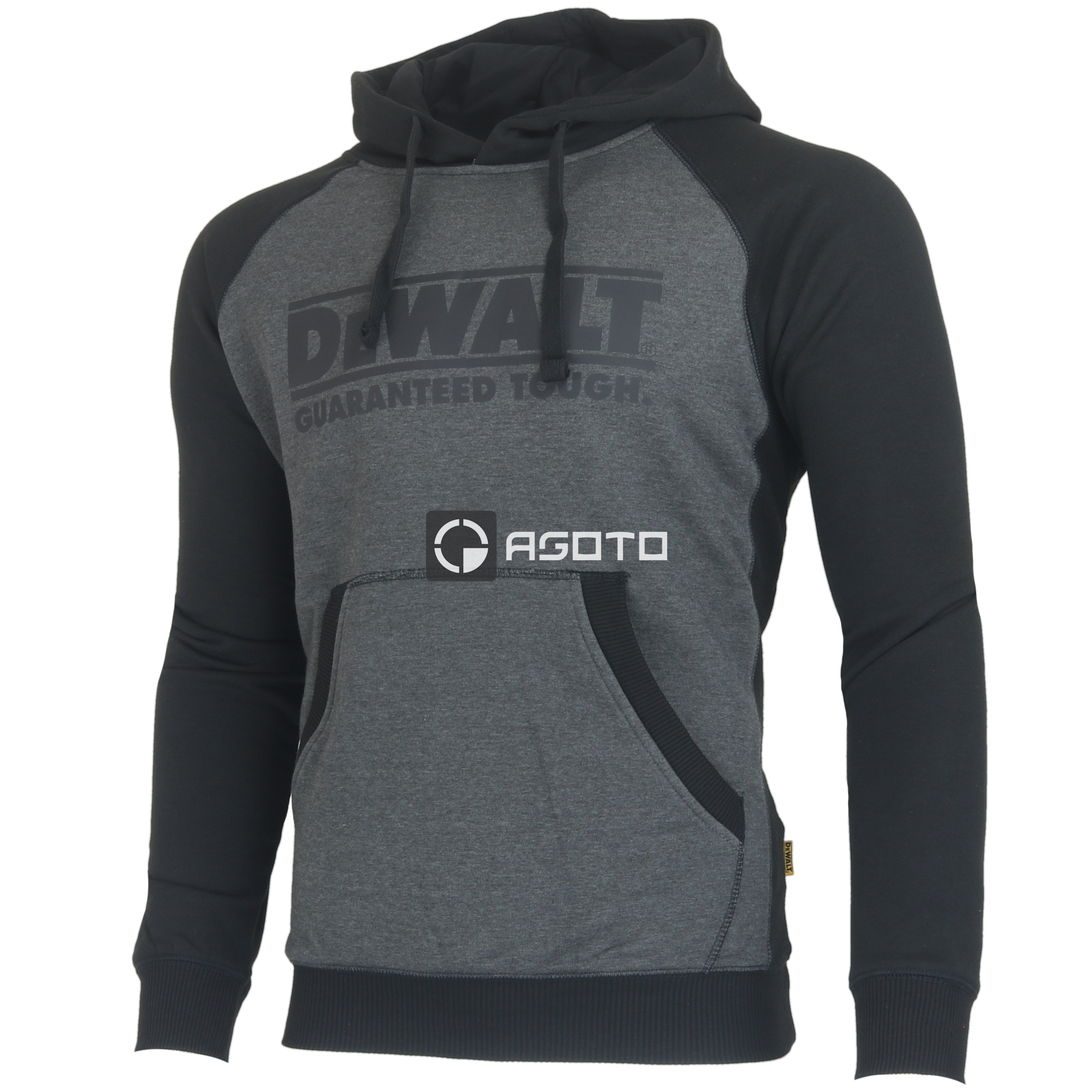 Szürke márga kapucnis pulcsi. Háromrészes motorháztető szerkezet lapos húzózsinórral. Elöl kenguru zseb. Oldalpanelek szellőzőnyílásokkal. Elöl nagy DeWalt logó. Logó a jobb karon. Egész évben használható pulóver nem csak munkára, hanem mindennapi viseletre is alkalmas a városban.