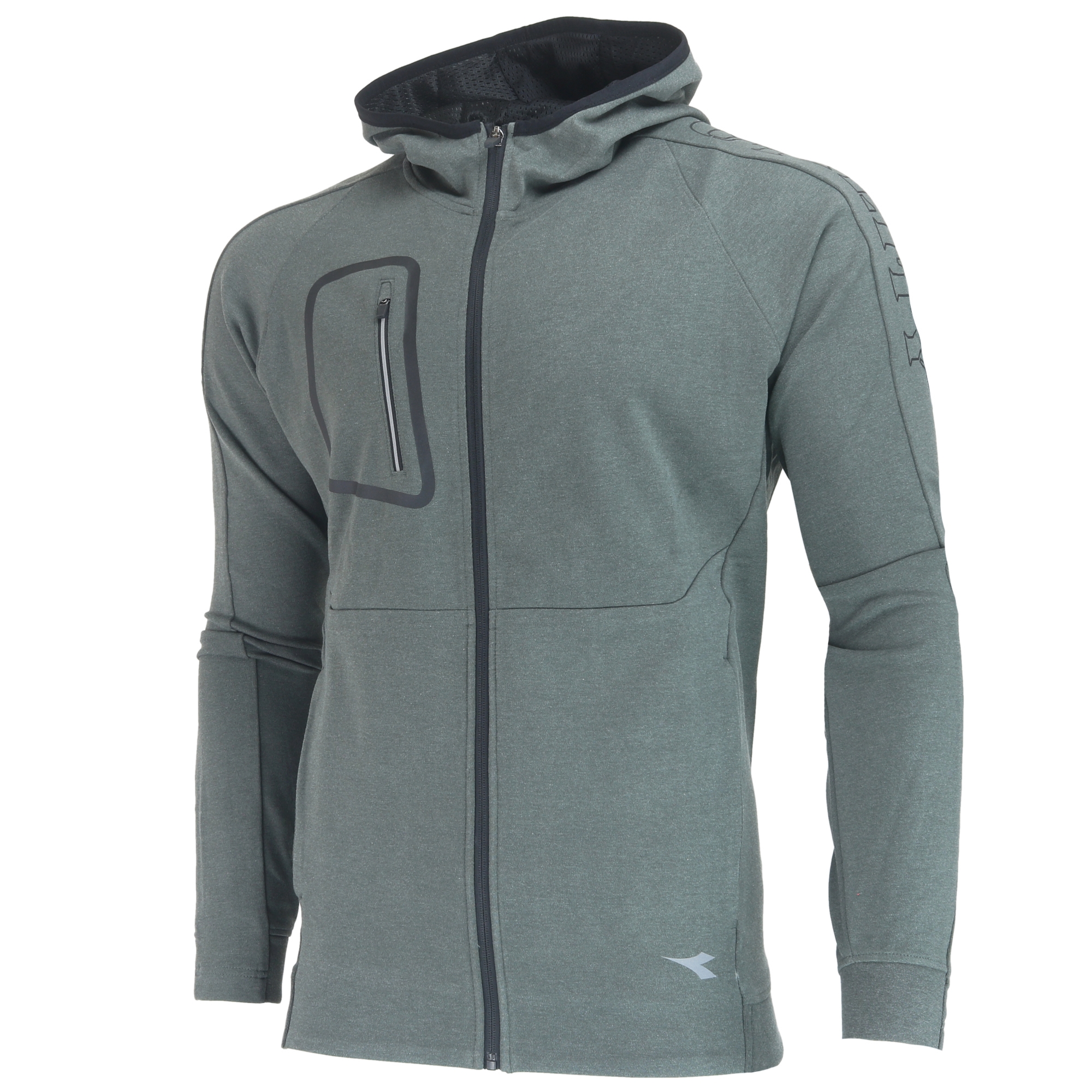 Nem csiszolt cipzáras pulóver fix kapucnival és hálós béléssel. Mellzseb cipzárral és két oldalzseb rejtett cipzárral. Részben bordázott mandzsetta és szegély. Ergonomikus ujj, redős könyökkel. Fényvisszaverő részletek és önzáró bütyökzár lehúzó. Interlock 55% pamut, 37% poliészter, 8% elasztán, 350 gr/m2