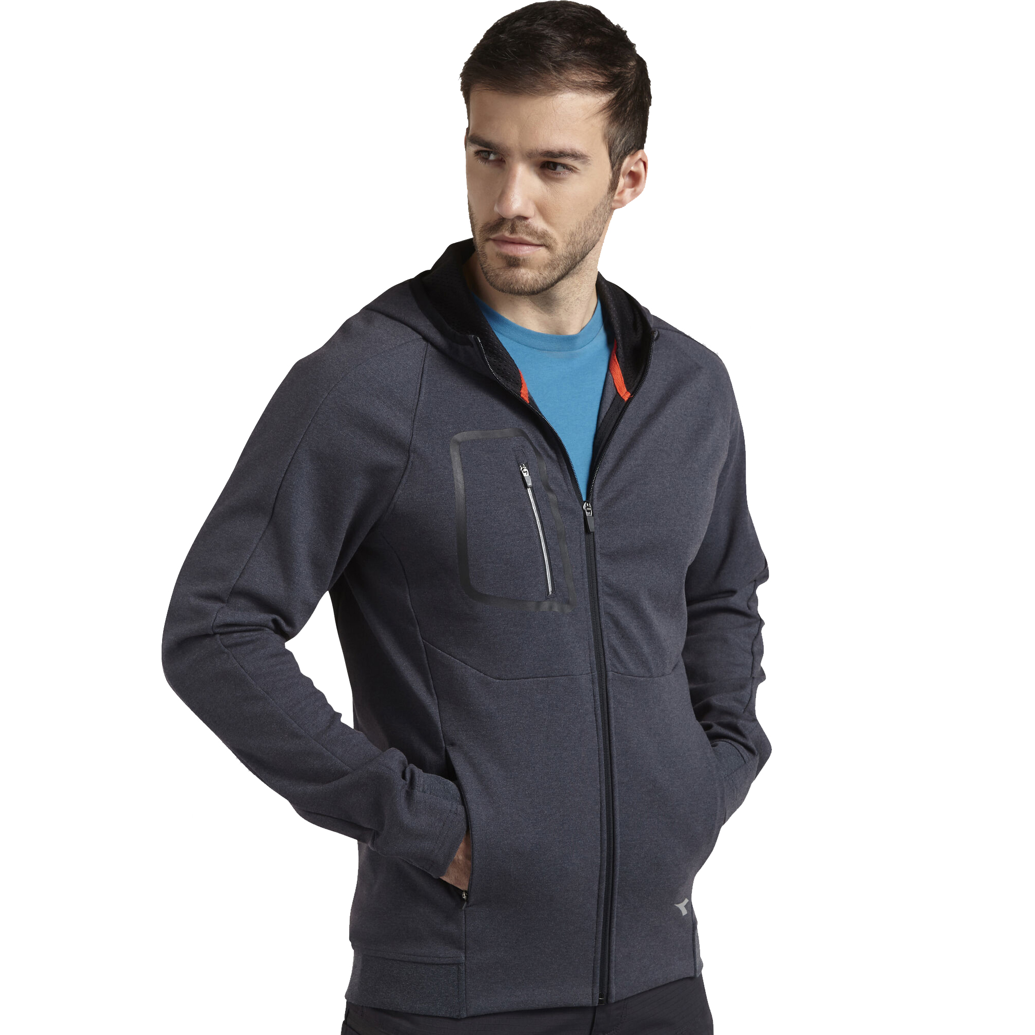 Nečesaná mikina/bunda na zip s pevnou kapucí a síťovanou podšívkou. Náprsní kapsa na zip a dvě boční kapsy na skrytý zip. Částečně žebrované manžety a spodní lem. Ergonomický rukáv s plisovaným loktem. Reflexní detaily a samosvorný stahovák vačkového zámku. Interlock 55% Bavlna, 37% Polyester, 8% Elastan, 350 gr/m2