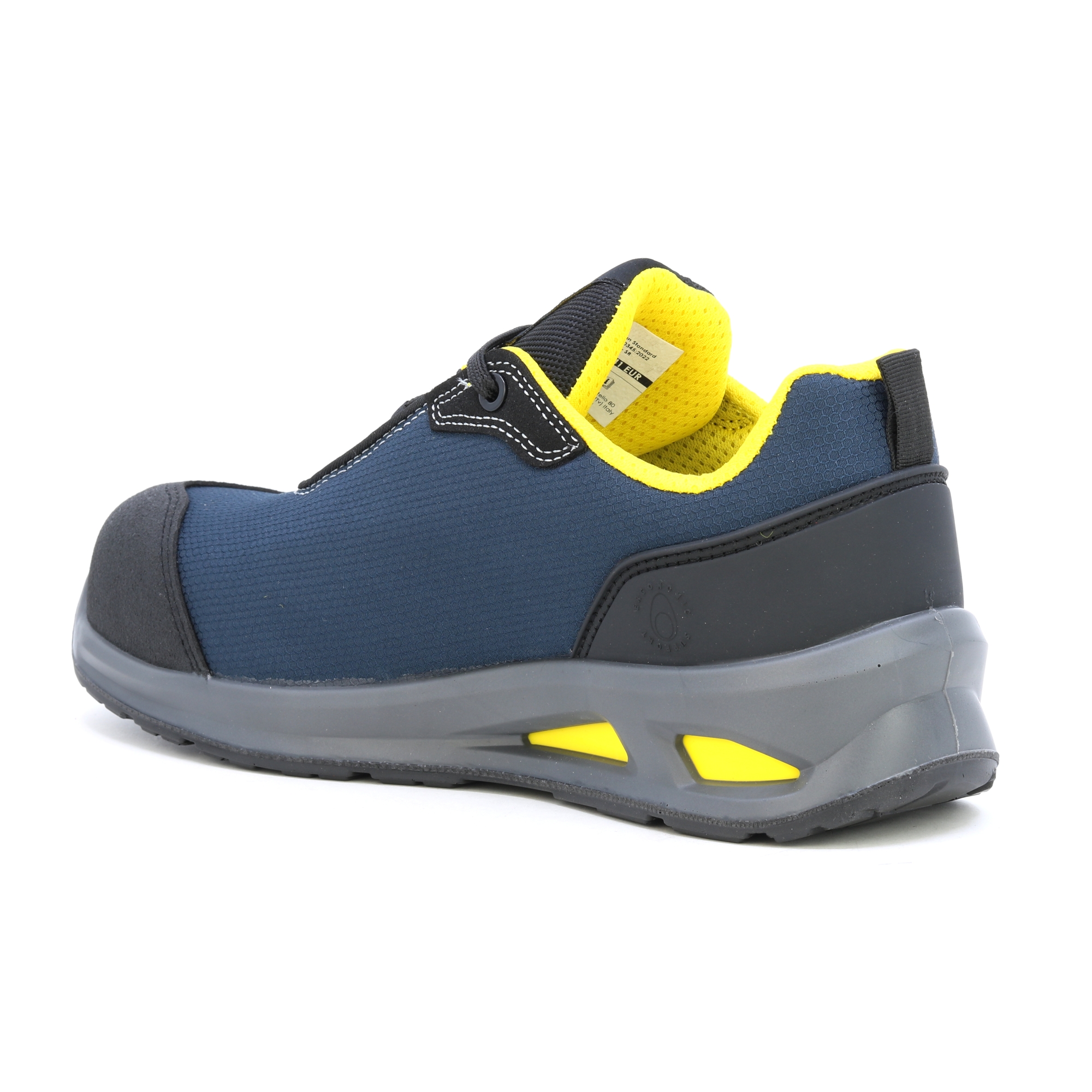 Nízká bezpečnostní obuv S1PL ze 100% polyesteru s technologií tlumení SOFTBOX. 200J vícevrstvá tužinka. Šířka 11. 100% polyesterová podšívka s protiskluzovou vložkou z mikrovlákna. Vyjímatelná stélka z PU pěny a polyesteru. TPU patní miska. ESD a bez kovů.