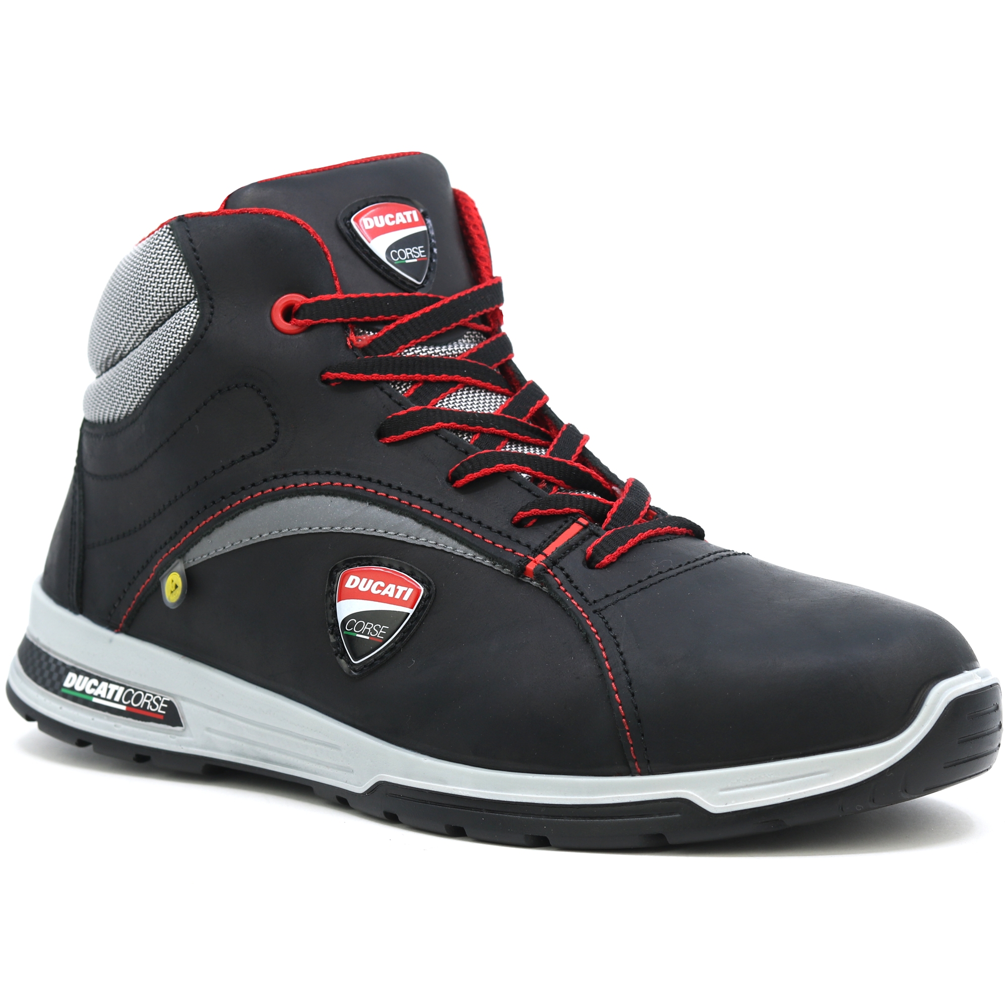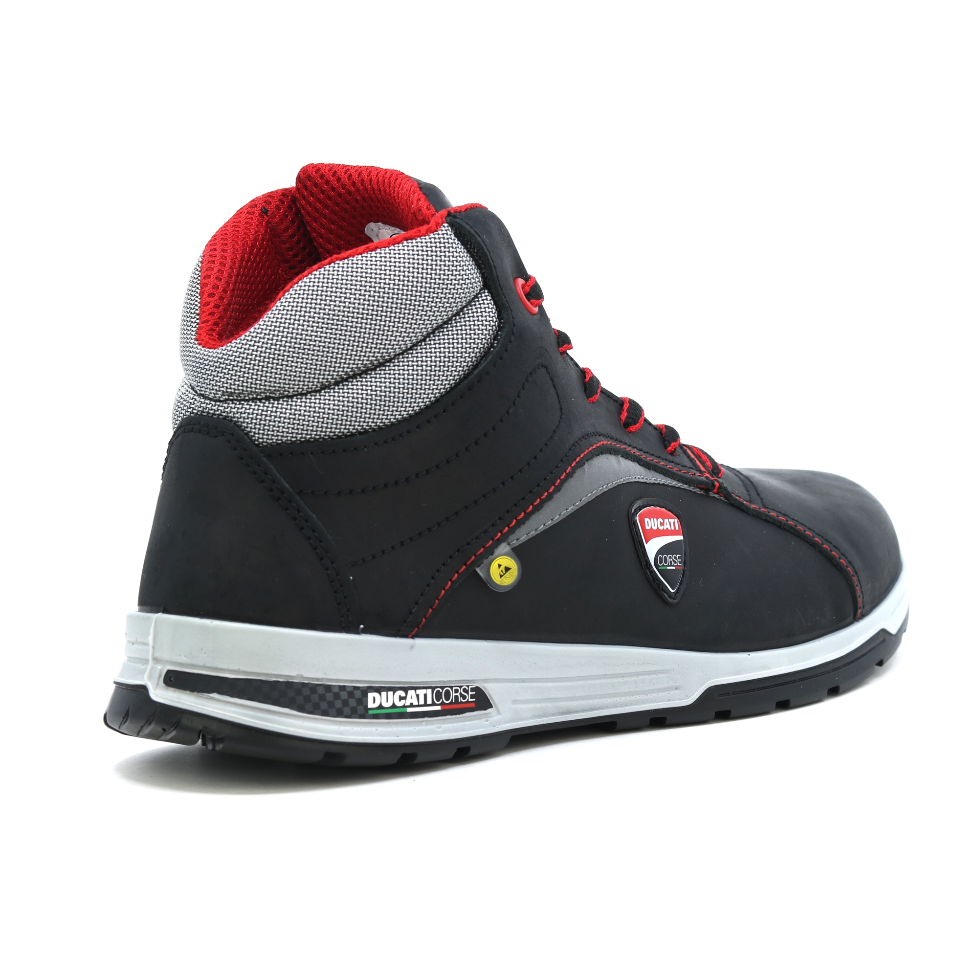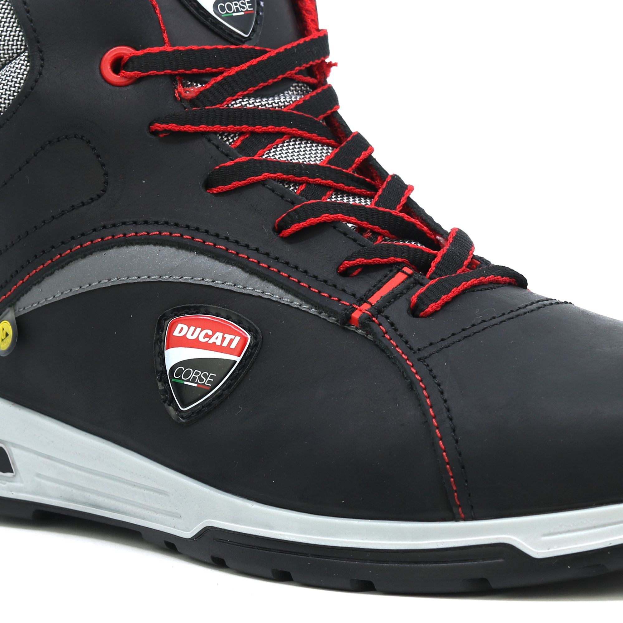 Z desetiletí zkušeností inženýrů Ducati a FTG se zrodila bota Assen S3, která je vhodná jak pro ty, kteří běhají, tak pro ty, kteří pracují, to proto, že jsou vyrobeny podle nejvyšších standardů kvality a vždy kladou na první místo bezpečnost chodidla. Výběr nejlepší a nejrobustnější kůže zaručuje atraktivní linii a dává botě dlouhou životnost a odolnost. Používání nejmodernějších technologií, vždy v souladu s přísnými standardy kvality MADE IN ITALY, zaručuje pohodlí a stabilitu, kterou by měla mít každá bota během chůze nebo dlouhé doby stání. Fit 12 mondopoint například ponechává větší prostor ke špičce chodidla zatímco podešev má 4 různé strukturální zóny, každá s odlišnou hustotou, aby byla zajištěna tuhost, flexibilita, tlumení nárazů a další. Stélka s duální hustotou Sport Lite má houževnatou konzistenci a eliminuje otřesy při nejnáročnějších dopadech na zem, je také certifikovanou ESD a jediným, což zajišťuje eliminaci statické elektřiny nahromaděné tělem. EN ISO 20345 - BEZPEČNOSTNÍ OBUV