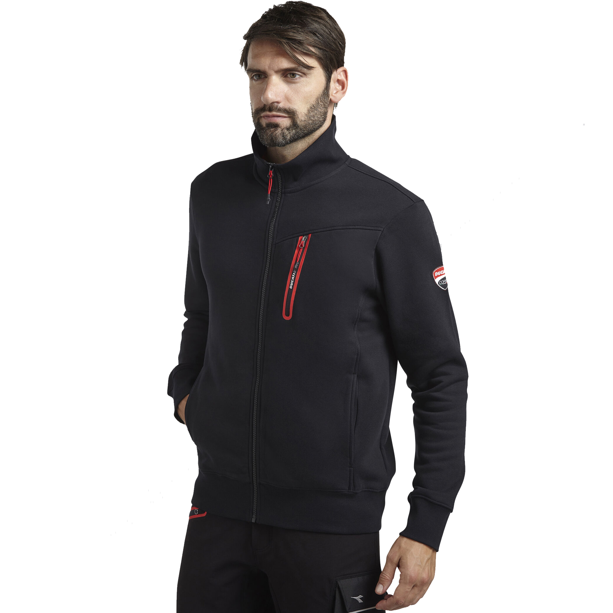 DUCATI pulóver fésült belsővel. Elülső cipzár kontrasztos húzással és termikusan ragasztott mellkasi cipzár DUCATI CORSE részletekkel. Ergonomikus szabású, szabályos szabású Anyaga: szálcsiszolt gyapjú: 80% pamut, 20% poliészter, 280 g/m2.