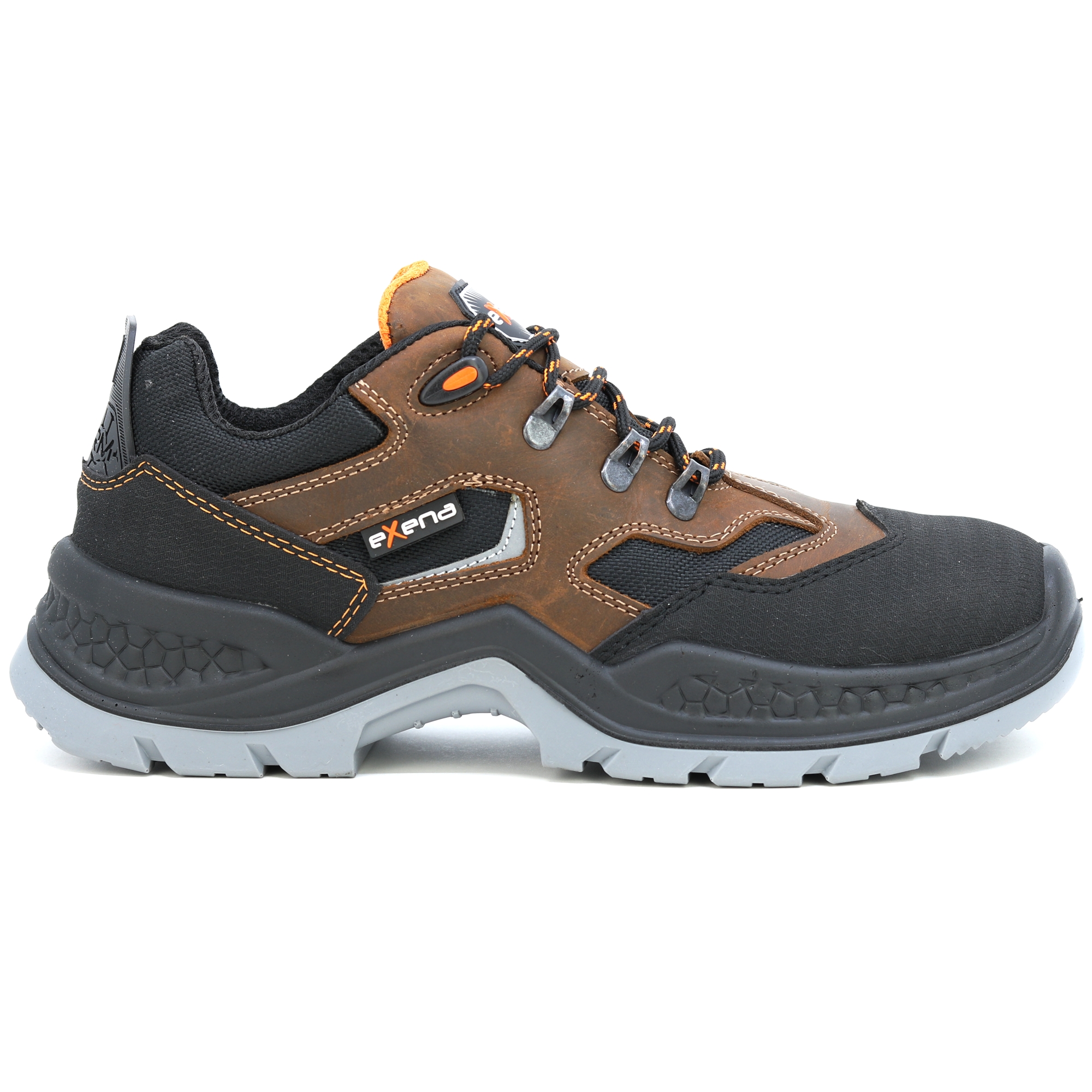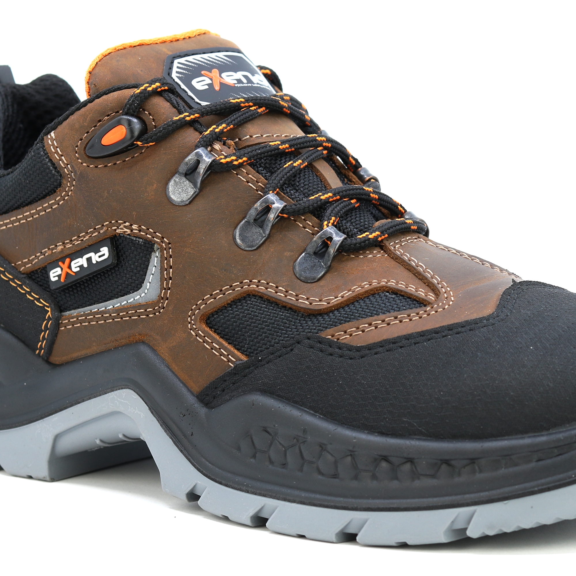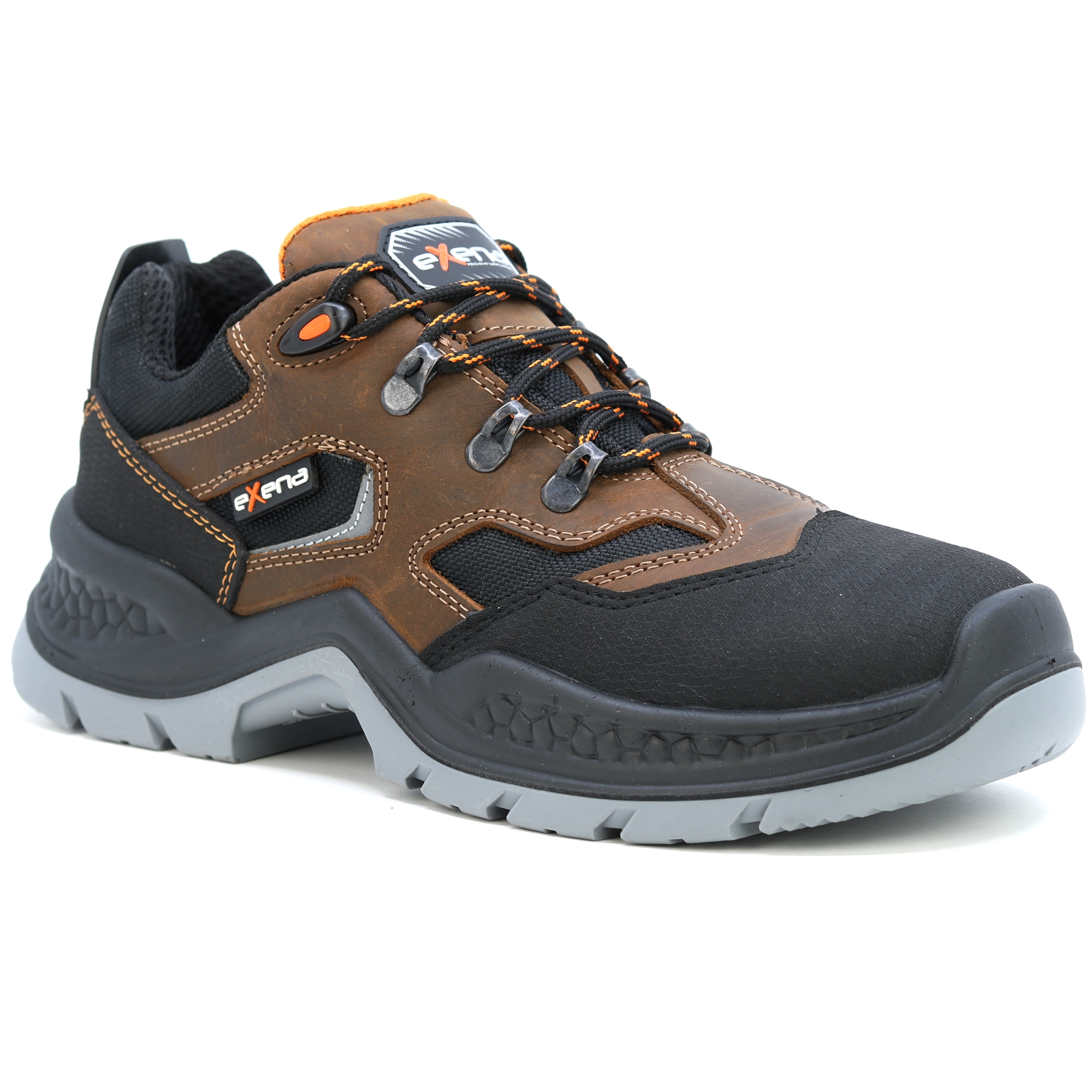 Kožené pracovní boty italské značky Exena se stupněm ochrany S3 jsou navrženy tak, aby vyhověly nejpřísnějším požadavkům kladeným na pracovní obuv. Špička obuvi obsahuje kompozitovou tužinku s kevlarovou stélkou pro účinnou ochranu proti mechanickému nárazu. Výhodou kompozitové tužinky je vlastnost, která zabraňuje přehřívání v letních měsících a zároveň vede k udržení tepelného komfortu při chladných dnech. Svršek boty je vyroben z kvalitní lícové usně. Vnitřek obuvi je opatřen prodyšnou textilií, která umožňuje noze volně dýchat při vysoké pracovní zátěži. Podrážka je vyrobena z antistatického a olejivzdorného materiálu. Pracovní obuv Exena udělá radost zákazníkům hledajícím u obuvi zejména kvalitu a pohodlí. EN ISO 20345 - BEZPEČNOSTNÍ OBUV