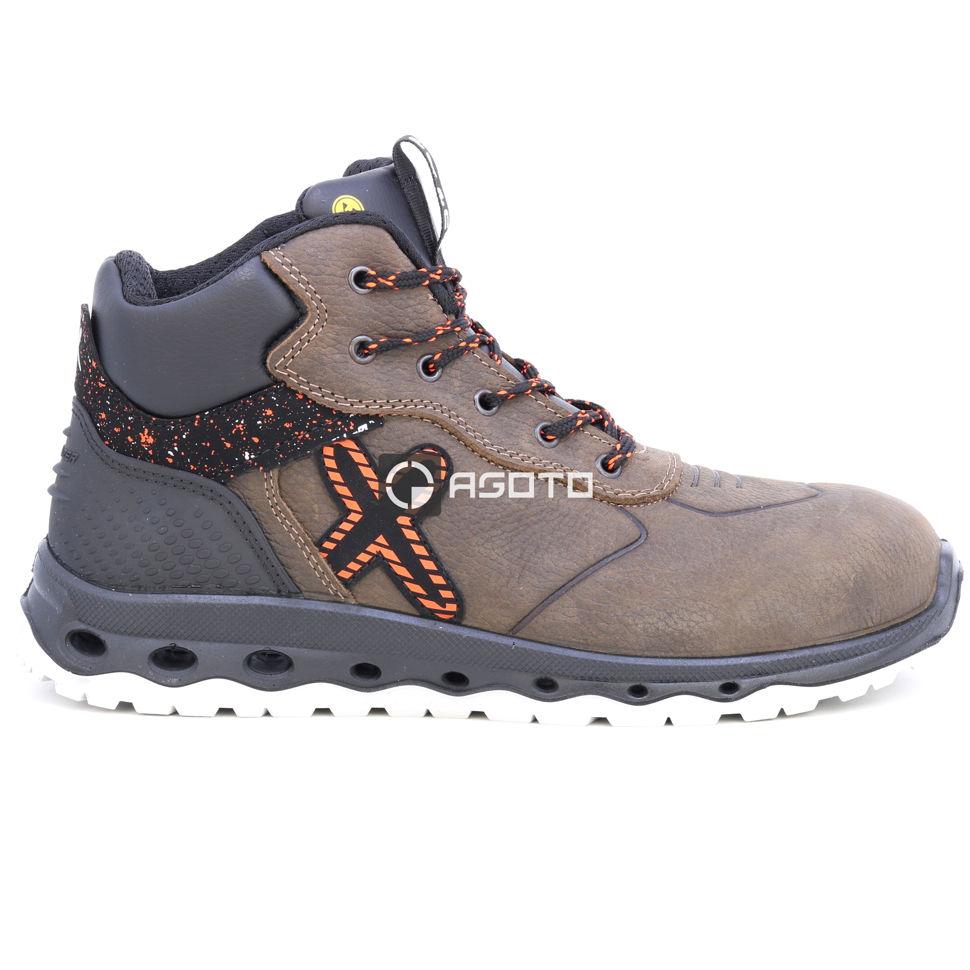 URANUS S3 ESD SRC antisztatikus magas csizma légáteresztő felsőrésszel, puha, vízlepergető teljes kiőrlésű bőrből, kopásálló, lélegző szintetikus szövet béléssel, 200 J ütésálló alumínium orrvédővel, ESD disszipatív csizma, ásványi anyagoknak ellenálló olajok. 2D PU talp, SRC csúszásgátló, ütésálló, légáteresztő, antibakteriális és könnyű ENERGY talpbetét puha többrétegű poliuretánból, amelyet a sarok területén lévő buborék jellemez, amely folyamatos energiavisszaadást biztosít. Kivehető, anatómiai és antisztatikus. Cut Natural Comfort 11 Mondopoint. Az URANUS cipő a "Gravity 0 - Infinite energy return" sorozat része. TECHNOLÓGIA: FELSŐ HÁLÓ: Ultra tartós, lélegző bélés. Széles vágású alumínium orr, ultrakönnyű és több mint 200 J-nek ellenáll. SAFEFLEX CONDUCTIVE: Perforációgátló szintetikus középtalp 1100 N-ig ellenálló vezetőképes lábbelihez. 2D AIR-HOLE: STABILIZÁTOR talp: Merev TPU szerkezetének köszönhetően véd a sarok a véletlen ütésektől, így a láb jobban irányítható még a hirtelen oldalirányú mozgások során is, és stabilan és biztonságosan tartja a bokát.