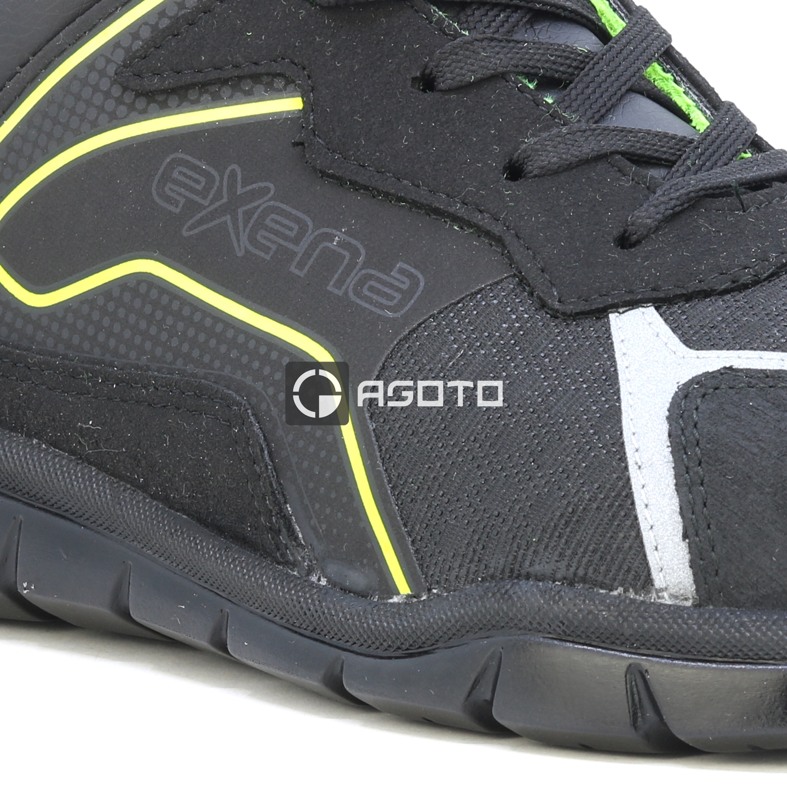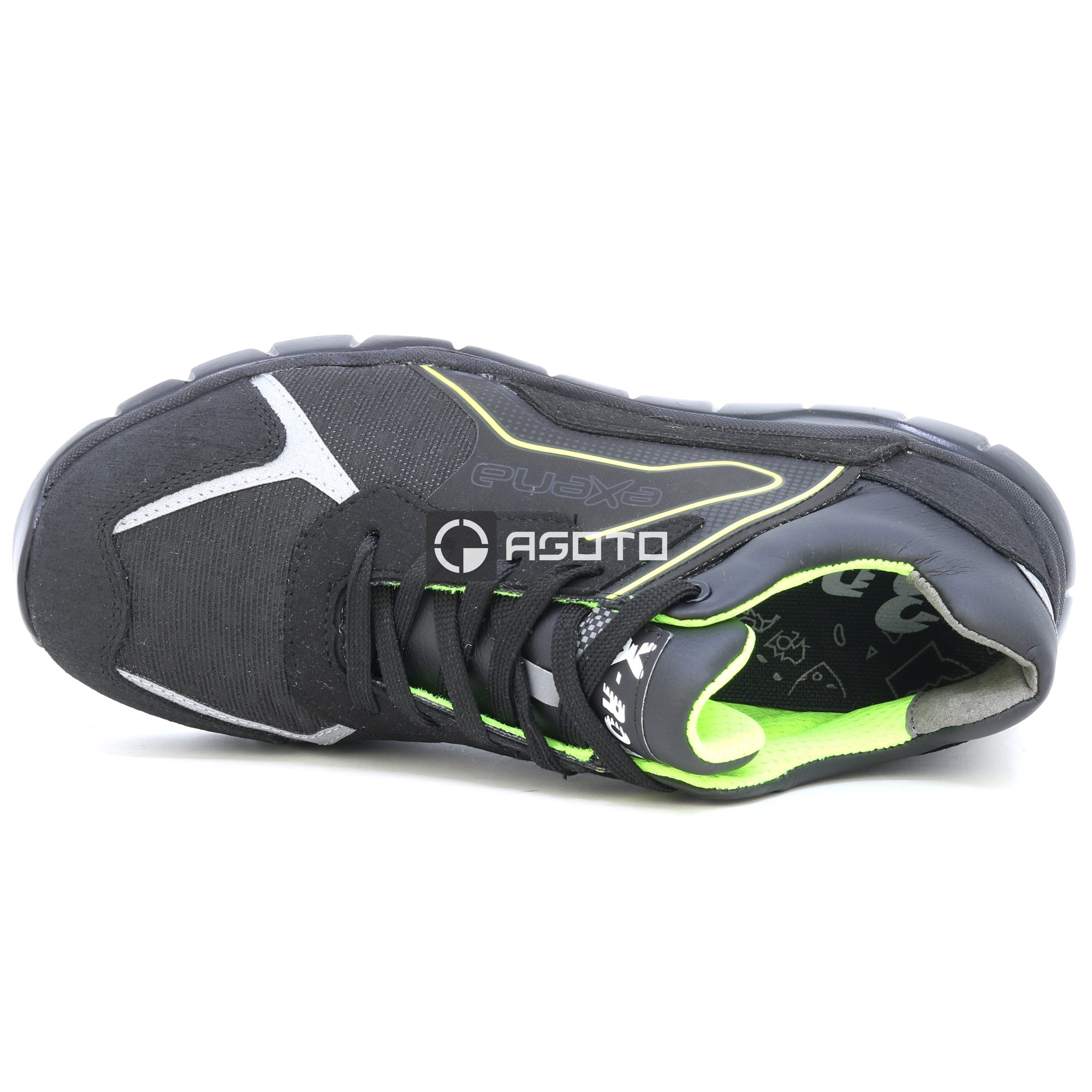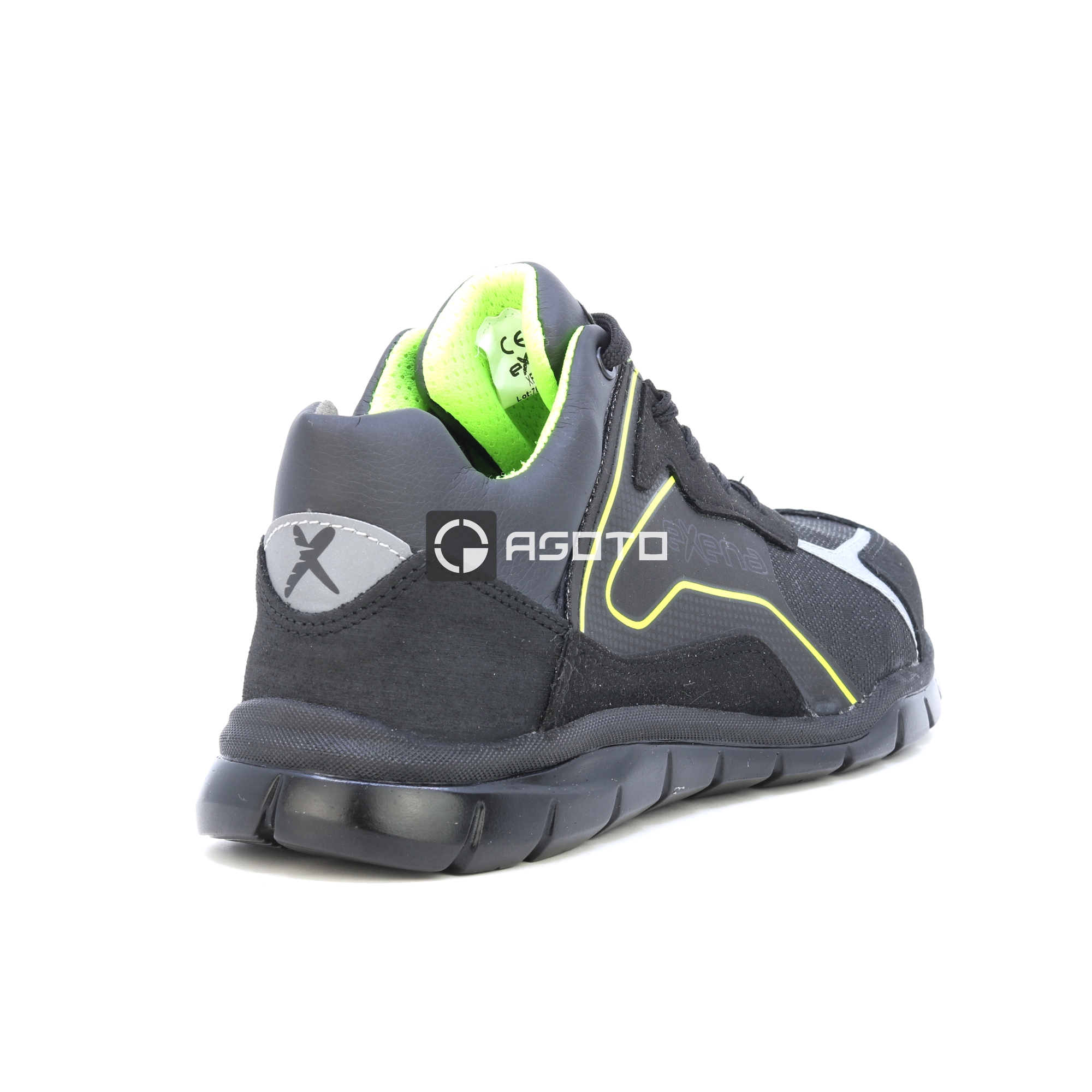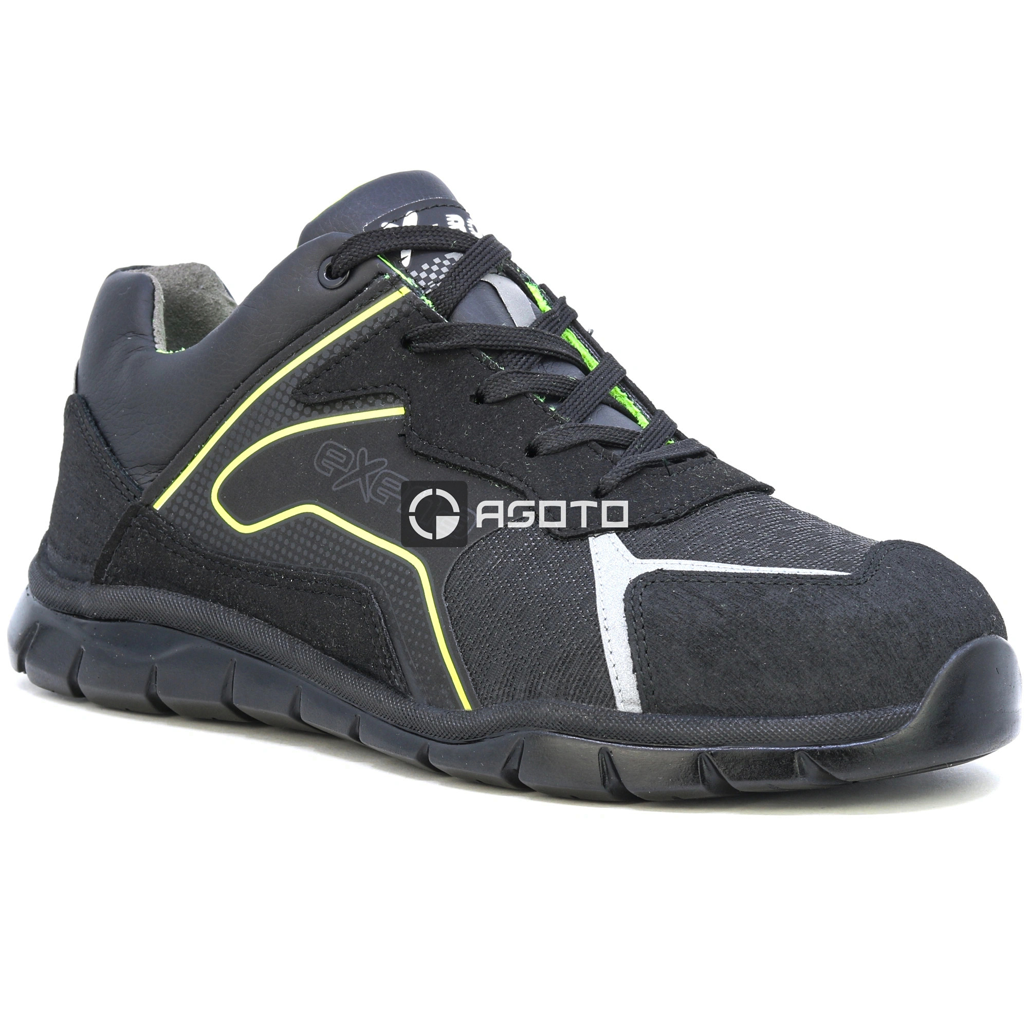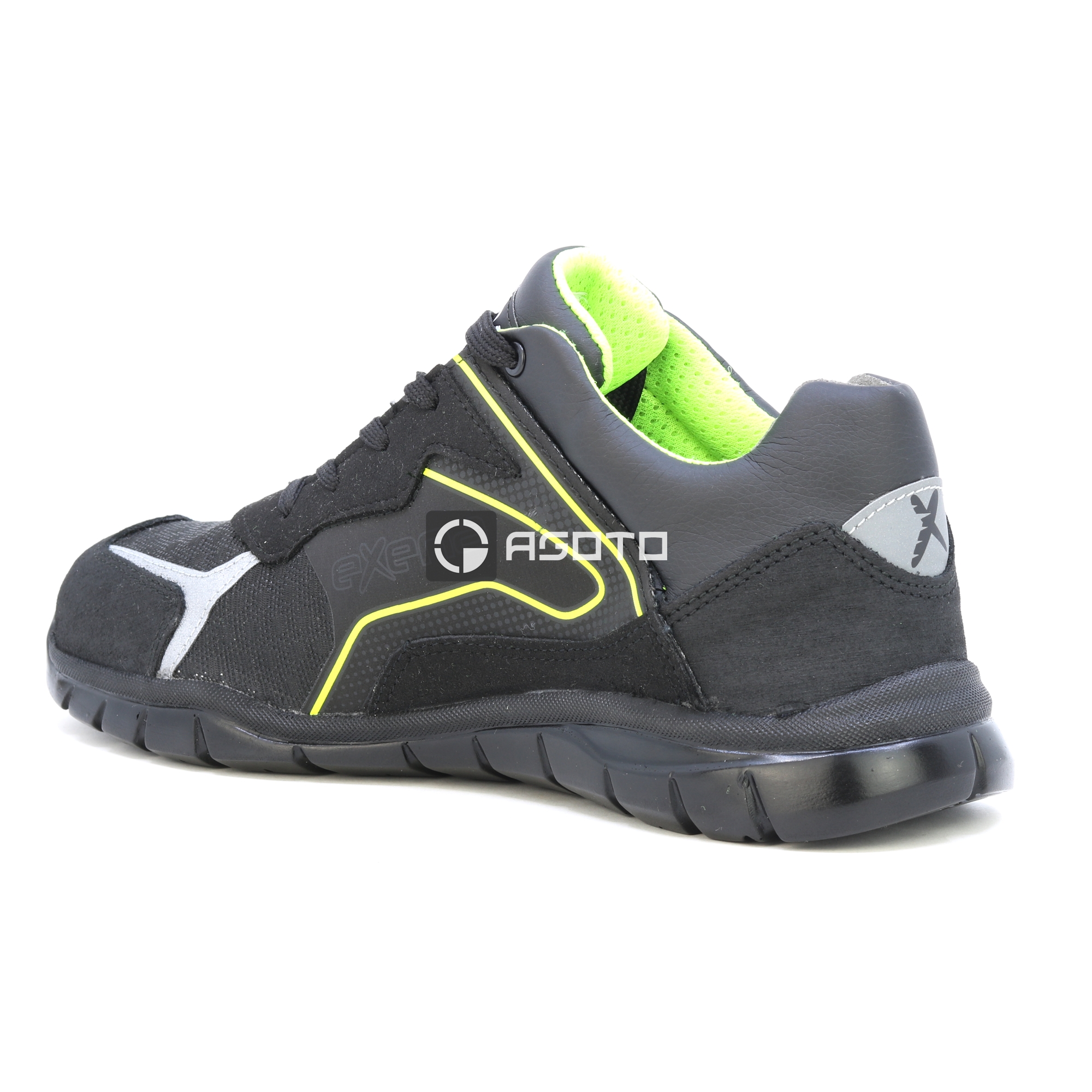 Az Exena X-Road egy új sorozat, amelyet a versenyabroncsok világa ihletett, és készen áll arra, hogy egyetlen stíluskoncepcióban garantálja a magas színvonalú minőséget, biztonságot és kényelmet. Az XR90_Plaza munkacipő rendkívül tartós Hidro anyagból készült, a bélés lélegző szintetikus, kopásálló anyagból készült. Jellemzők: Nem fémes, nem mágneses, 200 J. Perforációgátló: "Zero" perforációs szövet. Talpbetét: többrétegű EVA, kivehető, anatómiai, antisztatikus. Talp: nagy sűrűségű PPU; csúszásgátló SRC. Mondopoint®: Természetes kényelem 11