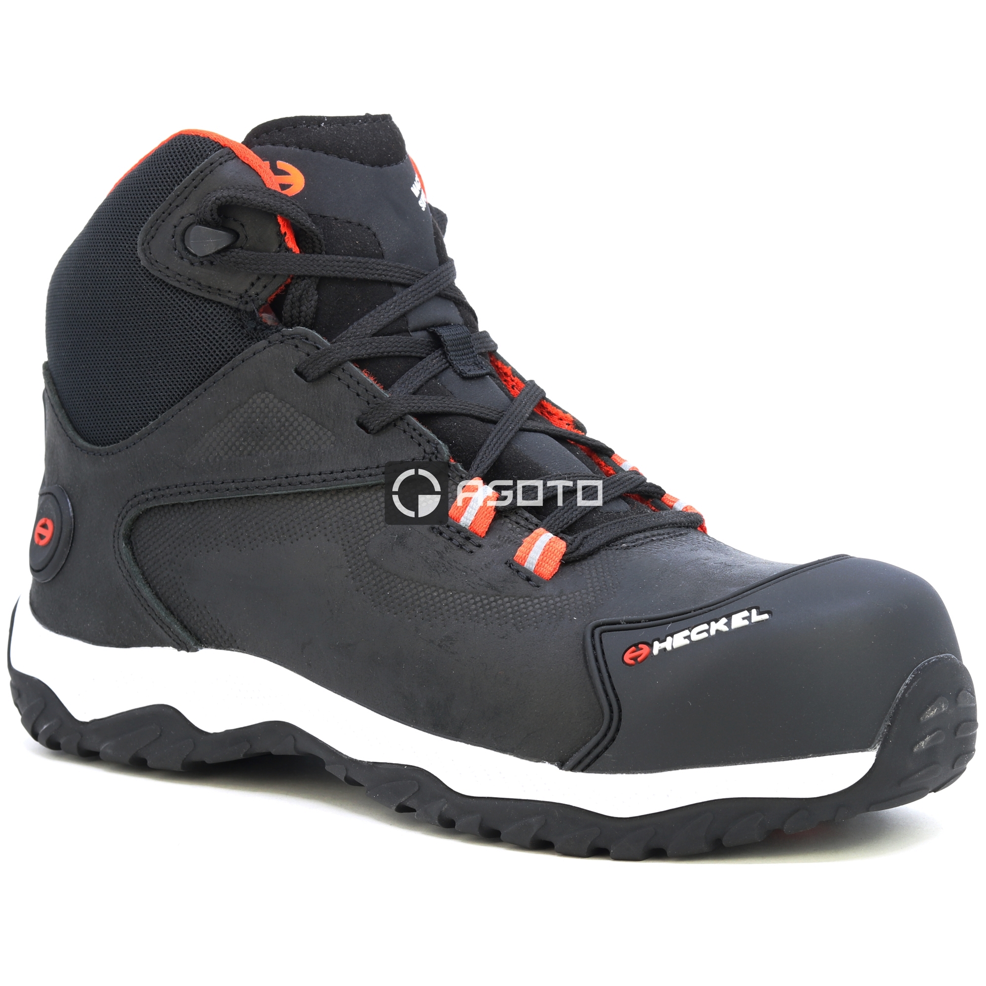 A Heckel MS 300 S3 egy rendkívül tartós biztonsági cipő, amely minden körülményre alkalmas a megbízható védelem érdekében, egyszerűen mindent megtesz! MACSOLE® ADVENTURE 3.0 gumitalp MACABSORB EVA-val a láb elülső részén és a sarokban a nagyobb rugalmasság és a jobb párnázás érdekében | kiváló tapadási szint (SRC) | ellenáll az olajoknak, szénhidrogéneknek és vegyszereknek | antisztatikus | érintkezési hőállóság 300°C-ig (HRO) | talpprofil ergonomikus formákkal a mozgásszabadság jobb megfigyelése érdekében | terepprofil mély futófelülettel a jobb tapadás érdekében | gumi záródású vízálló teljes bőr felsőrész | megerősített sarok és oldalak. Agilis alsó védőburkolat a jobb stabilitás és bokavédelem érdekében, miközben megőrzi a nagy mozgásszabadságot. 3D hálós bélés a jobb szellőzés érdekében | gyorsan száradó, varrott nyelv szintetikus és vízálló anyaggal, amely távol tartja a szennyeződést és a folyadékot a cipőből | hurok a nyelv rögzítéséhez, rugalmas és kompakt hab párnázás a jobb kényelem és védelem érdekében a boka és az Achilles-ín zónái körül. Cukorka fém nélkül | könnyebb az acélnál | kevesebb hőt és hideget vezet, mint a fém hegy. Szúrásálló, fémmentes középtalp. | könnyű és rugalmas | kevesebb hőt és hideget vezet, mint a fémtalp | kivehető talpbetét 100%-ban védi a lábfelületet | anatómiai formájú elülső és saroklengéscsillapítókkal | mikroszálas felső réteg a jobb kopásállóság és a nagyon magas nedvességfelvétel érdekében | alsó réteg nyitott cellás hab nagy ütéselnyelő és légáteresztő képességgel.