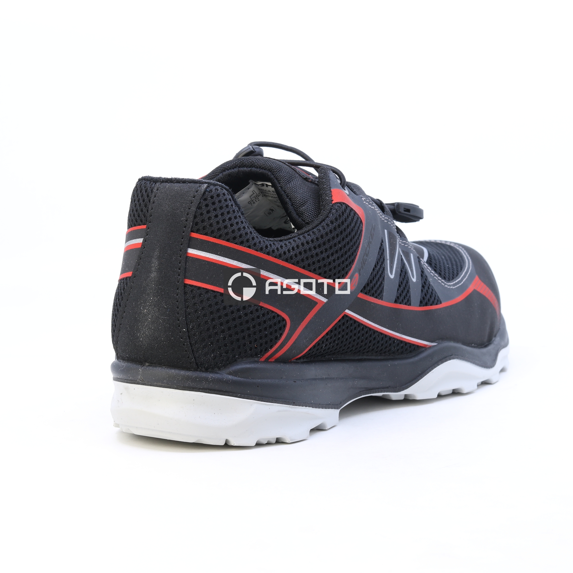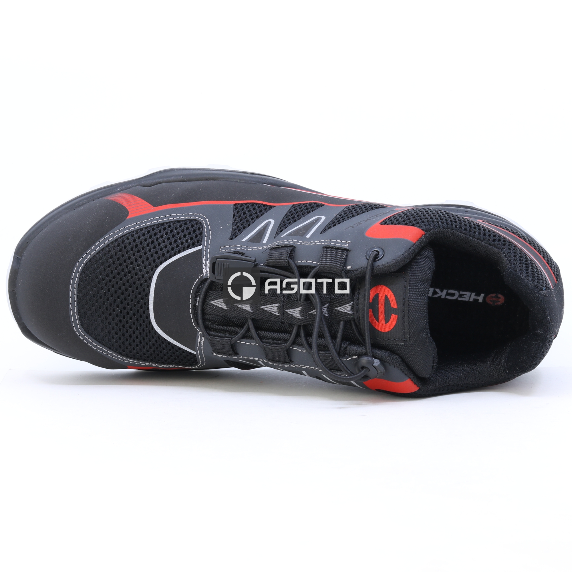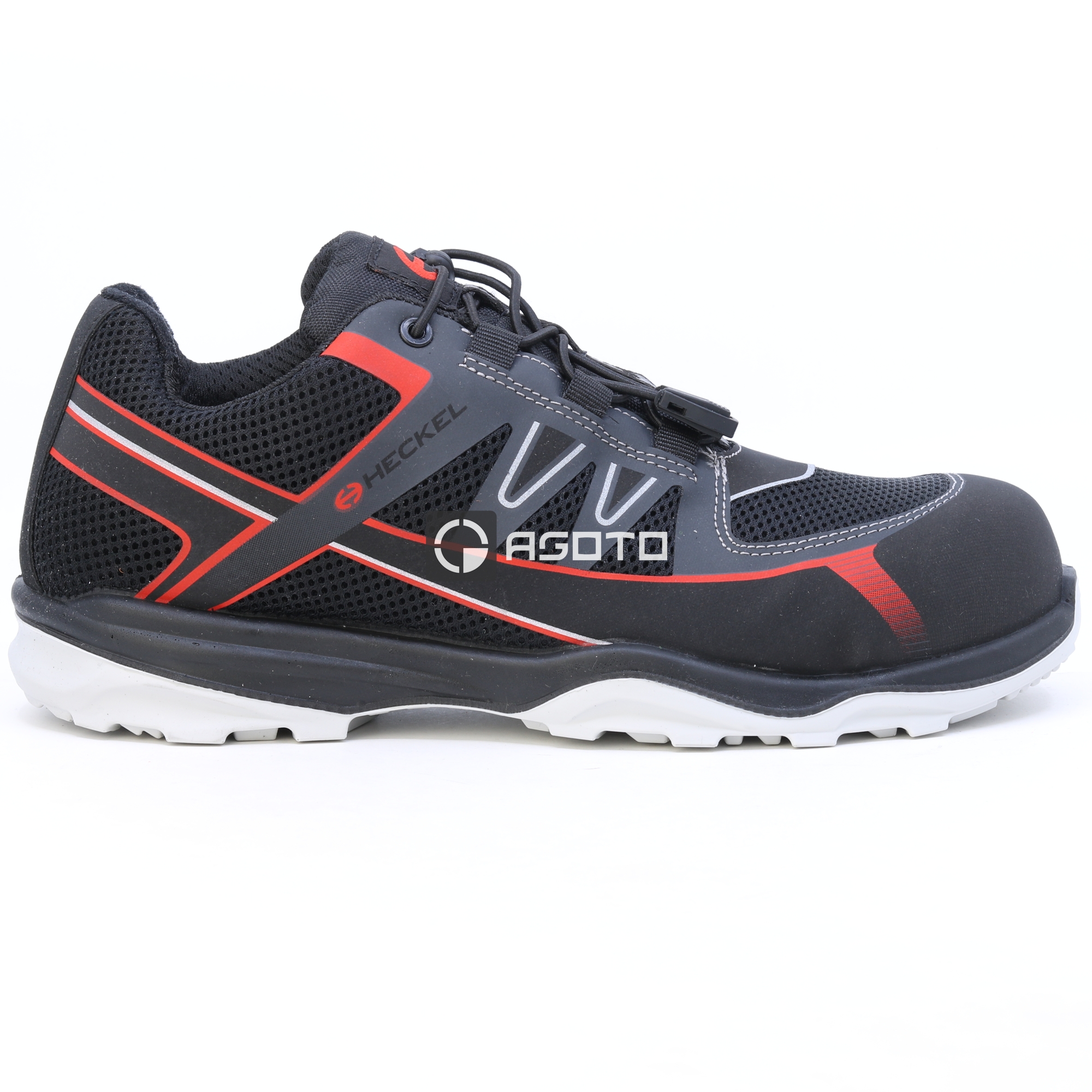 Teljesen légáteresztő biztonsági cipő Heckel RUN-R 100 egy fémmentes modell könnyűipari, raktározási és logisztikai, gyártási célokra. PU2D talpa nagyon könnyű, rendkívül rugalmas, kiváló ütéselnyelést biztosít, kiváló tapadási szintje (SRC), olaj-, szénhidrogén- és vegyszerállósága, valamint a sarok hátulján lévő barázdák a jobb tapadás érdekében, amikor a sarok először ütközik. a talaj, és mély barázdák a jobb tapadás érdekében a cipő elülső részének területén. Nem fém védő TOECAP. Áthatolásálló, nem fémből készült talp. 100%-ban fémmentes
