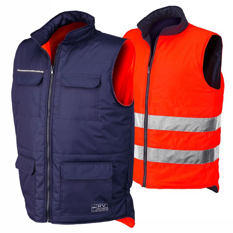 Oboustranná reflexní vesta Reverse je praktickým „společníkem na cestách“ pro všechny, kteří se pohybují nebo pracují na silnici: Pokud ji obléknete z jedné strany, zaručuje viditelnost, zatímco při nošení z druhé strany poskytuje střídmý a sportovní vzhled. Vlastnosti: Oboustranná vesta se čtyřmi kapsami aplikovanými na modré straně a kapsou na mobil na oranžové straně s vysokou viditelností. Toto oblečení vyhovuje normě EN471 Materiál: 100% polyester.