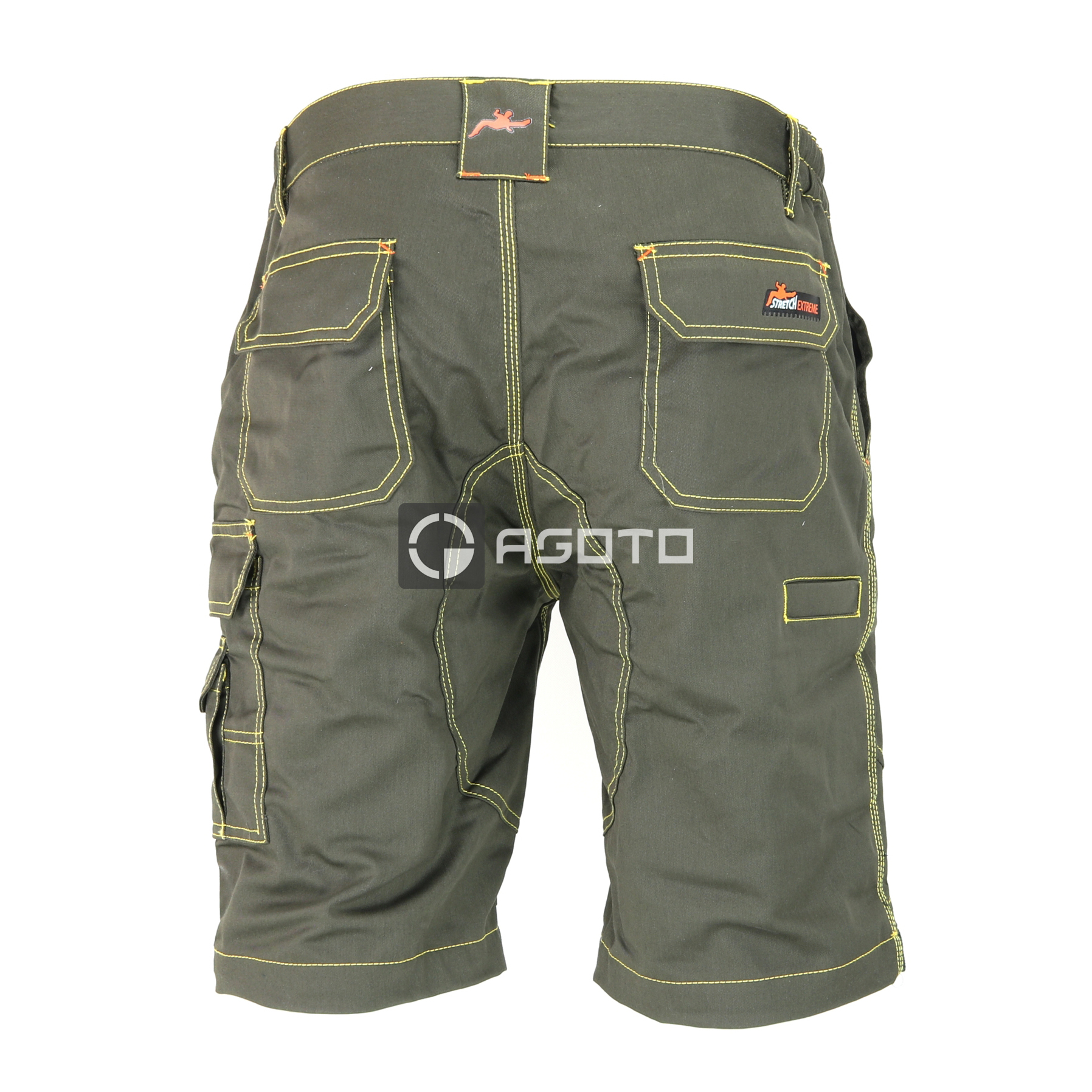Technikai bermuda rövidnadrág kopásgátló textilbetétekkel, csövekkel és rugalmas anyaggal; A termék kényelmet nyújt, ugyanakkor ugyanolyan illeszkedést biztosít, mint a sportvilág nadrágja. 9 zsebe van, köztük egy mobiltelefon tartó. A háromszoros varrás és a különösen strapabíró szövet kiváló tartósságot garantál még a legkeményebb munkák során is. Összetétel: 260 g / m2 - 65% poli / 32% pamut / 3% spandex
