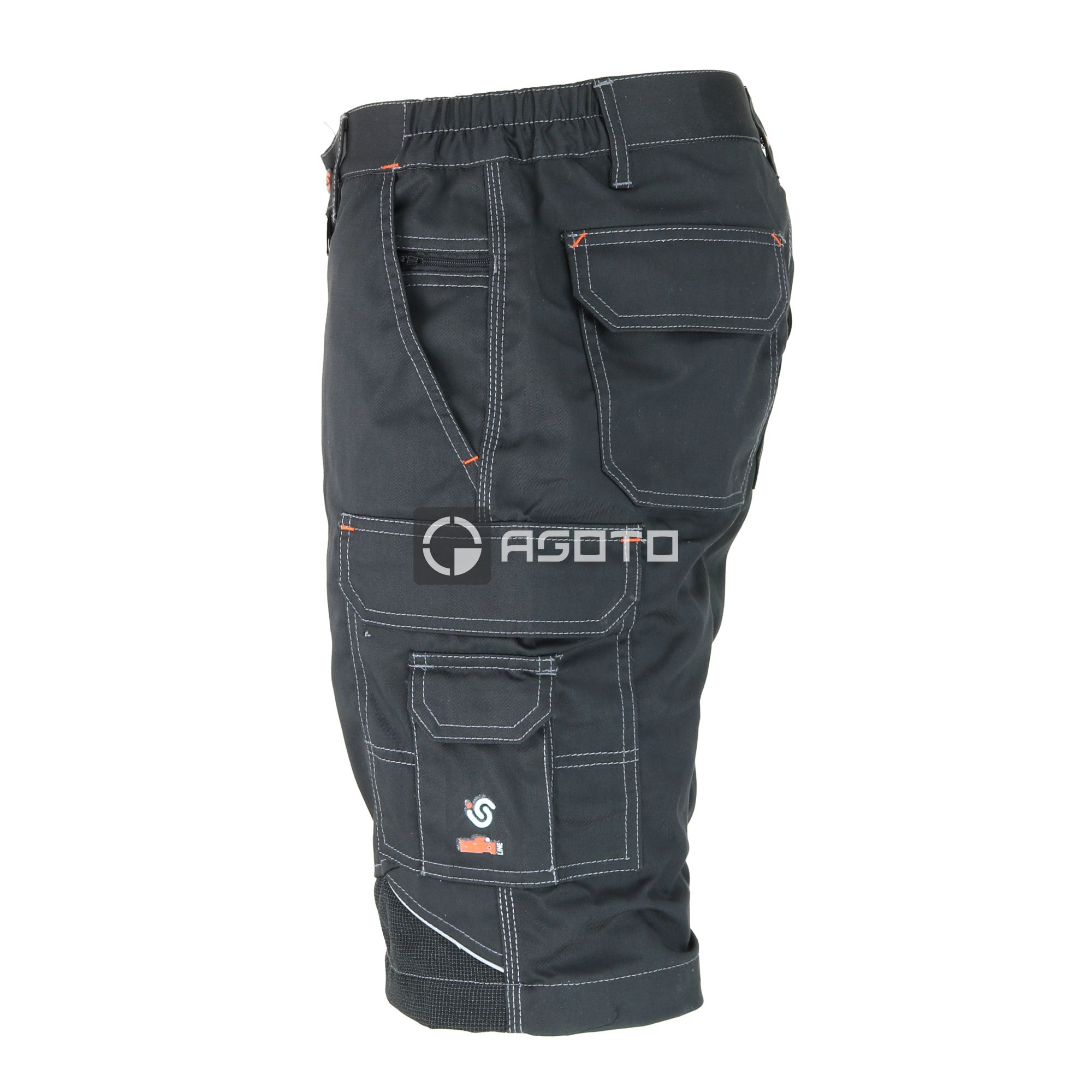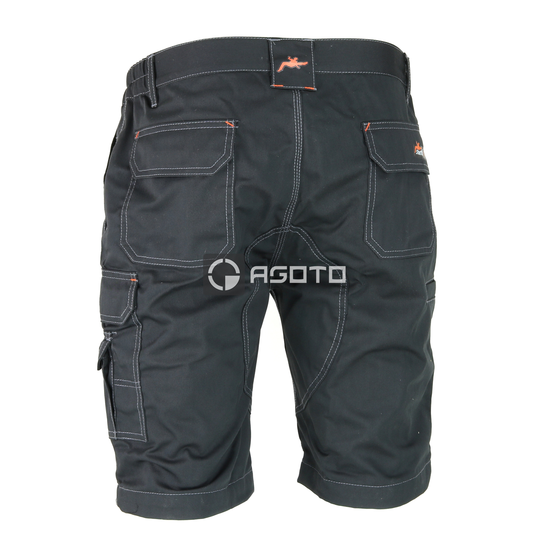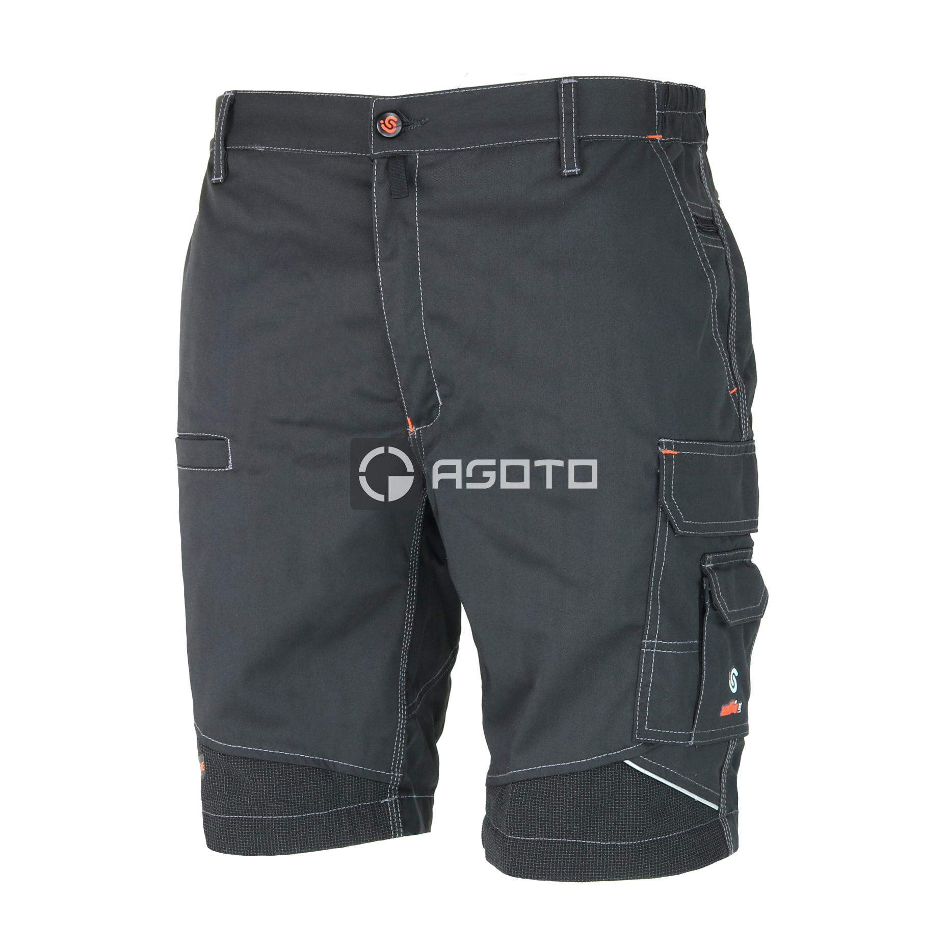 Technikai bermuda rövidnadrág kopásgátló textilbetétekkel, csövekkel és rugalmas anyaggal; A termék kényelmet nyújt, ugyanakkor ugyanolyan illeszkedést biztosít, mint a sportvilág nadrágja. 9 zsebe van, köztük egy mobiltelefon tartó. A háromszoros varrás és a különösen strapabíró szövet kiváló tartósságot garantál még a legkeményebb munkák során is. Összetétel: 260 g / m2 - 65% poli / 32% pamut / 3% spandex