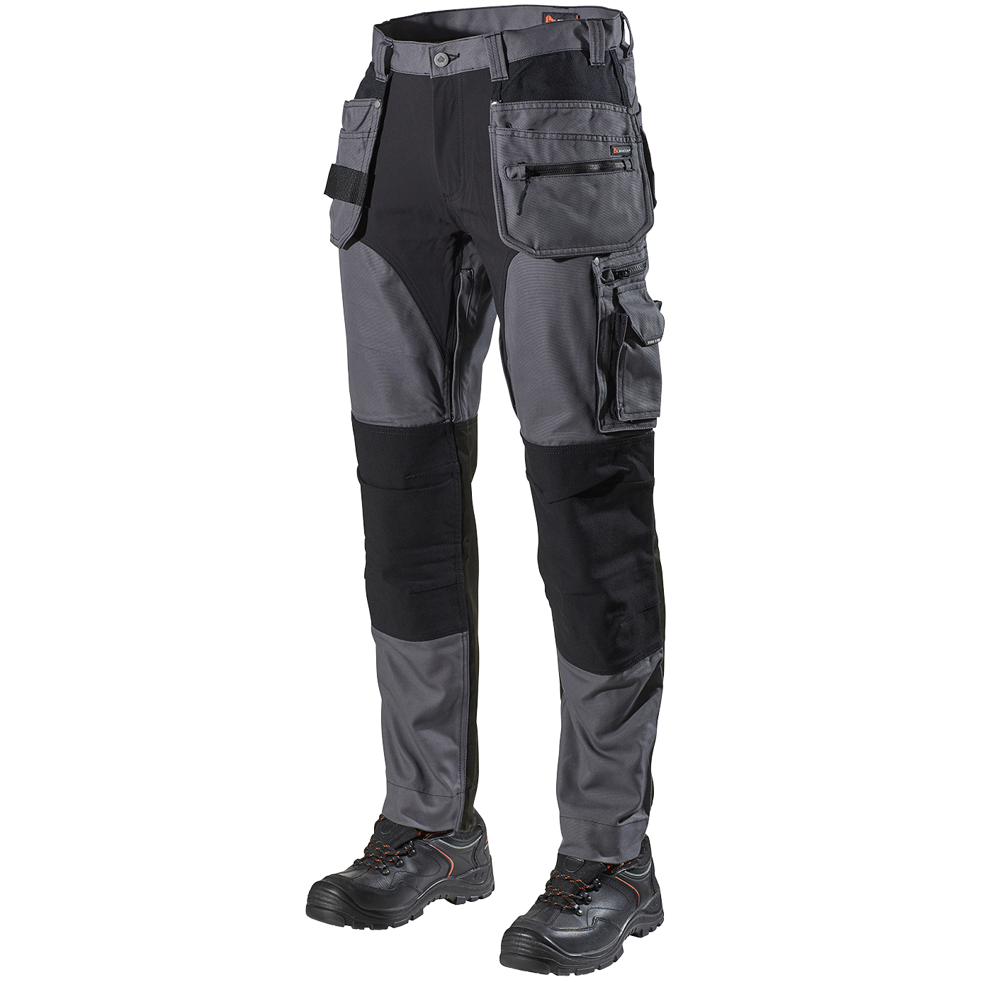 Elastikus anyag az elülső részen, az első térdnél és az egész vádlinál kiváló mozgékonyság, kényelem és légáteresztő képesség érdekében. Előre formázott térd a jobb illeszkedés és rugalmasság érdekében. Stretch kevlarból erősített térdvédő zsebek jó mozgékonyságot és tartósságot biztosítanak. Kissé beszűkülő nadrágszárak, hogy jobban a helyén maradjanak. A nadrág szárvége 5 cm-rel meghosszabbítható. Precíz illesztés, sziluett és derék, hogy a nadrág a helyén maradjon, még hosszú műszakok alatt is. Erősített függőleges zsebek nagyobb kapacitással. Szellőzés a comb belső részén, cipzárral állítható, hálós bélés a viselőt hűvösen tartja. Bal lábszáron dőlt szögben elhelyezett telefonzseb mágneszárral, amely védi és a helyén tartja a telefont. Zsebek és tartók: két függőleges zseb, négy előzseb, két hátsó zseb. Térdvédő zseb két magasságban, zseb zavinovacím mérővel, lábszári zseb cipzárral és belső és külső telefonzsebbel, valamint azonosítókártya-tartó a jobb függőleges zsebben. Anyag és súly: 65% poliészter, 35% pamut. 325 g/m2.