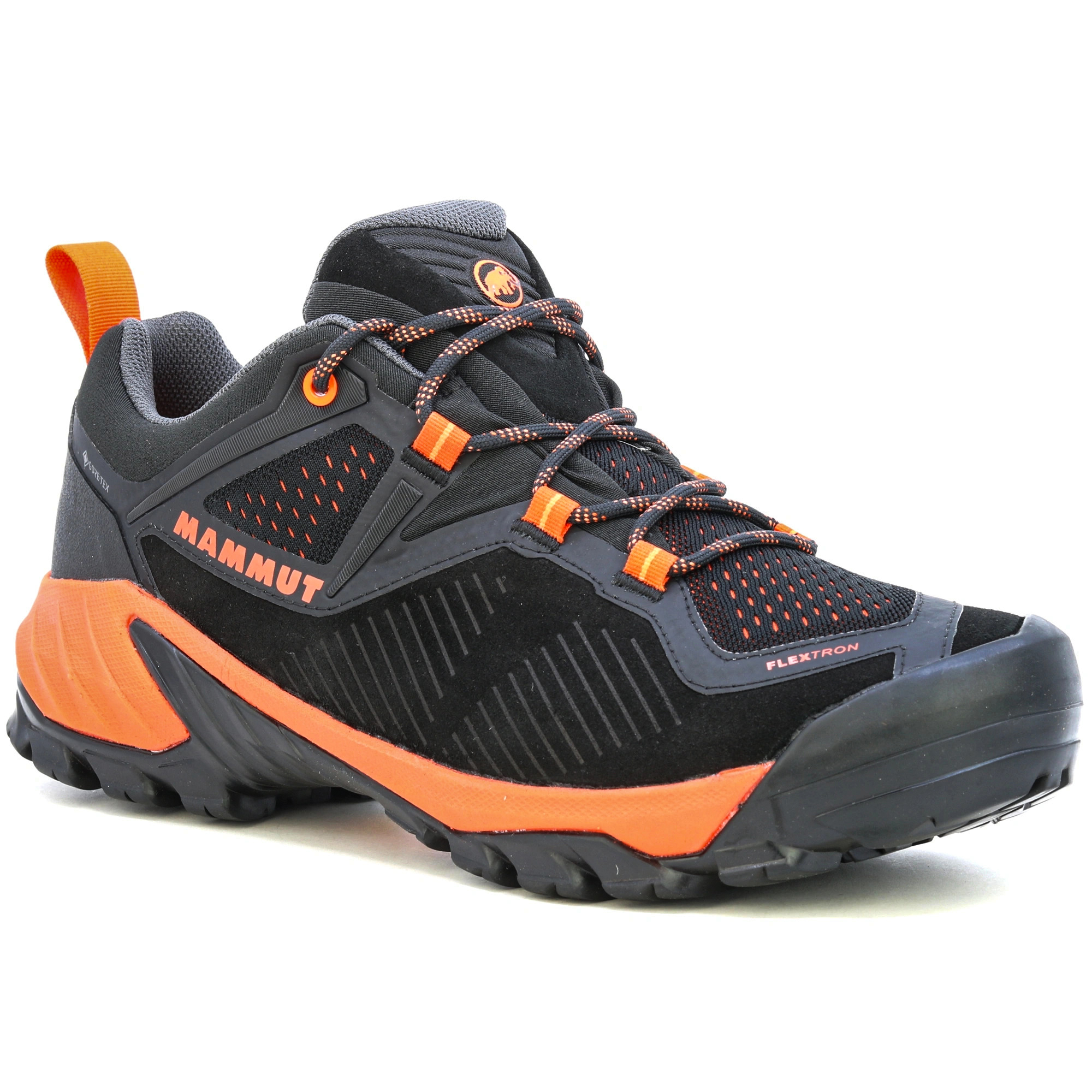 A Mammut Sapuen Low GTX túracipő egy alacsony modell, amely megfelel a többnapos, hátizsákos expedíciók szerelmeseinek. A cipők GORE-TEX® membránt használnak, amely biztosítja a magas szintű vízállóságot. A csizmák felépítése olyan megoldásokat használ, mint a Mammut Flextron® és a Mammut Georganic® 3D. Az itt bemutatott hegyi modell felsőrésze a velúrt, a rugalmas anyagot és a tartós hálót ötvözi. Ennek köszönhetően a cipők nem csak tartósak és jól néznek ki, de optimális légáteresztést is biztosítanak, és tökéletesen illeszkednek a lábfejhez. A GORE-TEX® membránnak köszönhetően a Mammut Sapuen Low GTX trekking cipők magas szintű vízszigetelést és jó légáteresztő képességet biztosítanak. A víz elleni védelmet tovább támogatja a DWR impregnálás, amely taszítja a vízcseppeket. A modell csillapító középtalppal és 3D Memo Foam talpbetéttel rendelkezik, amely alkalmazkodik a láb formájához, és maximális kényelmet, tartást és védelmet nyújt a kopás ellen. A Mammut Sapuen Low GTX túracipők a Mammut Flextron® megoldást használják, amely támogatja a természetes mozgást a láb gördülése során, és hatékonyabb energiafelhasználást tesz lehetővé járás közben. Fontos a Mammut Georganic® 3D megoldás is, amely magas szintű kényelmet biztosít cipőviselés közben. A lábfejjel érintkező összes elem anatómiailag formált, a nyelv klasszikus felépítése pedig könnyű csúszást tesz lehetővé. A modell tapadós és rendkívül kopásálló Vibram® talpat használ
