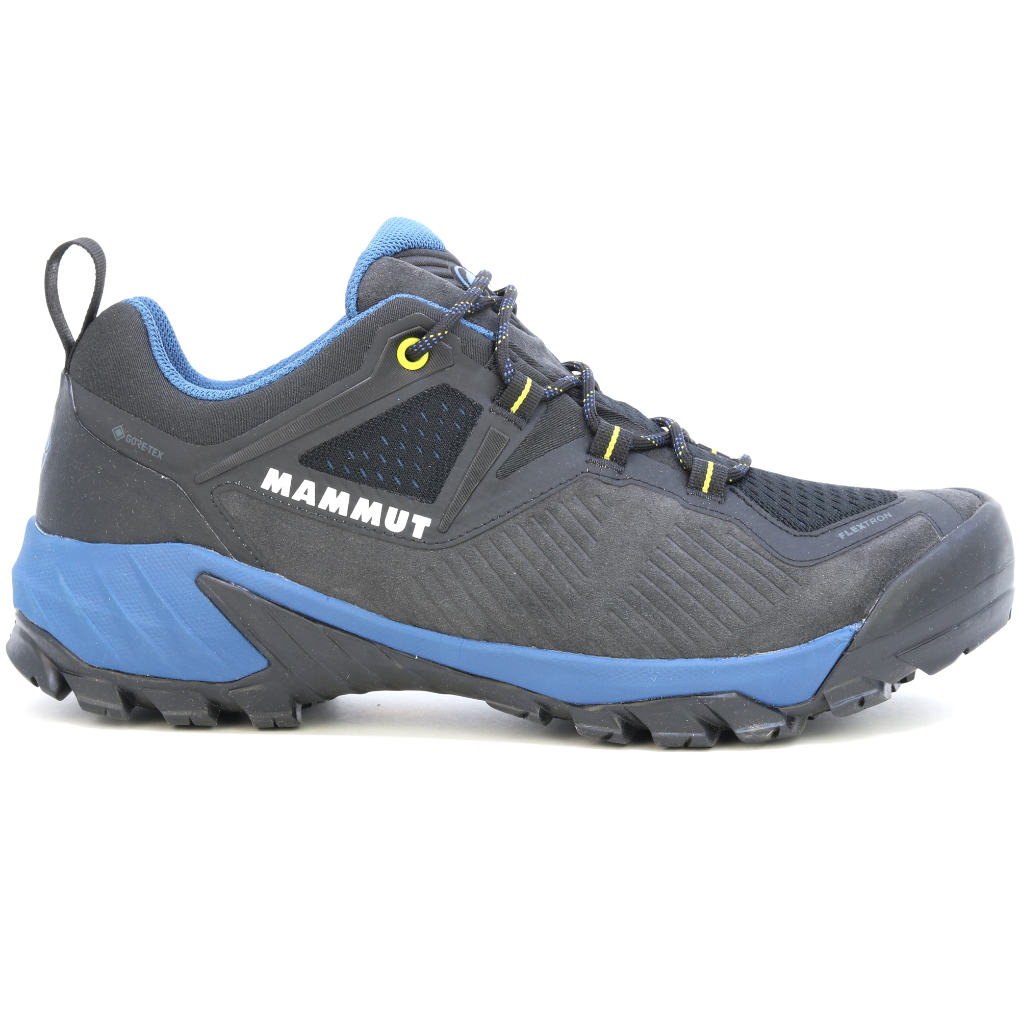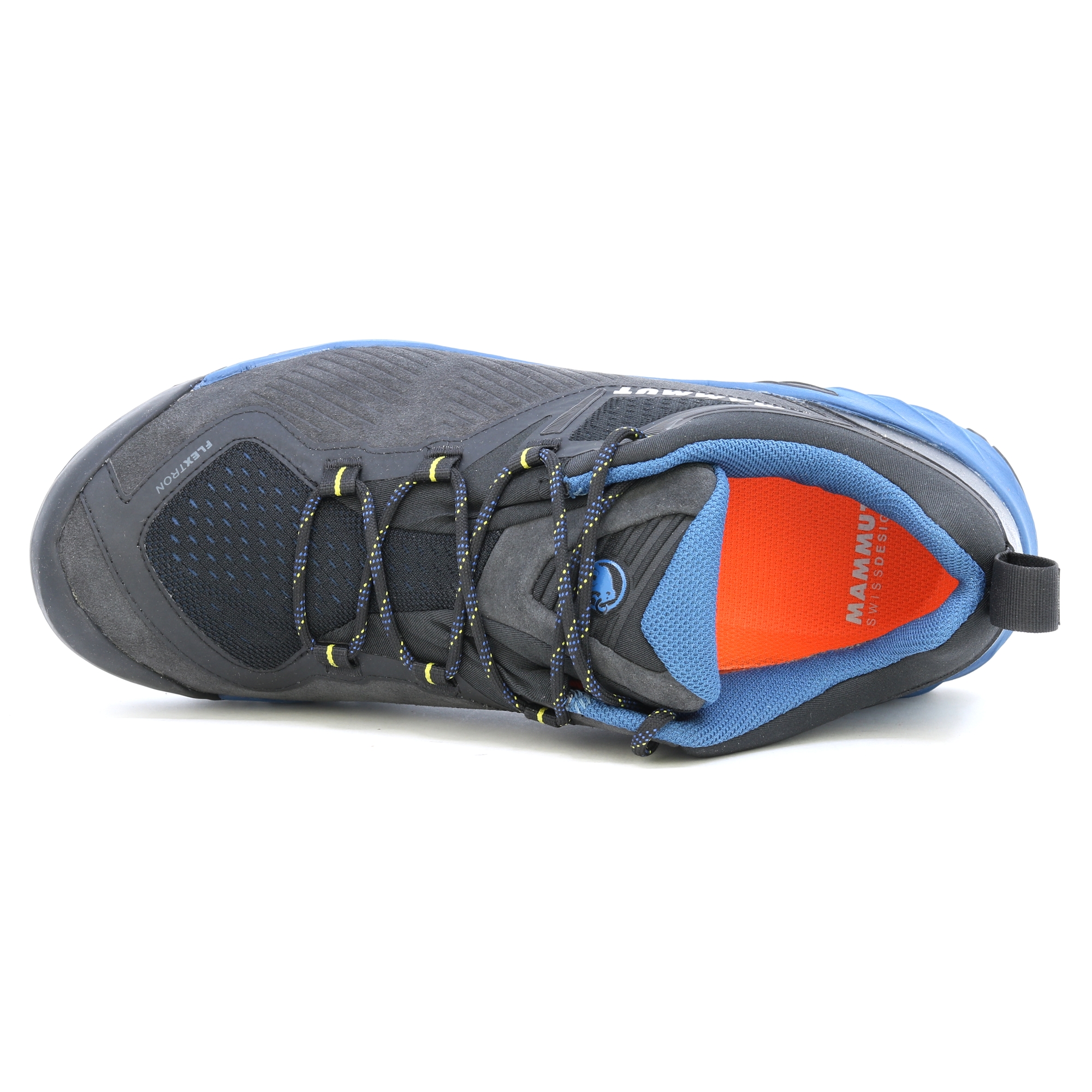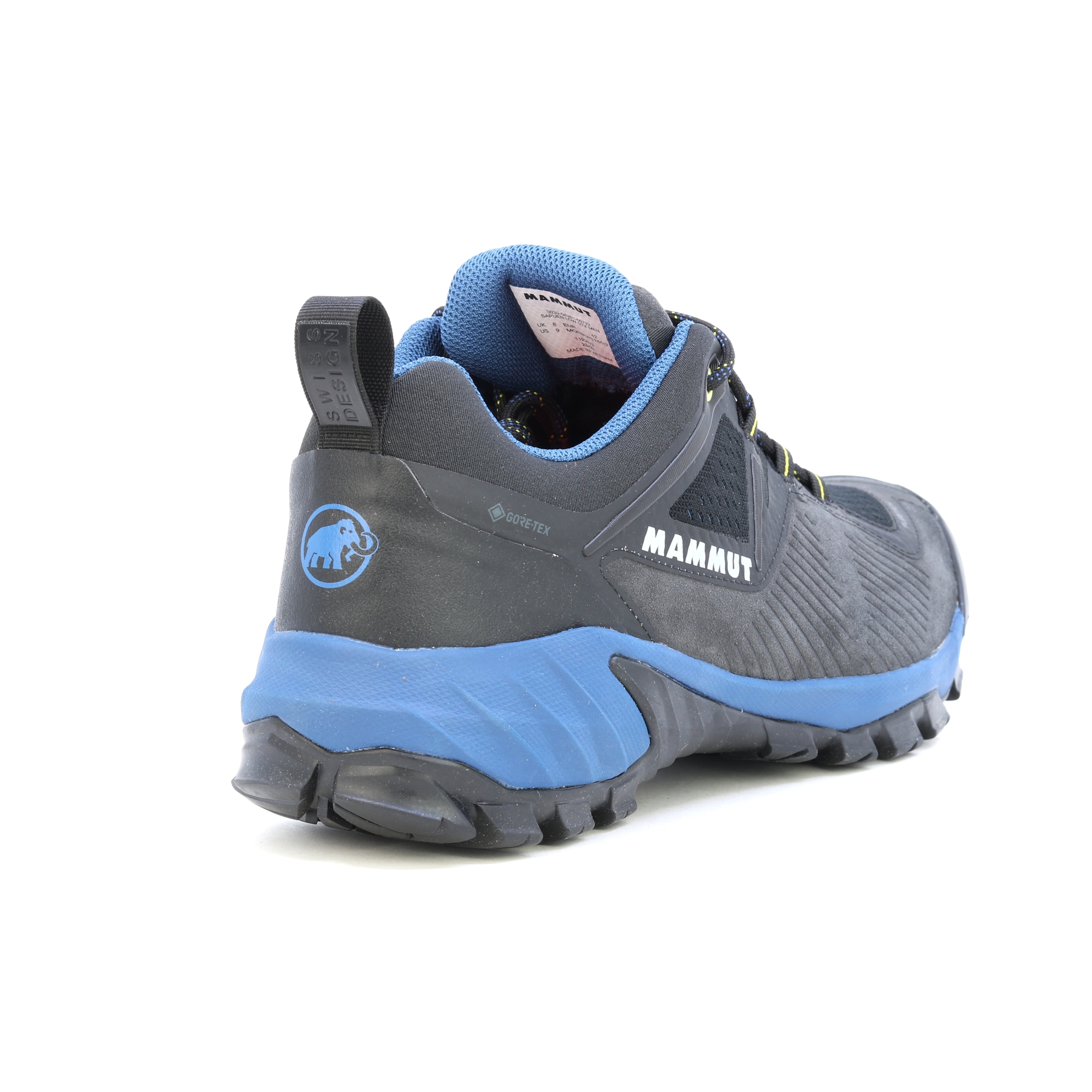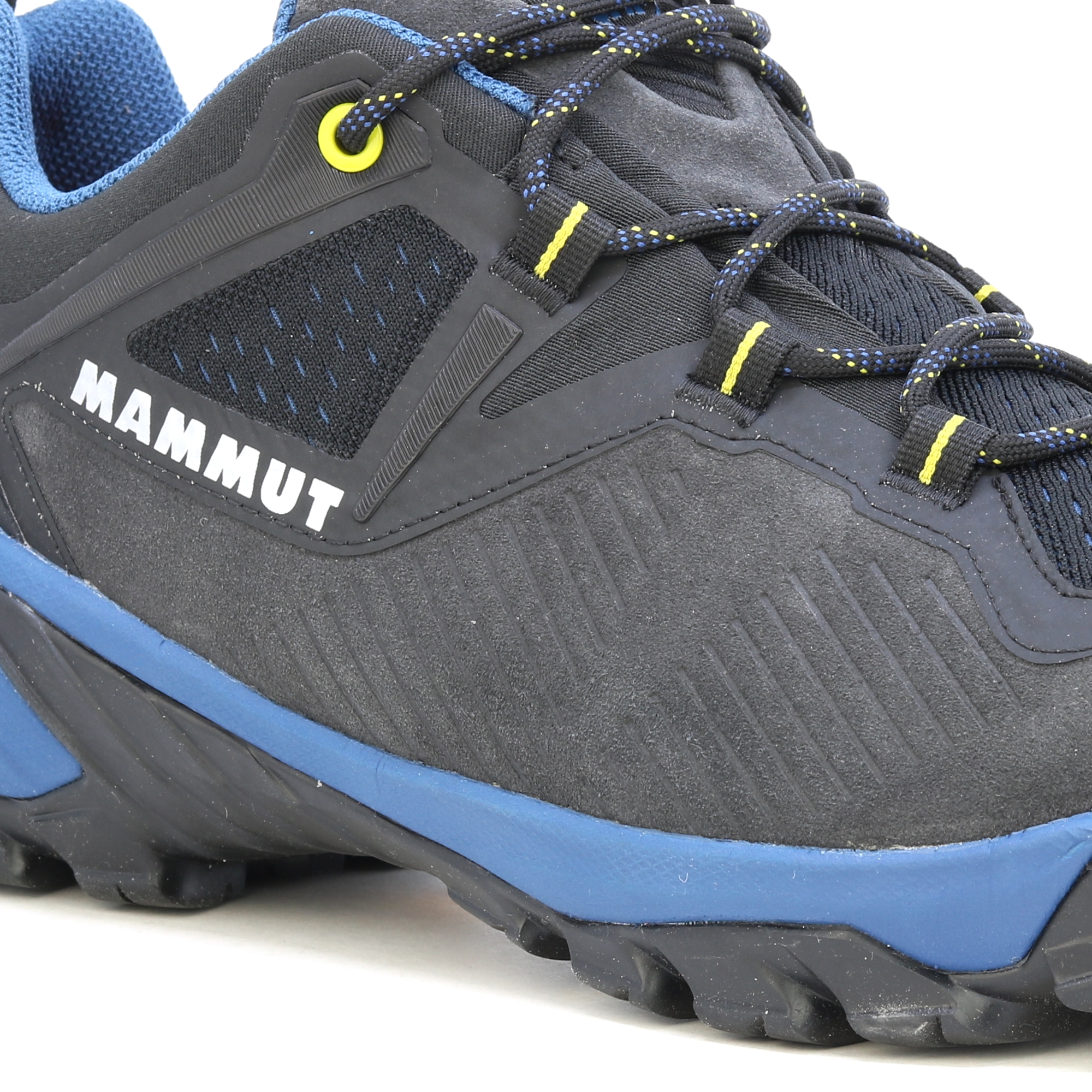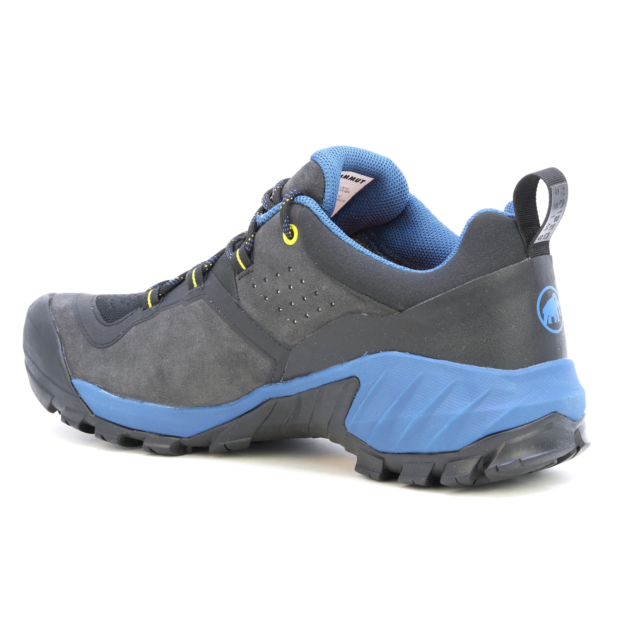 A Mammut Sapuen Low GTX túracipő egy alacsony modell, amely megfelel a többnapos, hátizsákos expedíciók szerelmeseinek. A cipők GORE-TEX® membránt használnak, amely biztosítja a magas szintű vízállóságot. A csizmák felépítése olyan megoldásokat használ, mint a Mammut Flextron® és a Mammut Georganic® 3D. Az itt bemutatott hegyi modell felsőrésze a velúrt, a rugalmas anyagot és a tartós hálót ötvözi. Ennek köszönhetően a cipők nem csak tartósak és jól néznek ki, de optimális légáteresztést is biztosítanak, és tökéletesen illeszkednek a lábfejhez. A GORE-TEX® membránnak köszönhetően a Mammut Sapuen Low GTX trekking cipők magas szintű vízszigetelést és jó légáteresztő képességet biztosítanak. A víz elleni védelmet tovább támogatja a DWR impregnálás, amely taszítja a vízcseppeket. A modell csillapító középtalppal és 3D Memo Foam talpbetéttel rendelkezik, amely alkalmazkodik a láb formájához, és maximális kényelmet, tartást és védelmet nyújt a kopás ellen. A Mammut Sapuen Low GTX túracipők a Mammut Flextron® megoldást használják, amely támogatja a természetes mozgást a láb gördülése során, és hatékonyabb energiafelhasználást tesz lehetővé járás közben. Fontos a Mammut Georganic® 3D megoldás is, amely magas szintű kényelmet biztosít cipőviselés közben. A lábfejjel érintkező összes elem anatómiailag formált, a nyelv klasszikus felépítése pedig könnyű csúszást tesz lehetővé. A modell tapadós és rendkívül kopásálló Vibram® talpat használ