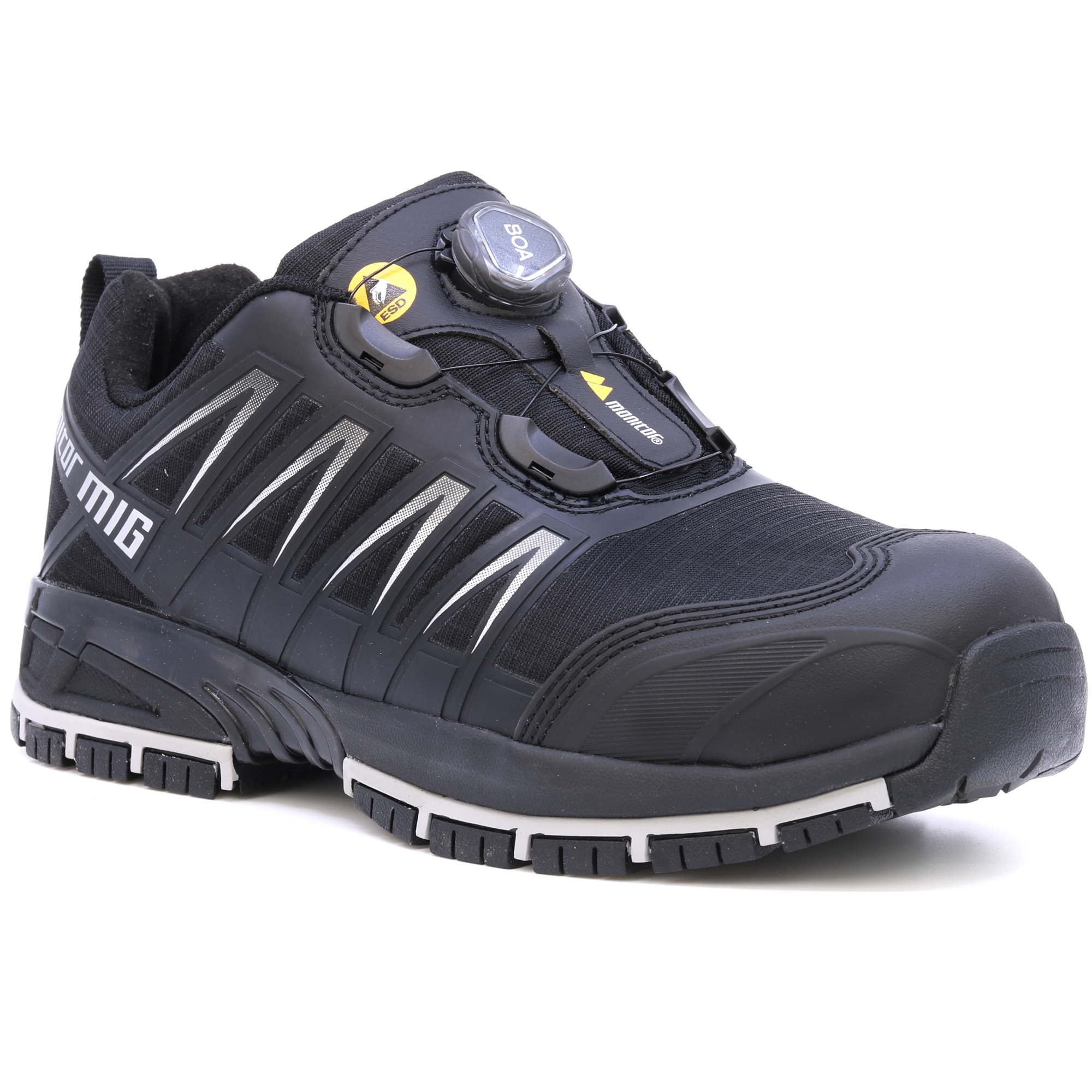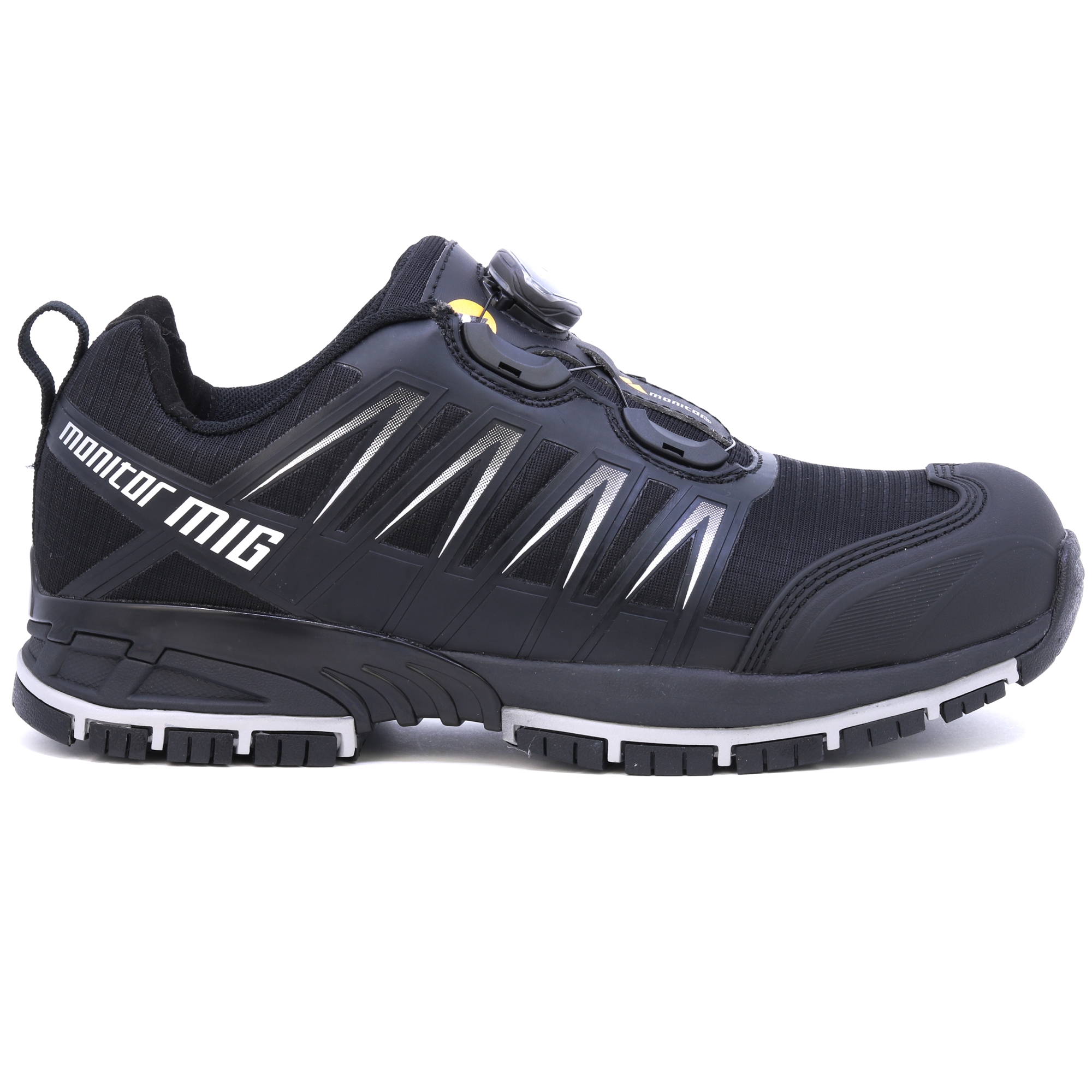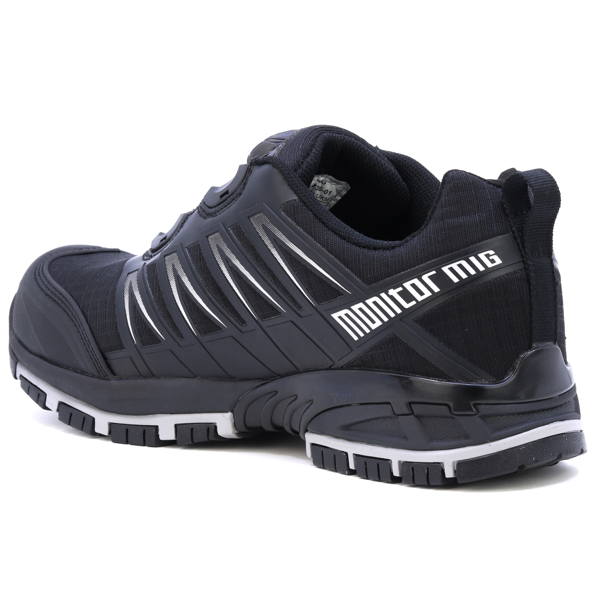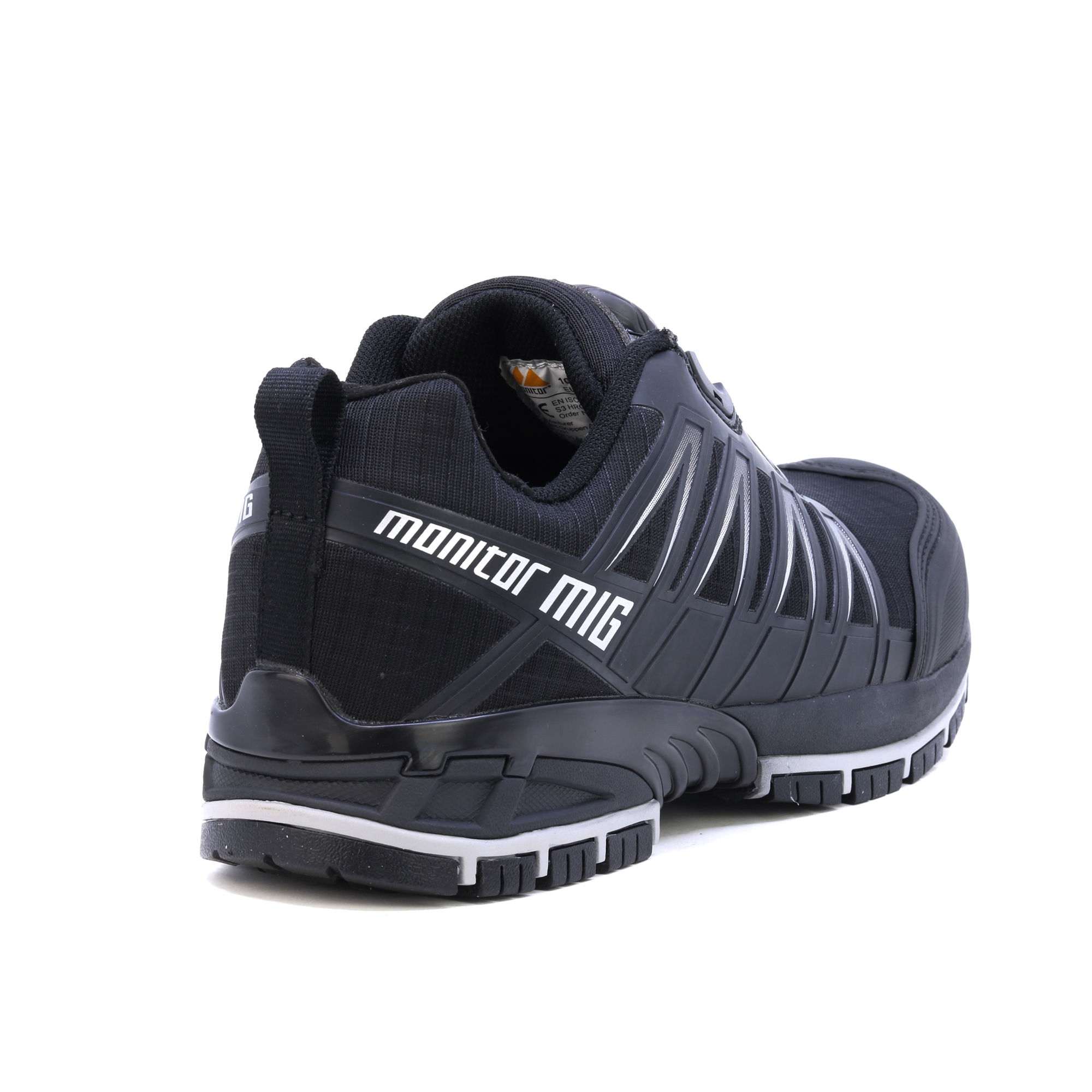 Monitor Mig je ochranná obuv v atletickém stylu, která nejenže vypadá jako sportovní obuv, ale vyznačuje se přizpůsobením a pohodlím. Horní část využívá BOA® Fit System pro rychlé a snadné vytáčení pro přesné uchycení. Svršek je vyroben z odolného materiálu Ripstop se zesílením TPU na bocích a silnější ochranou TPU na špičce pro další zpevnění boty. Podrážka je novou podešví Monitor SIGMA, což je nová verze nyní klasické podrážky Alpha. SIGMA má gumovou podrážku s dezénem, který poskytuje vynikající přilnavost na kluzkém povrchu. Mezipodešev obsahuje tlumicí EVA se silnou torzní vidlicí pro ještě větší stabilitu. Velkorysá špička je vyrobena z hliníku. Obuv je vybavena také stélkou Monitor SS2.0.