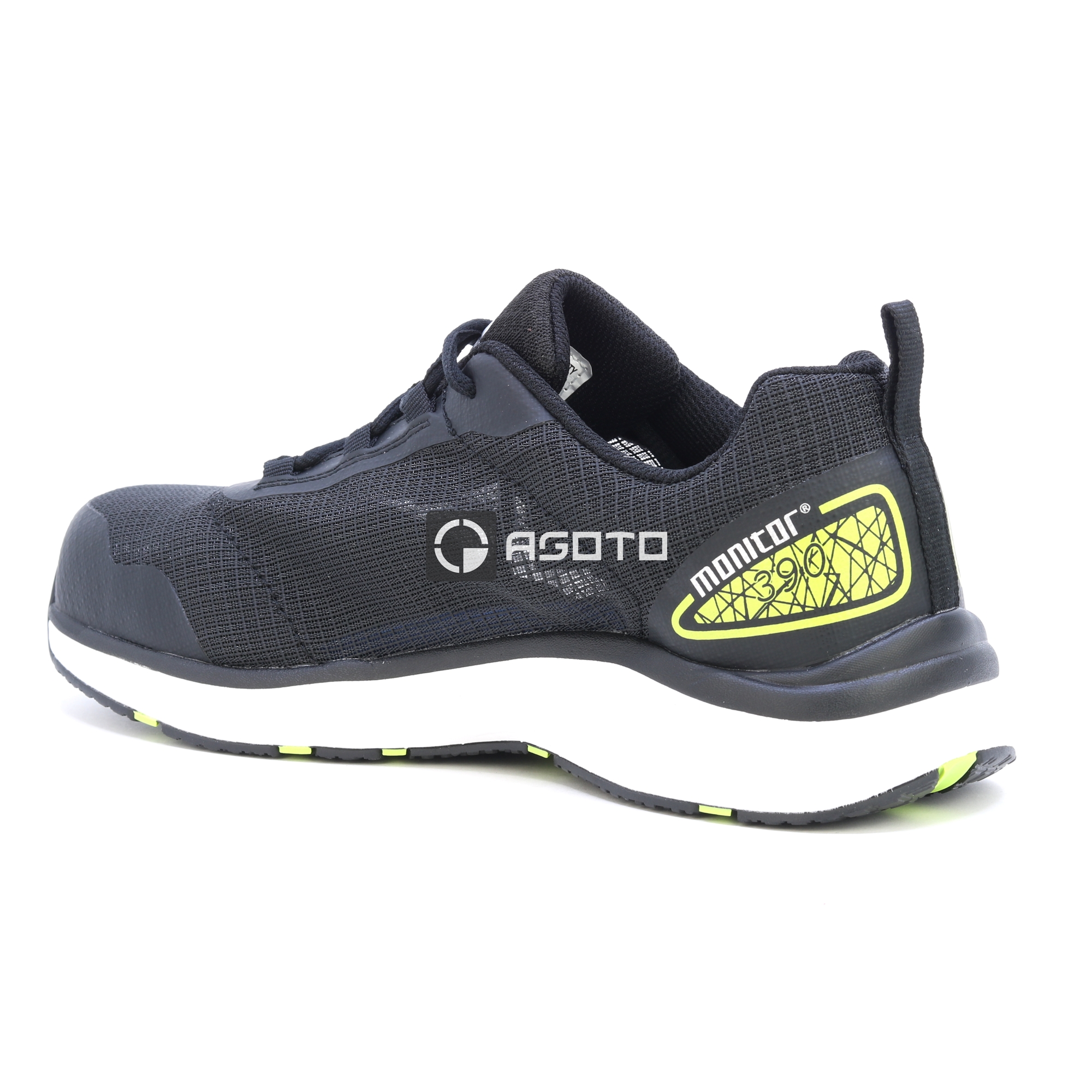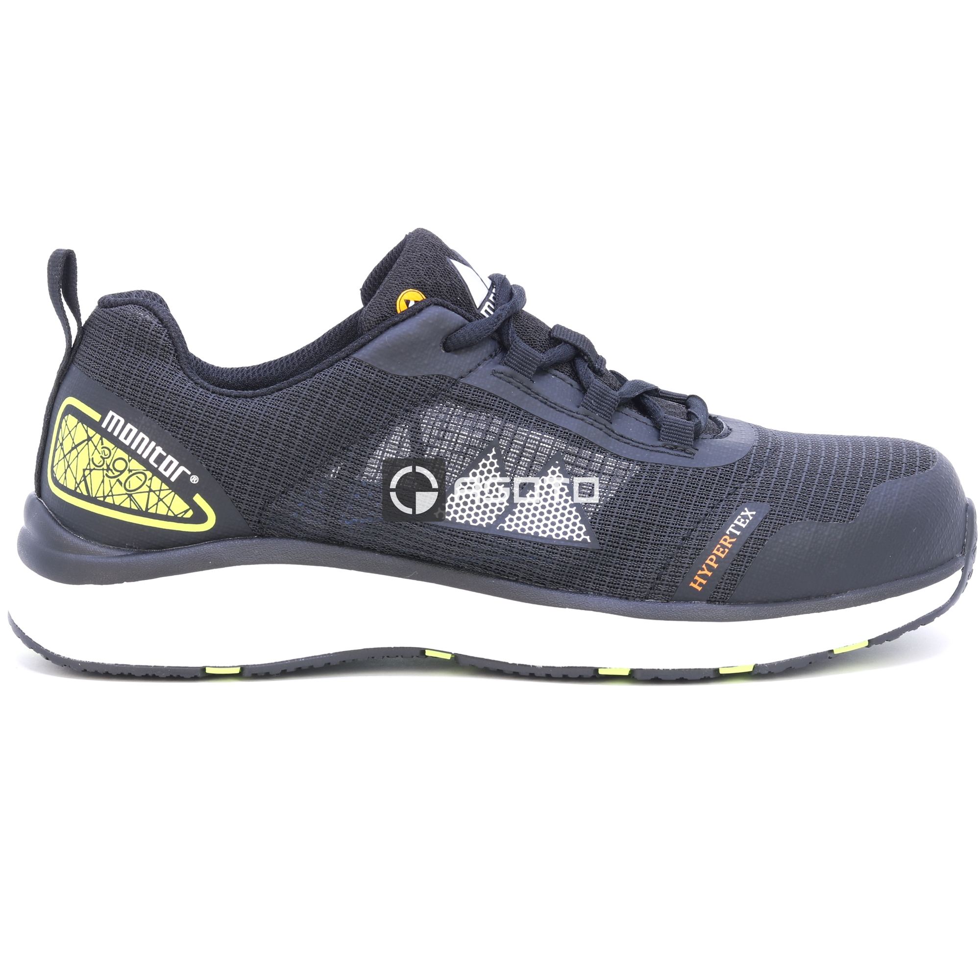 A Monitor Graphic könnyű biztonsági lábbelink a raktárakba, az iparba és a könnyű építőiparba. A Three 100 Ninety (390) pont ilyen, egy biztonsági cipő, amely mindössze 390 grammot nyom, de még mindig alumínium orrvédővel és Pantzar áthatolás elleni védelemmel rendelkezik. Ennek a cipőnek a felsőrésze rendkívül légies és tartós Hypertex anyagból készült, a könnyedségre és a légáteresztő képességre összpontosítva. Az alacsony súly és a könnyű megjelenés ellenére ez a cipő széles szabással rendelkezik. A talp gumiból készült, EVA középtalppal. A talpbetét egy Monitor's Pro Support talp. Valószínűleg a világ legkönnyebb biztonsági cipője!