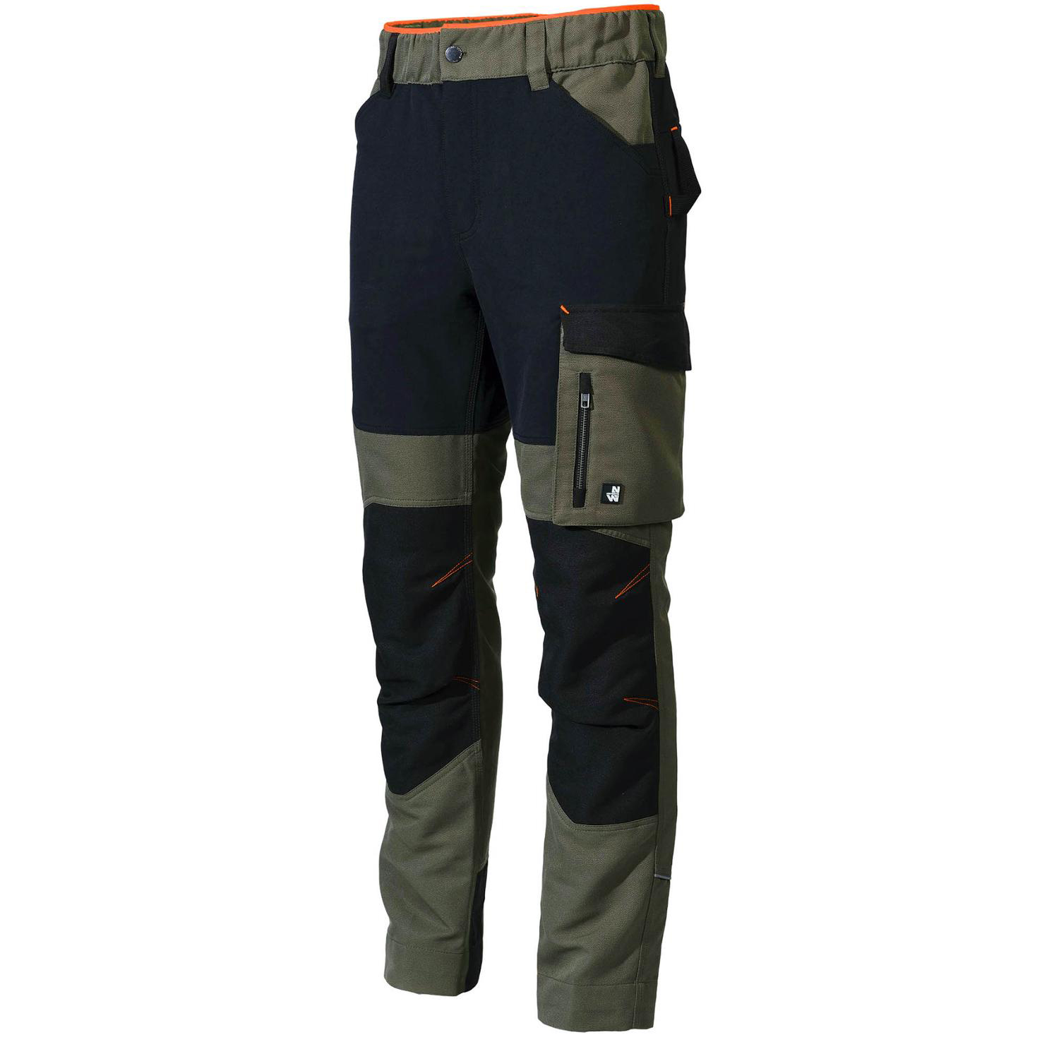 Ezek a strapabíró és funkcionális munkanadrágok a könnyedséget, rugalmasságot és maximális kényelmet ötvözik, hogy tökéletesen megfeleljenek a legigényesebb munkakörülményeknek. Az alapanyag 88% poliészter és 12% pamut jacquard szövettel, 220 g/m2 súllyal, míg a térd- és bokaerősítések rugalmas anyagból (93% poliamid, 7% elasztán, 230 g/m2) készültek, amely növeli a kopásállóságot, miközben nem akadályozza a mozgást. A magasított hátrész extra kényelmet és védelmet nyújt. A nadrág hat praktikus zsebbel rendelkezik, beleértve két elasztikus olasz zsebet, egy bővített zsebet, egy raglánzsebet, egy rávarrt zsebet és egy colstokzsebet. Ezen kívül kés-, mérőszalag- és szerszámtartó is található rajta. A háromszoros varrás tartósságot biztosít, míg a fényvisszaverő részletek jobb láthatóságot nyújtanak gyenge fényviszonyok között. Az állítható szegély és a kontrasztos részlettel ellátott rugalmas derékpánt tovább növeli a kényelmet és az egyéni illeszkedést. Ideális választás minden szakember számára, aki a tartósságot, a funkcionalitást és a modern megjelenést egyaránt fontosnak tartja.