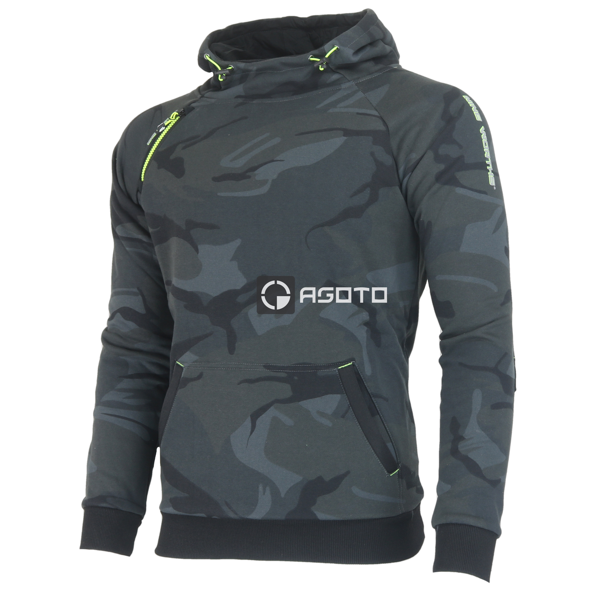 North Ways terepszínű pulóver. Kényelmes modern pulóver, amely ideális mindazok számára, akik jól szeretnének kinézni a munkában és a mindennapi viseletben. MŰSZAKI ADATOK: Állítható kapucni, 2 zseb: 1 cipzáras zseb, 1 elülső zseb. POLÁR 80% pamut 20% poliészter, 310g/m2: POLÁR 65% poliészter 35% pamut, 310g/m2