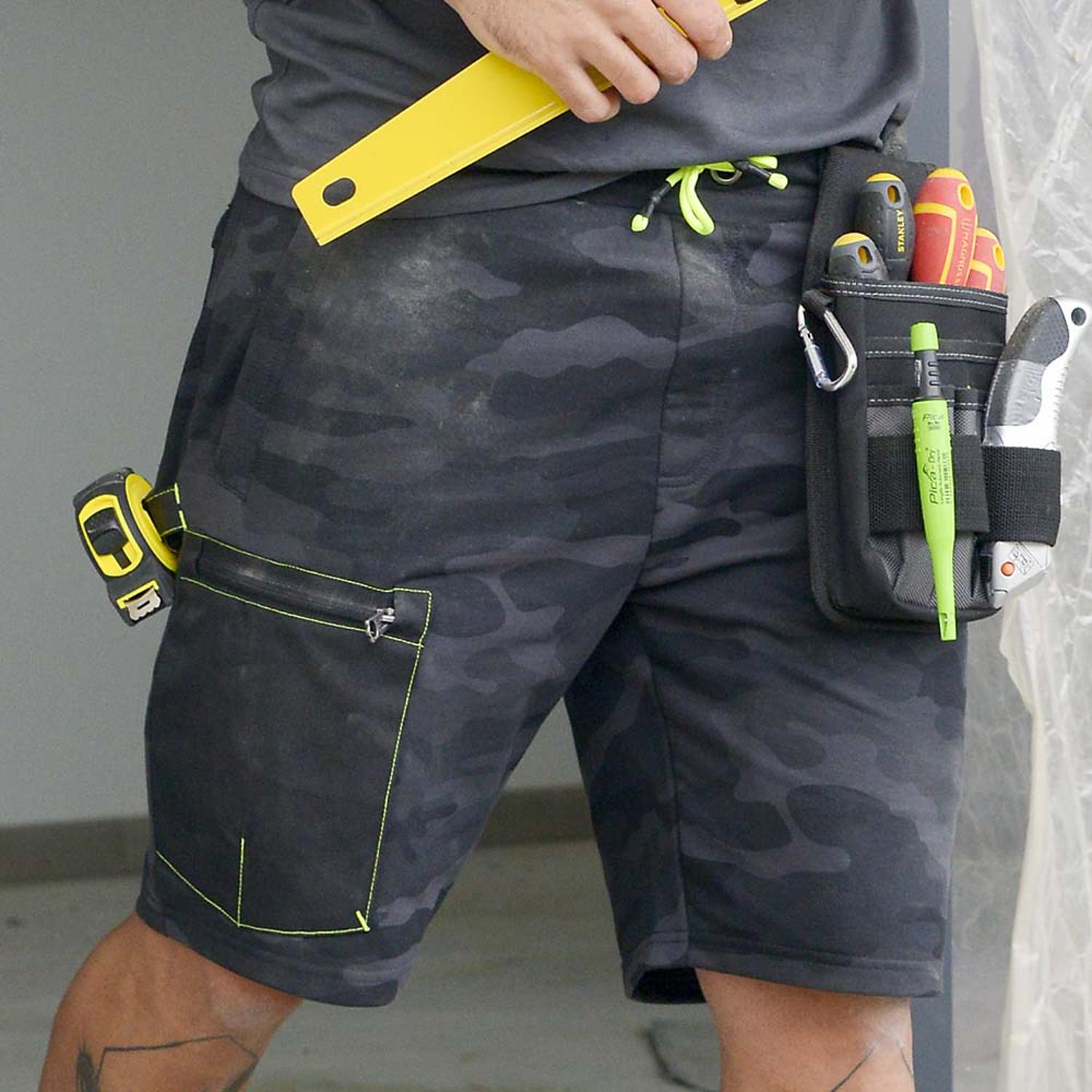FRENCH TERRY 65% Poliészter 35% Pamut, 250g/m2, 600D Oxford erősítés 100% poliészter PU bevonattal, 250g/m2. MŰSZAKI ADATOK: Zsebek megerősítése. Elasztikus szalag. Húzózsinór. 5 zseb: 3 cipzáras zseb, 2 varrott zseb, 1 heveder hurok, 1 szerszámtartó hurok