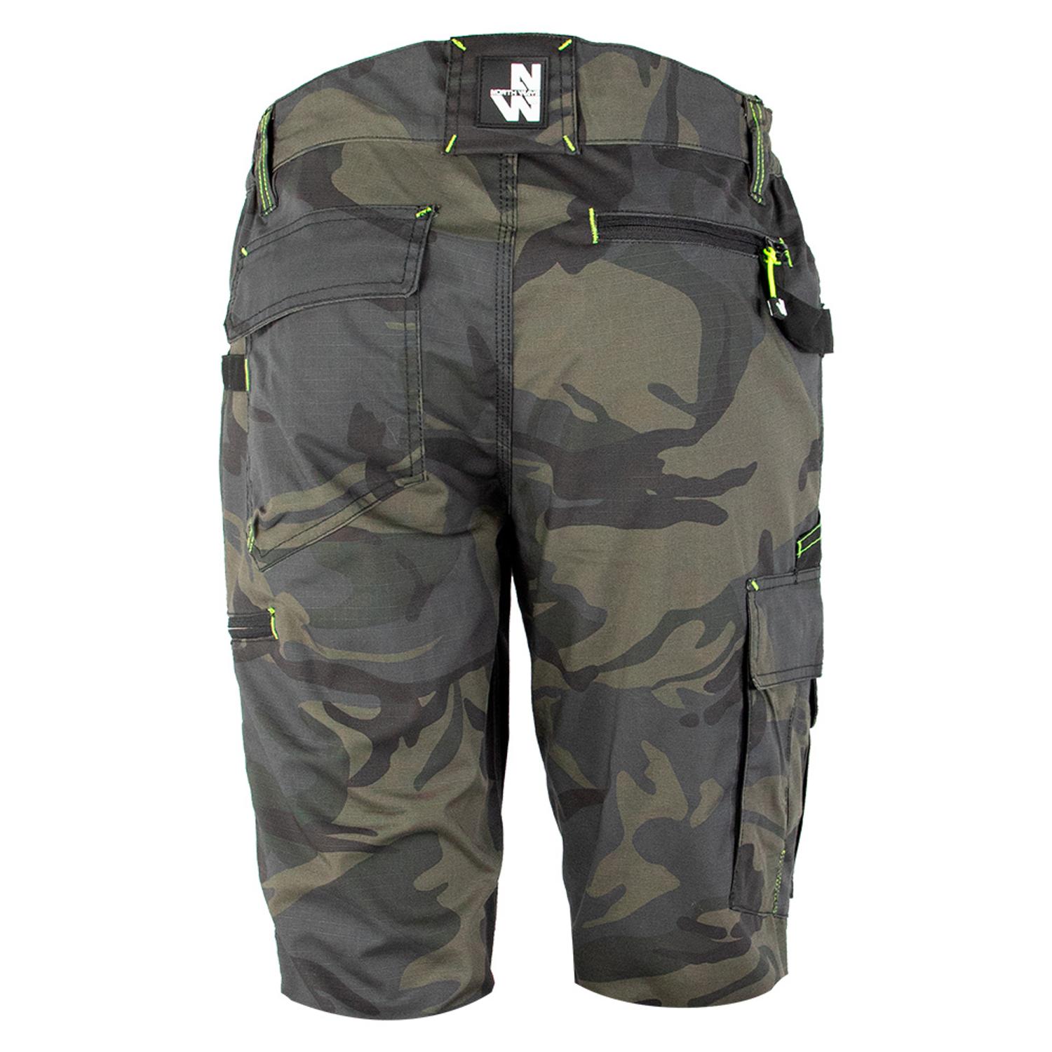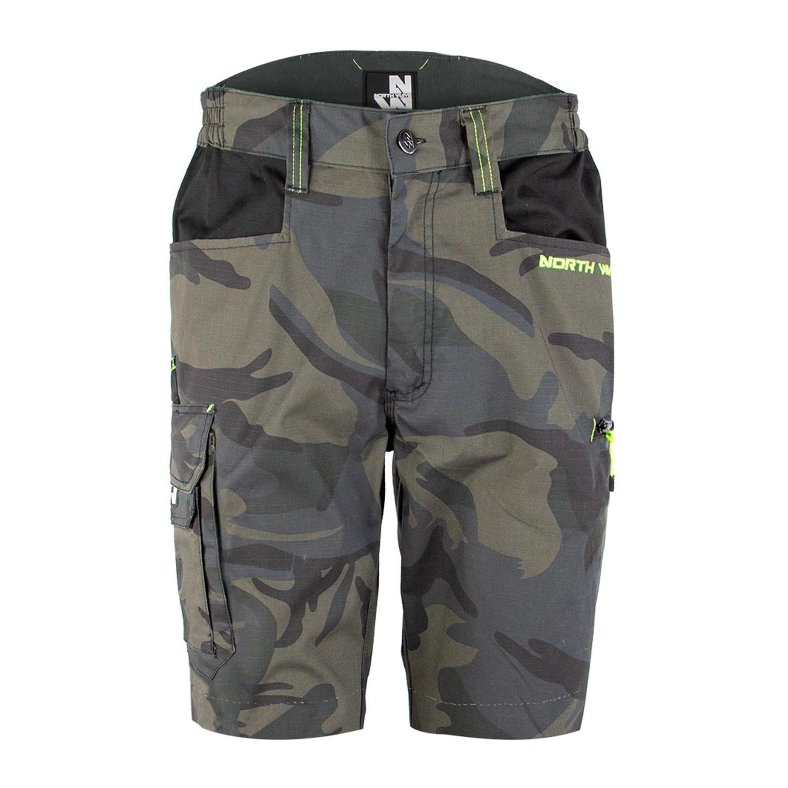 North Ways Ripstop terepszínű munkanadrág. Fő anyag: 65% poliészter / 32% pamut / 3% elasztán - 215 g/m2 - RIPSTOP, félig elasztikus derékpánt 8 zseb: 2 oldalzseb, 1 összecsukható mérőszalag zseb, 1 füles zseb, 1 okostelefon zseb, 2 cipzáras zsebek, 1 patch zseb füllel, 1 szalaghurok. Háromszoros varrás.