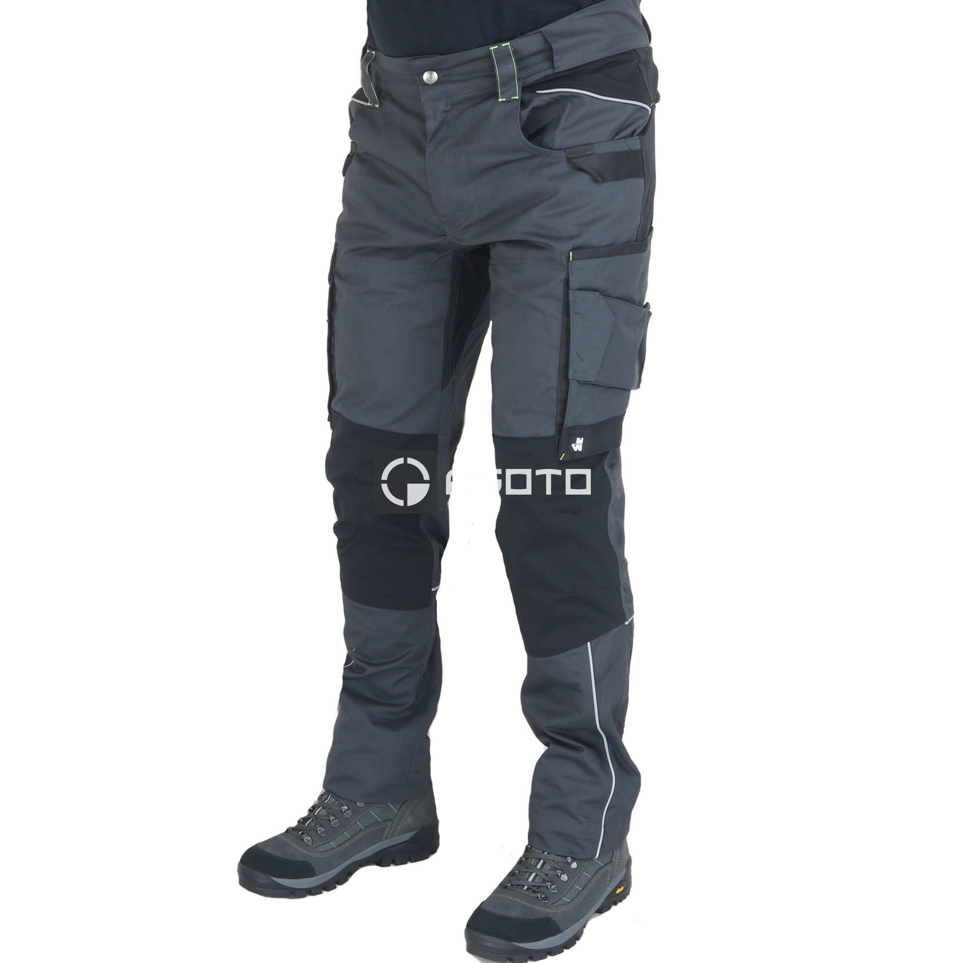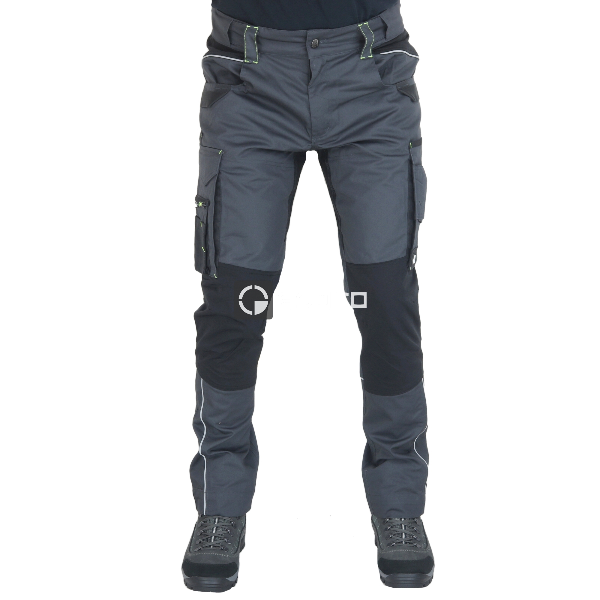 - megerősítések CORDURA® 420D PU bevonattal 100% nylon - 245 g/m2. Felszerelés: Stretch Ripstop® térderősítések és betétek a lépésben és a fenékben. Cordura® zseberősítések. Állítható MOOV pánt. A hát erősítése. 10 zseb: 2 csúsztatható zseb, 4 füles zseb, 1 okostelefon zseb, 1 mérőszalag zseb, 1 cipzáros zseb, 1 tolltartó zseb, 1 jelvénytartó, 1 mérőszalag, 1 szerszámhurok. Háromszoros varrás. Fényvisszaverő részletek. Állítható szegély.