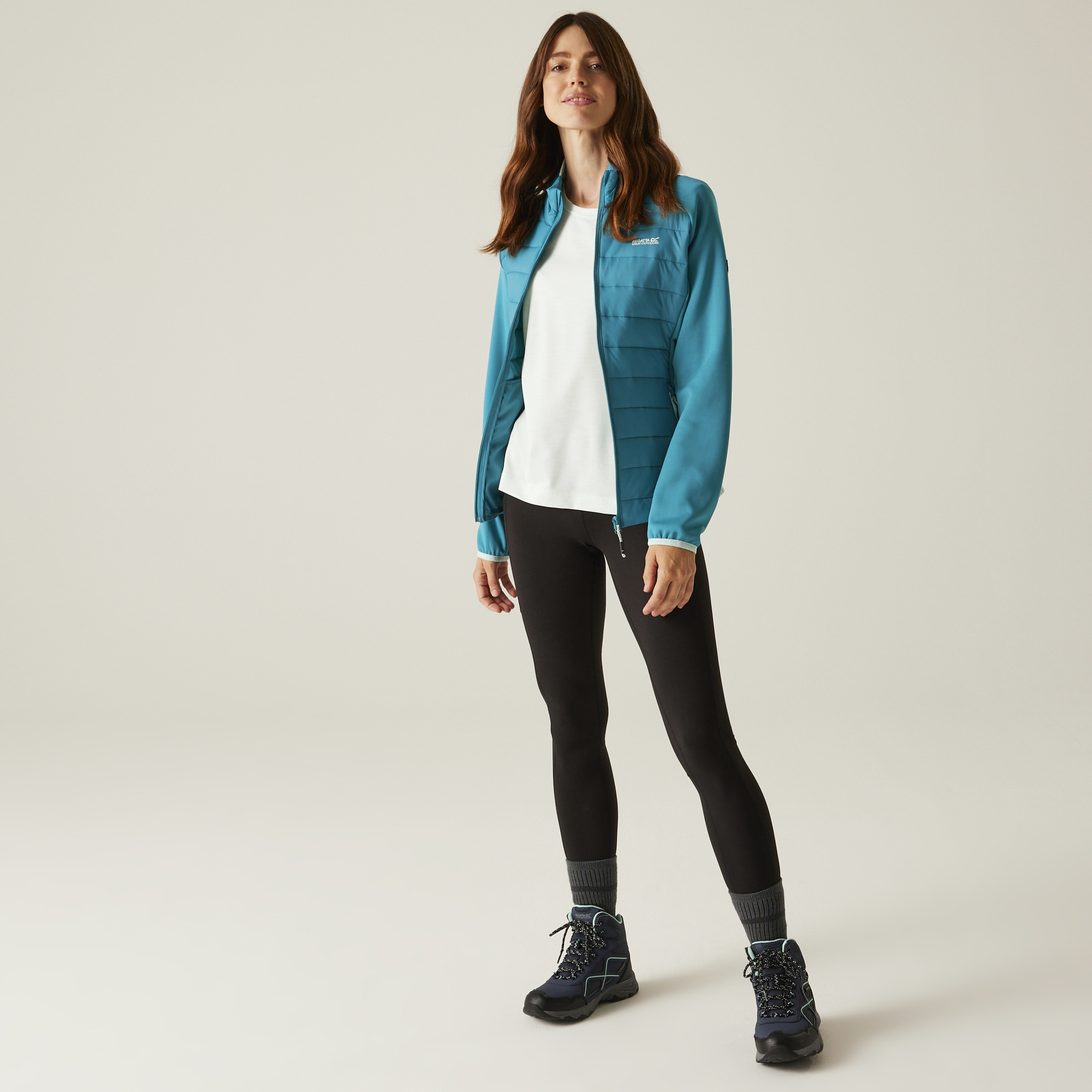 A Regatta Clumber Hybrid V női kabát könnyű és rugalmas kialakításával ideális választás, amely a rendkívül jól összenyomható Warmloft szintetikus töltetet ötvözi a vízlepergető külső réteggel és a stratégiai helyeken elhelyezett Extol Stretch anyaggal a maximális mozgásszabadság érdekében. Tartós poliamidból készült, DWR vízlepergető kezeléssel, amely megbízható védelmet nyújt a kedvezőtlen időjárás ellen, és szárazon tart még hirtelen záporok idején is. A két praktikus cipzáras zseb biztonságos helyet kínál apróságok tárolására, míg a törzs és a karok körüli rugalmas panelek gondoskodnak a kényelmes és szabad mozgásról. Letisztult sziluettje és rugalmas szegélyei sportos megjelenést kölcsönöznek, így tökéletes választás hegyi túrákhoz vagy baráti sétákhoz szép tájakon. Az egyik ujjon elhelyezett Regatta Outdoors embléma modern részletként egészíti ki a kabát dizájnját.
