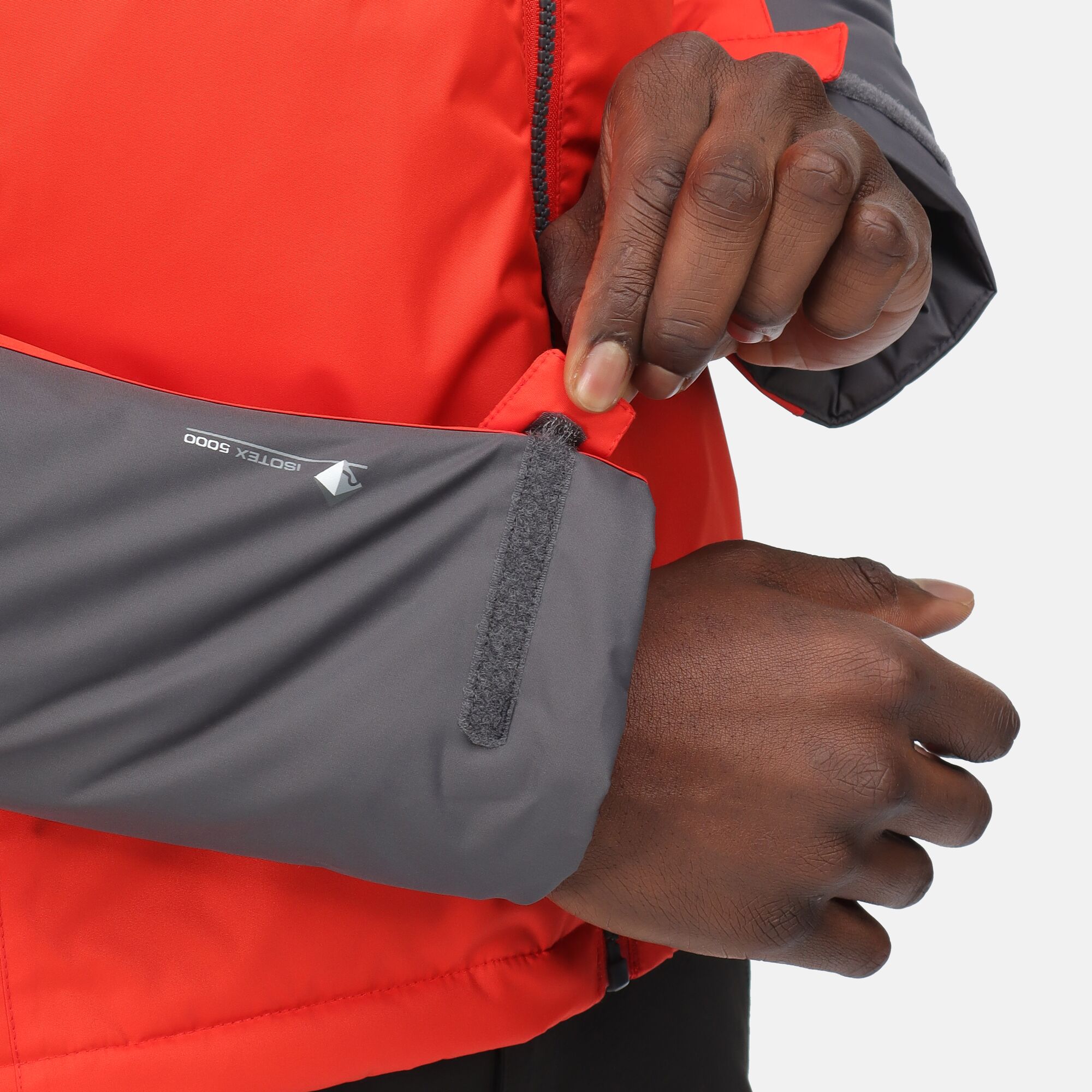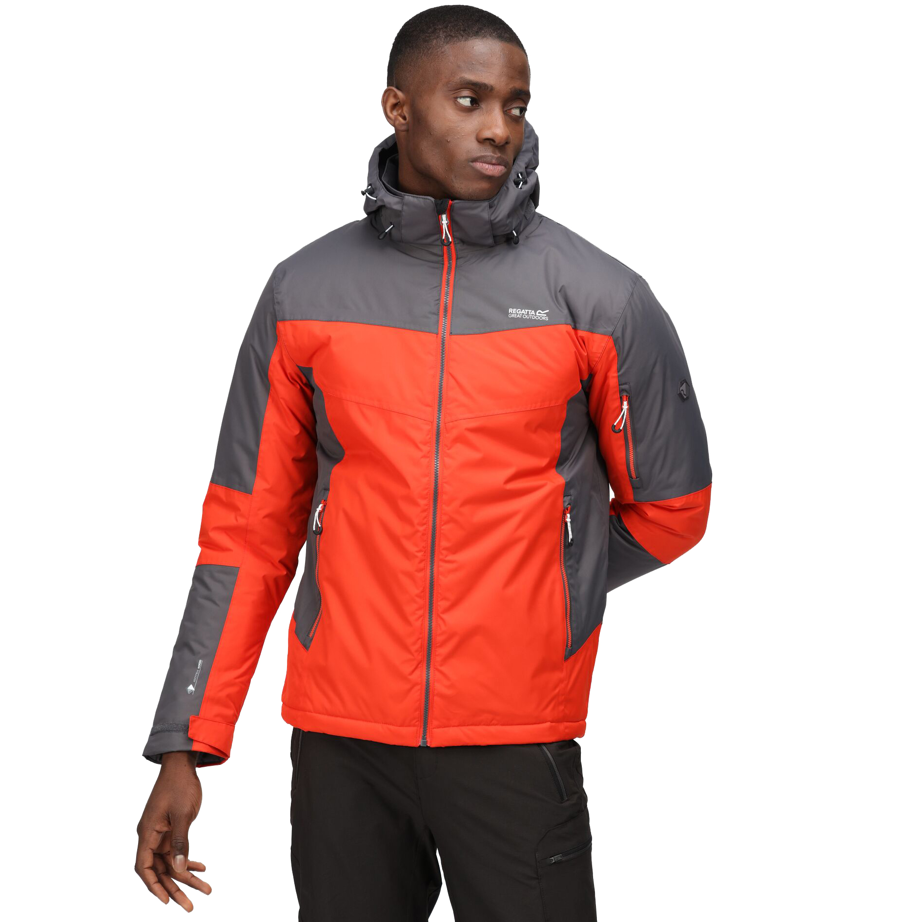 Pánská bunda Regatta FINCHAM je vyrobena z prodyšného,větruvzorného, voděodolného materiálu ISOTEX 5 000, s voděodpudivou povrchovou úpravou DWR (Durable Water Repellent). Bunda je celorozepínací s vyšším límcem a ochranou brady, aby se předešlo nepříjemnému přiskřípnutí. Kapuce je zabalitelná do límce. Na přední straně najdete dvě hlavní kapsy na zip, jedna kapsa na zip je na levém rukávu. Rukávy nastavitelné za pomoci suchého zipu. Tepelný komfort zajišťuje technologie THERMOGUARD. Logo Regatta najdete na přední straně a levém rukávu. prodyšný, větruvzdorný, voděodolný materiál ISOTEX 5 000g/m2/24h