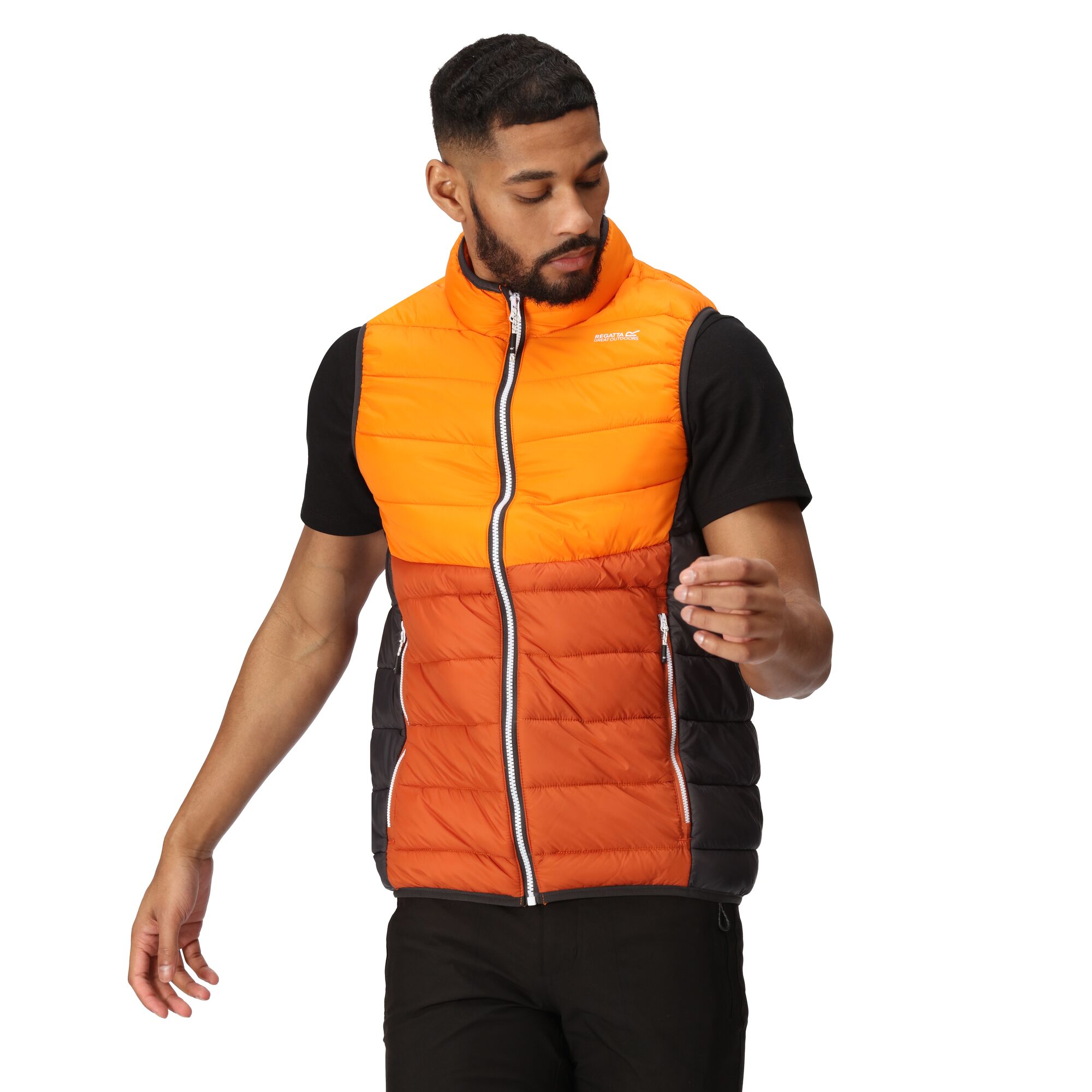 A Regatta's Harrock B/W férfi mellény stílusos, tartós és pehelymentes, tökéletes téli sétákhoz. Az újrahasznosított könnyű szigeteléssel ellátott férfi túramellény nem terheli le a kalandjait. Van egy vízlepergető kezelés is, amely taszítja az enyhe esőt. A stílusos, meleg dizájn szabása trendben tart.