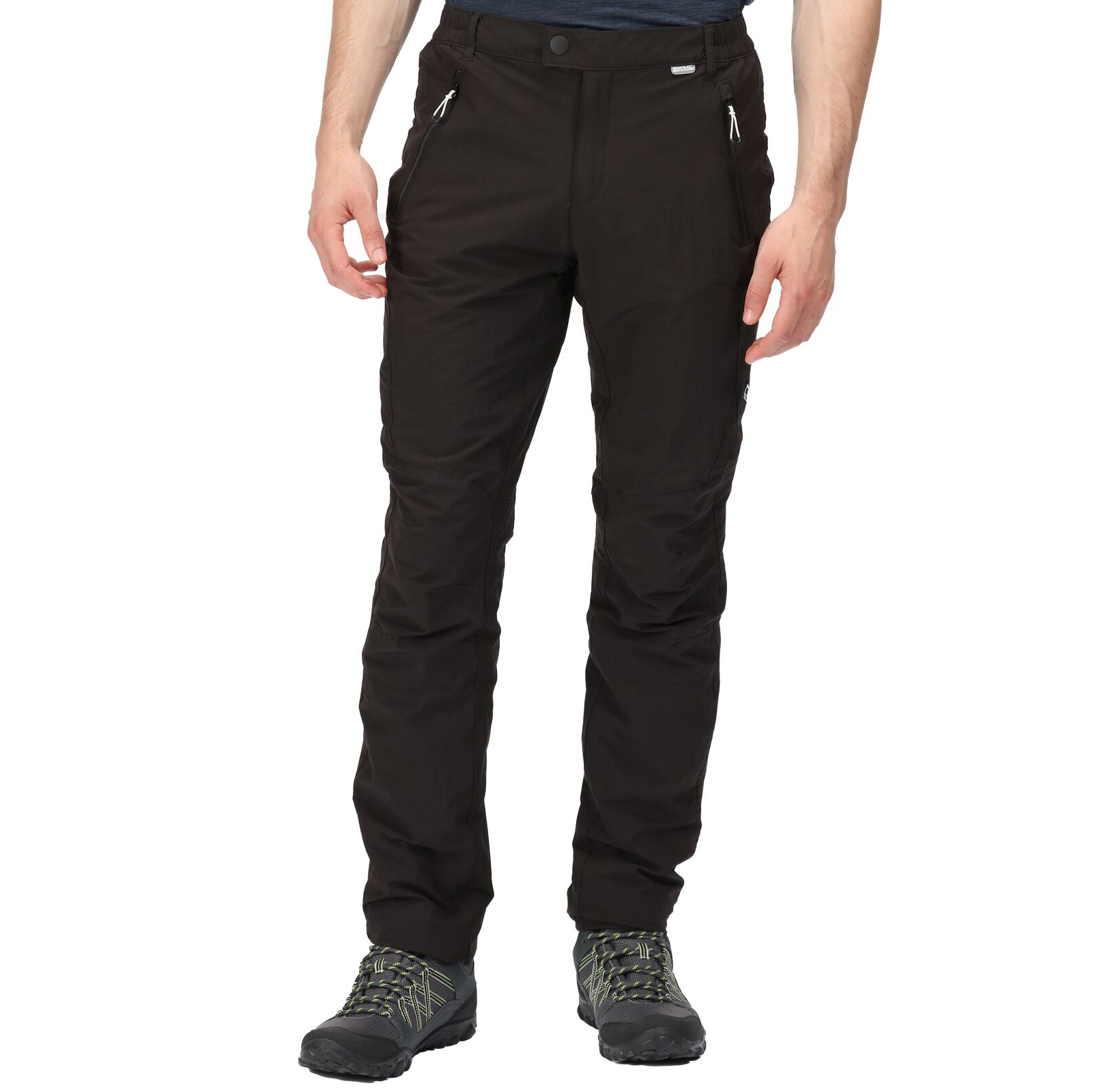 Pánské turistické kalhoty Highton Pro Trs značky Regatta jsou pružné, odolné vůči vodě, ale i vůči opotřebení. Kalhoty jsou vyrobené z pohodlné strečové polyesterové tkaniny Isoflex pro neomezený pohyb a dlouhodobé nošení. Odolná vodoodpudivá úprava na vycházkových kalhotách zabrání lehkým přeháňkám. Otvor na zip u kotníku umožňuje snadné oblékání/vyzouvání. Nezbytností jsou i 2 praktické kapsy na zip.