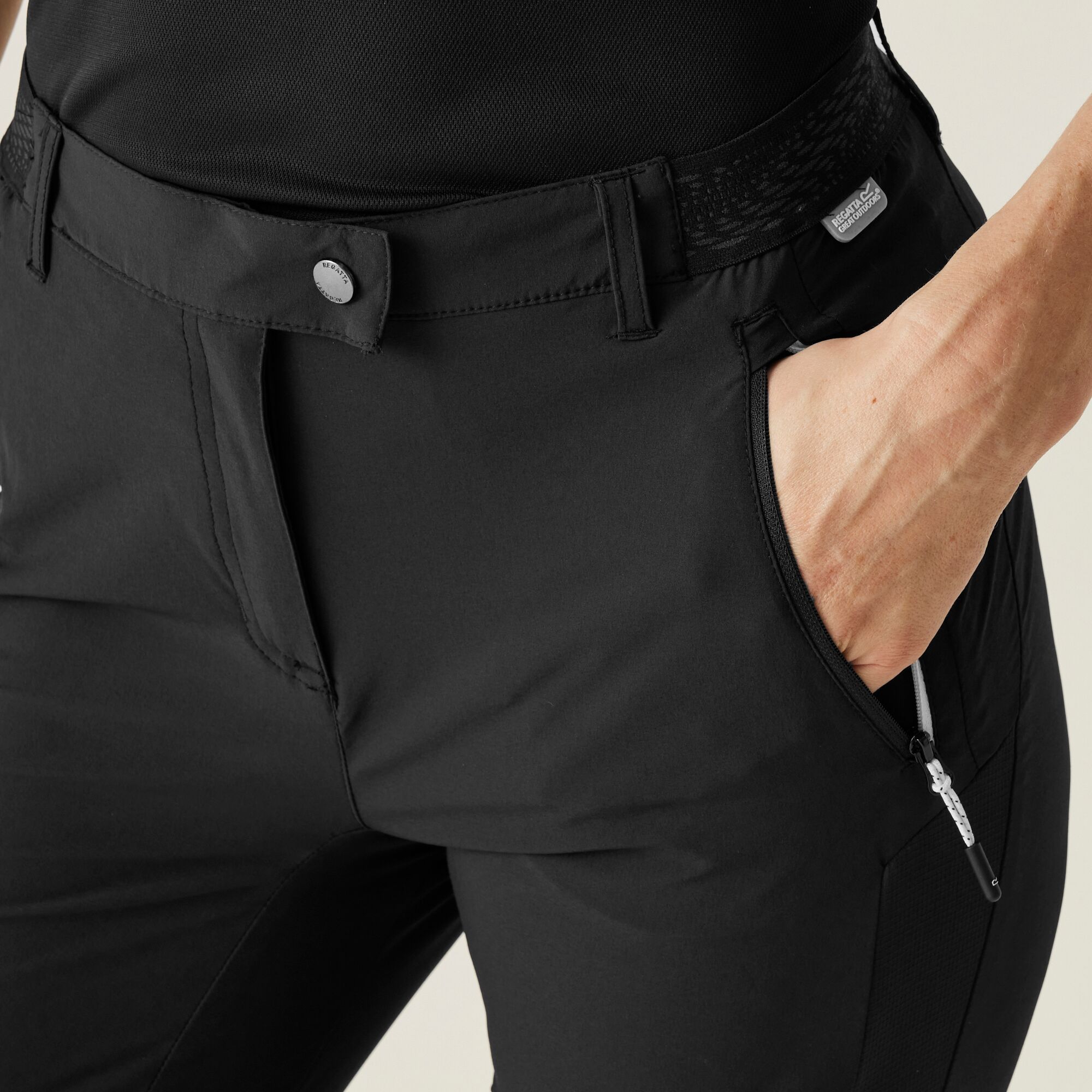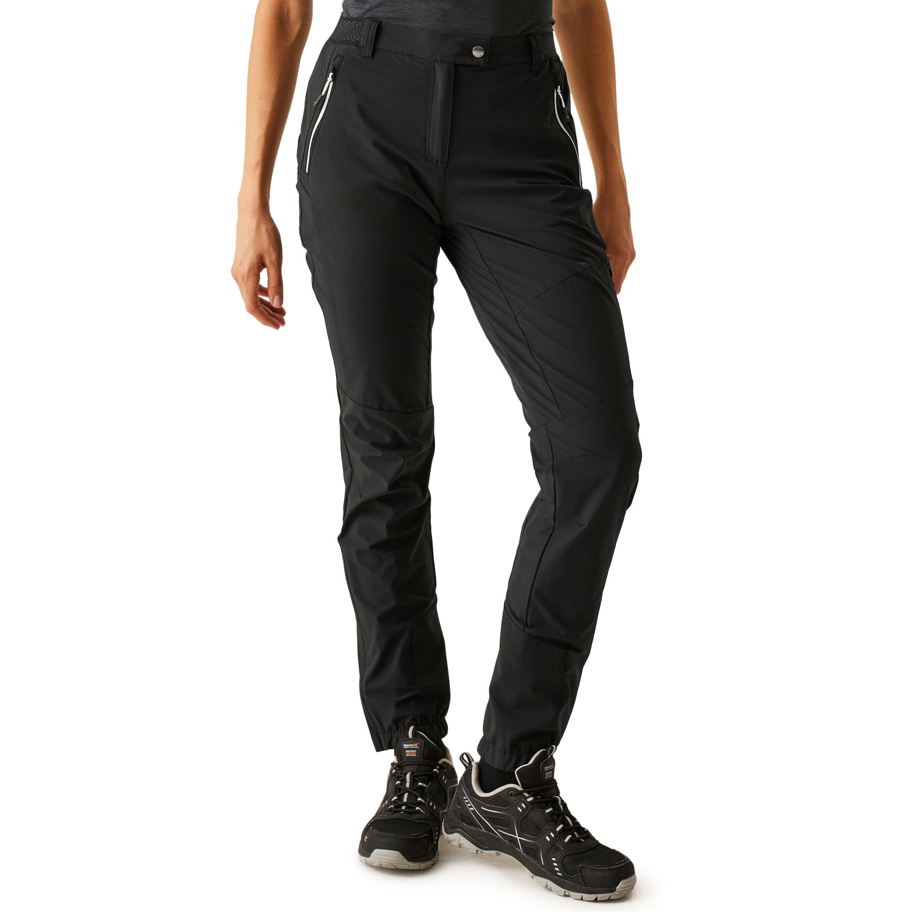 A Regatta Mountain Trs III női rugalmas nadrág kiváló tartósságot, mozgásszabadságot és időjárás elleni védelmet nyújt. Ezek a nadrágok gyorsan száradó, rugalmas szövetből készültek DWR vízlepergető bevonattal, és a leginkább igénybevett területeken kopásálló Cordura megerősítésekkel rendelkeznek. Az ergonomikus, karcsú szabású kialakítás és az előformázott térdrész maximális mozgásszabadságot biztosít. A derékrész hátul meg van emelve a jobb fedés érdekében hosszú távon, és részben elasztikus, hogy kényelmesen illeszkedjen a mozgás során. A cipzáras lábszárak csúszásmentes szalaggal segítik a könnyű fel- és levételt, valamint a szoros illeszkedést a cipő felett. Fényvisszaverő elemek gondoskodnak a jobb láthatóságról. ISOFLEX – aktív rugalmas szövet (90% poliamid / 10% elasztán).
