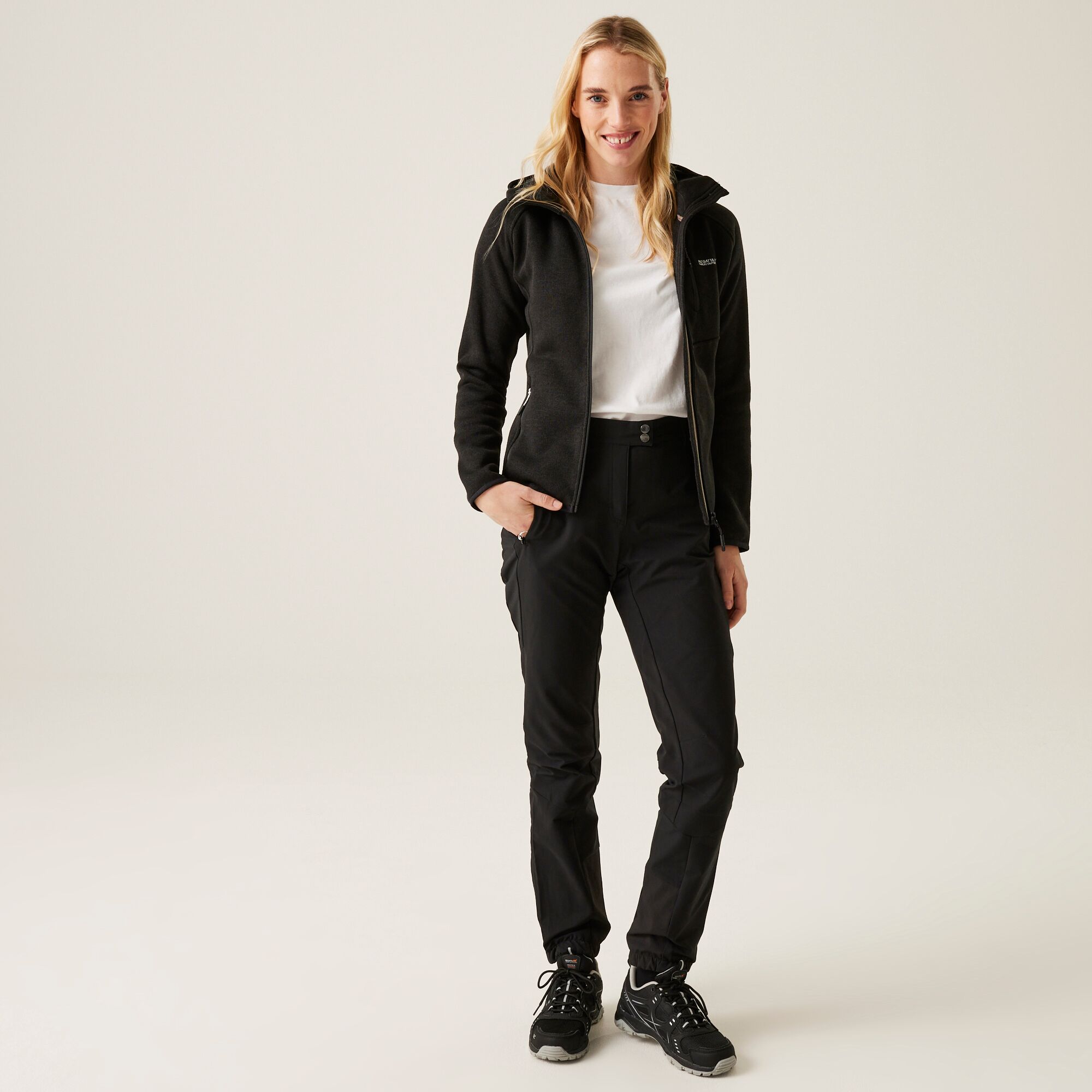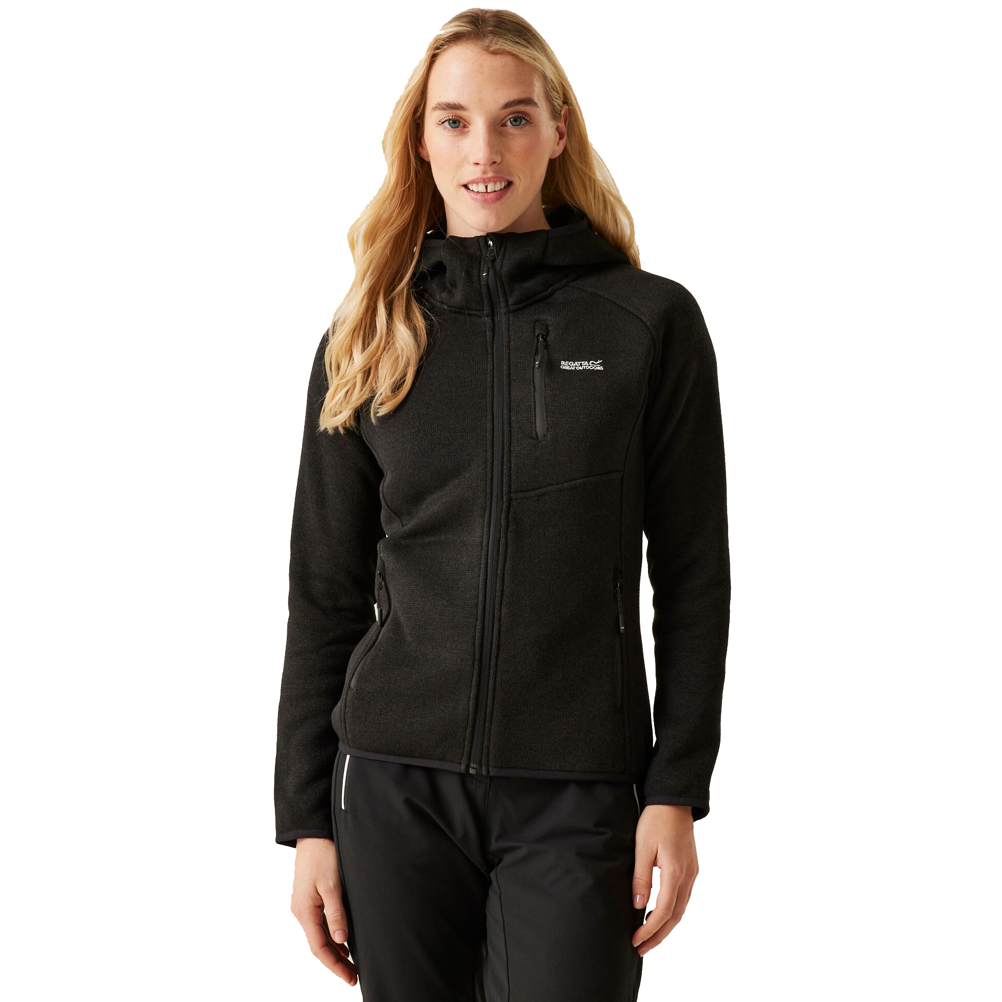 A Regatta Newhill női kapucnis polár pulóver ideális választás minden olyan aktív nő számára, aki kényelmes és meleg réteget keres a szabadtéri tevékenységekhez. A melírozott kötött hatású anyag nemcsak stílusos megjelenést biztosít, hanem kellemes hőérzetet is nyújt hűvösebb napokon. A teljes hosszúságú cipzár könnyű fel- és levételt tesz lehetővé, a húzózsinórral állítható kapucni pedig védelmet nyújt a szél és a hideg ellen túrázás, kirándulás vagy hétköznapi viselet során.
