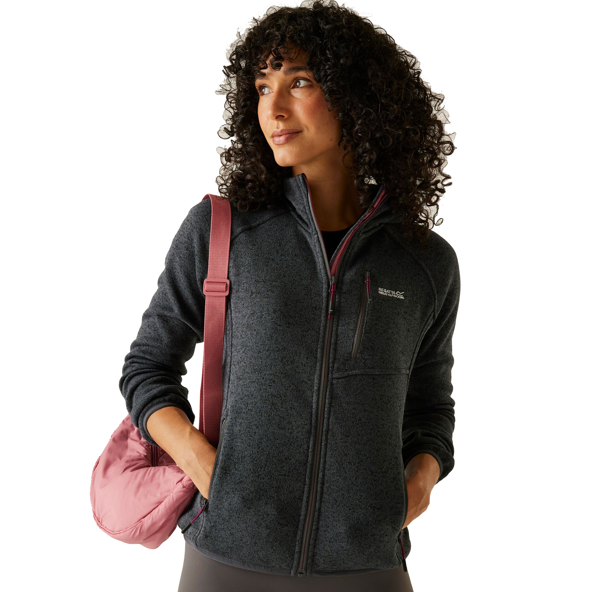 A Regatta Newhill női kapucnis polár pulóver ideális választás minden olyan aktív nő számára, aki kényelmes és meleg réteget keres a szabadtéri tevékenységekhez. A melírozott kötött hatású anyag nemcsak stílusos megjelenést biztosít, hanem kellemes hőérzetet is nyújt hűvösebb napokon. A teljes hosszúságú cipzár könnyű fel- és levételt tesz lehetővé, a húzózsinórral állítható kapucni pedig védelmet nyújt a szél és a hideg ellen túrázás, kirándulás vagy hétköznapi viselet során.