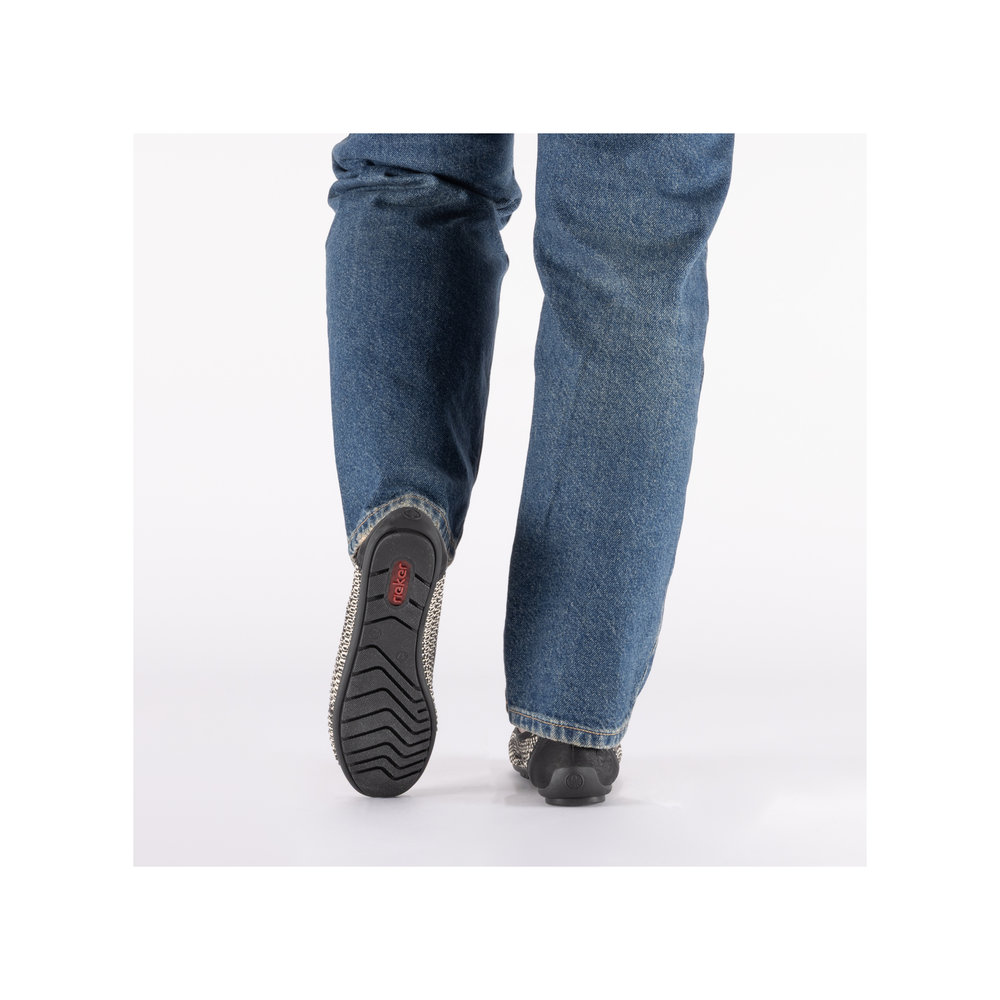A RIEKER 43850-00 fekete női balerina időtálló és sokoldalú választás azoknak a nőknek, akik elegáns, kényelmes és könnyen kombinálható lábbelit keresnek mindennapi viseletre, munkába vagy alkalmi eseményekre. A letisztult, minimalista design nőies megjelenést biztosít, és jól illeszkedik nadrághoz, szoknyához vagy ruhához egyaránt. A könnyű kialakítás és a rugalmas talp támogatja a természetes járást, míg a puha talpbetét gondoskodik a hosszan tartó kényelemről akár egész napos viselés során is. Ez a modell a visszafogott elegancia és a RIEKER márkára jellemző komfort harmonikus kombinációja.