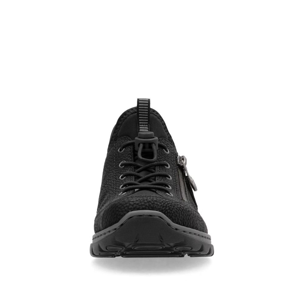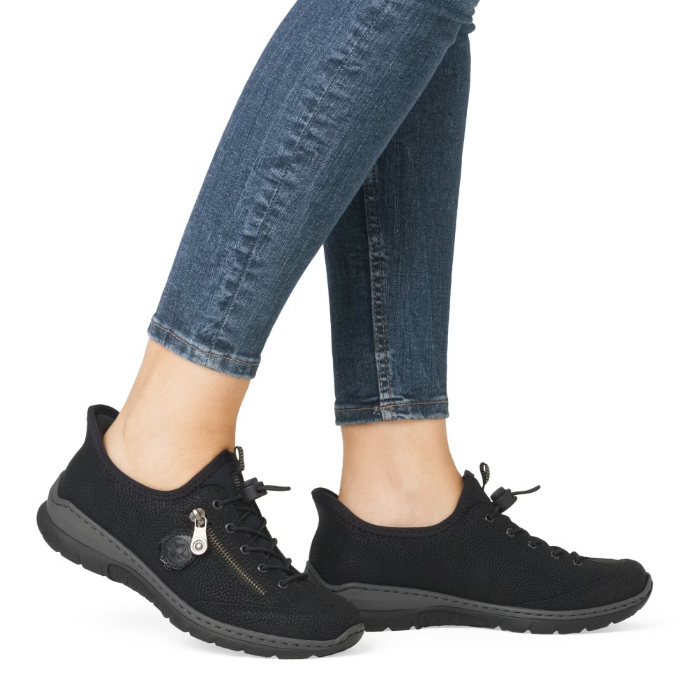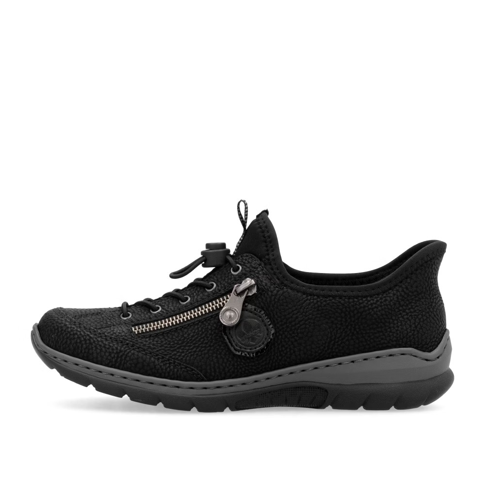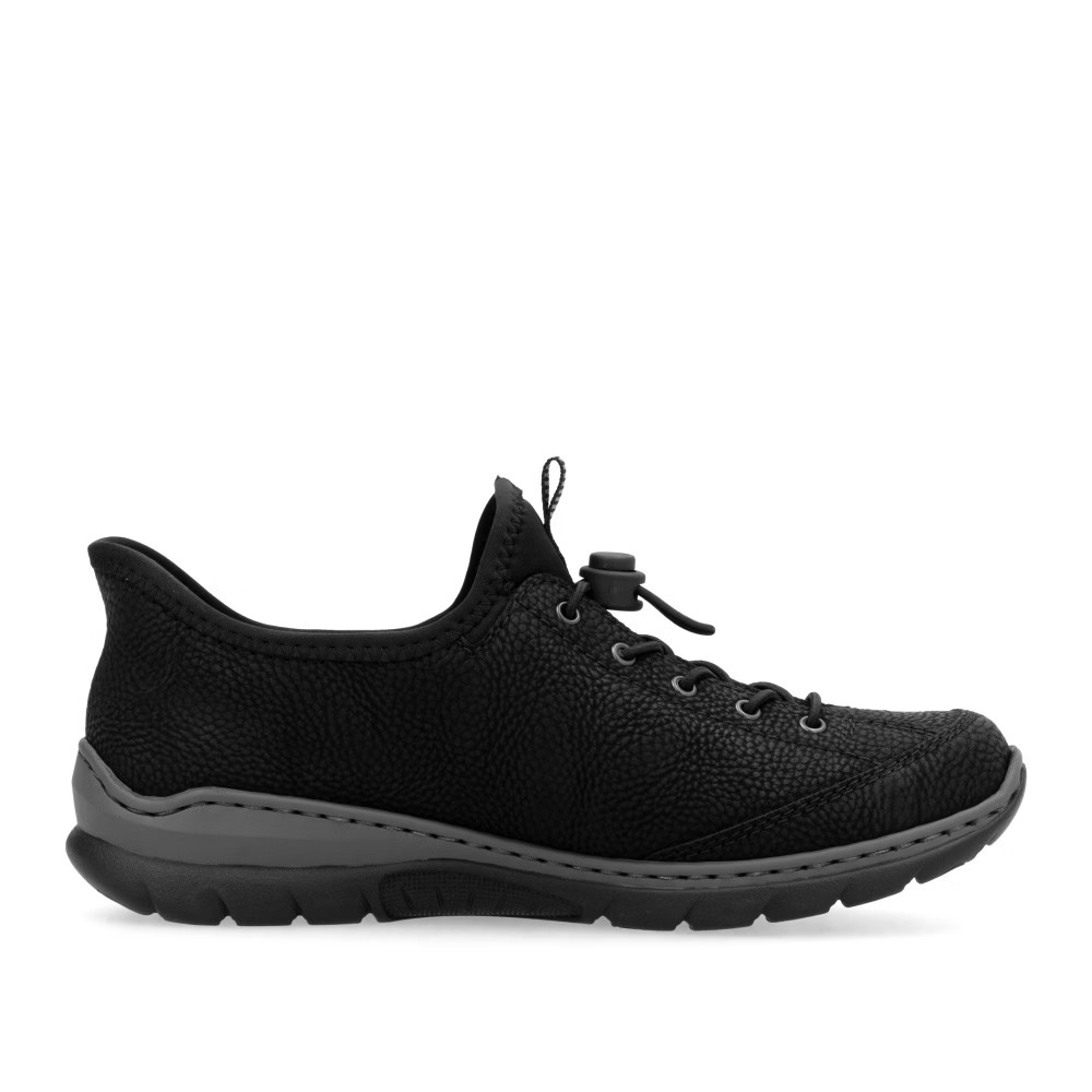 Fedezd fel a kényelmet az időtlen fekete színben – a RIEKER cipők modern dizájnt ötvöznek páratlan komforttal. Kiváló minőségű anyagok és precíz kidolgozás gondoskodnak a mindennapi kényelemről, míg a felső perem rugalmas betétje megkönnyíti a felhúzást. Az esztétikus gumis fűző és a praktikus cipzár elegáns megjelenést biztosítanak, míg a MemoSoft memóriahabos talpbetét tökéletesen alkalmazkodik a láb formájához. Az Antistress technológia könnyedséget, rugalmasságot és kiváló ütéselnyelést nyújt, így minden lépés maximális kényelmet biztosít. Ez a modell ideális választás a mindennapokra, akár munkába, akár szabadidős tevékenységekhez, és a Ready2GO technológiának köszönhetően rendkívül könnyen felvehető.