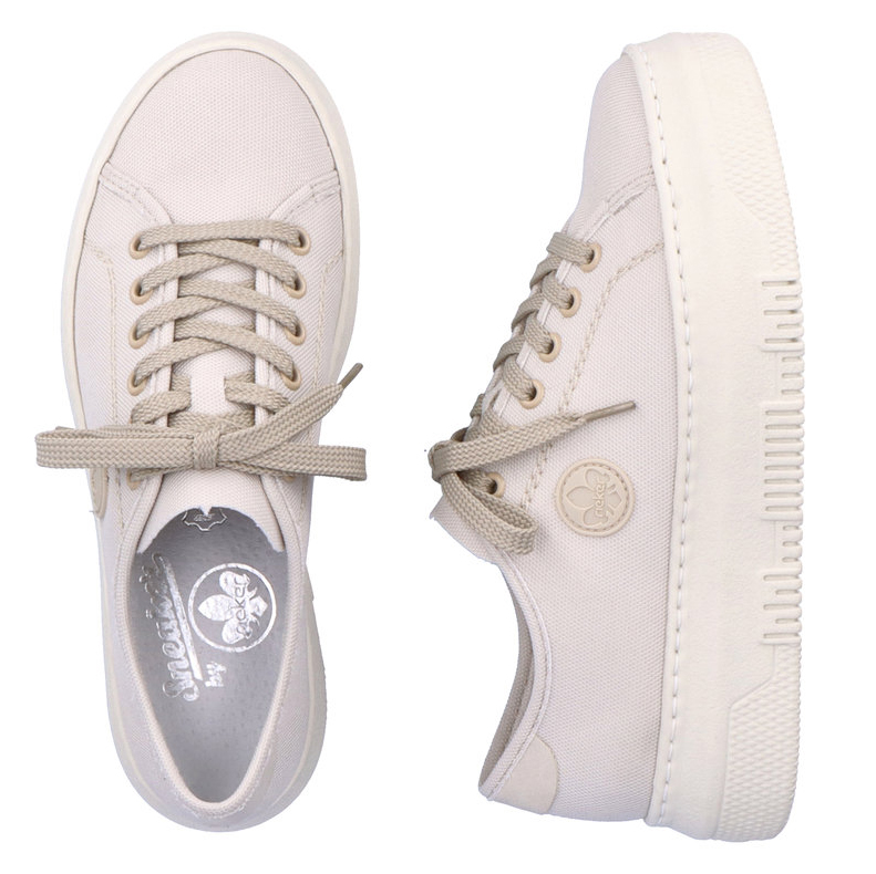 A Rieker márkájú egyszerű és visszafogott textil tornacipők nemcsak kényelmesek, hanem könnyen kombinálhatók bármilyen öltözékkel. A fűzős kialakítás biztos illeszkedést nyújt, így a cipő tökéletesen követi a láb formáját. A puha bőr talpbetét és a könnyű, rugalmas Antistress talp elnyeli a lépések okozta ütéseket, így egész napos viselet során is maximális kényelmet biztosít. Letisztult megjelenésüknek köszönhetően jól mutatnak szoknyával, ruhával vagy nadrággal is. Ez a modell kivehető talpbetéttel rendelkezik, így egyénre szabható kényelmet nyújt.