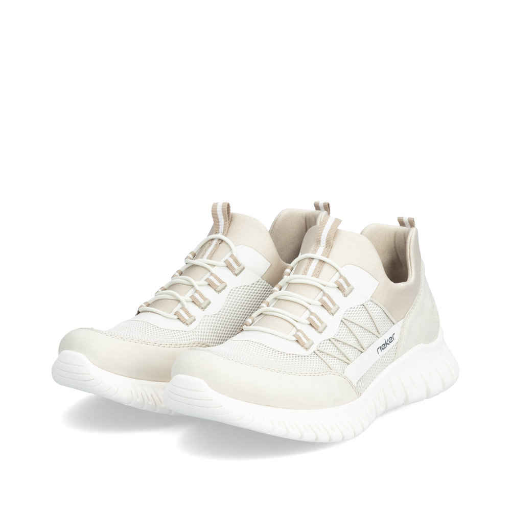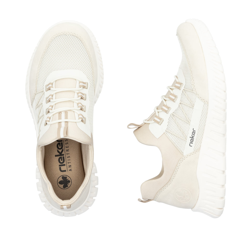 A RIEKER márka ezen tornacipői modern dizájnt ötvöznek friss, pasztell színekben pompázó megjelenéssel és maximális kényelemmel. A különböző anyagok kombinációjából készült felsőrész eredetiséget és stílust kölcsönöz a cipőnek, amely azonnal magára vonja a figyelmet. A praktikus gumis fűzés és a rugalmas felső perem egyszerű felvételt és tökéletes illeszkedést biztosítanak. A MemoSoft memóriahabos, kivehető talpbetét rendkívüli puhaságot és tökéletes alkalmazkodást kínál minden lépésnél. A rugalmas Antistress technológiájú talp könnyedséget, rugalmasságot és kiváló ütéscsillapítást garantál, így egész nap kényelmes viseletet biztosít. Tökéletes választás mindazoknak, akik a modern megjelenést és a maximális kényelmet szeretnék ötvözni.